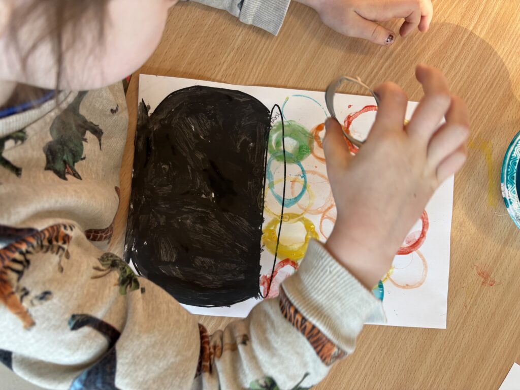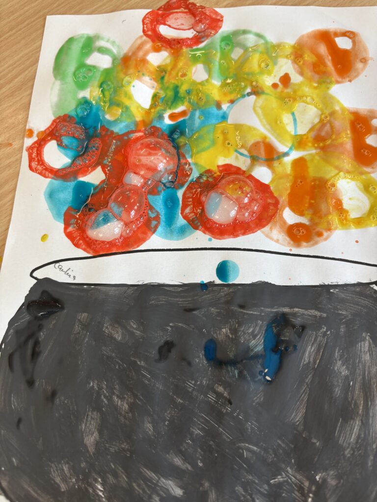 Wednesday used our junk art with paint and washing up liquid to create bubbles for our witches’ cauldrons. Dee