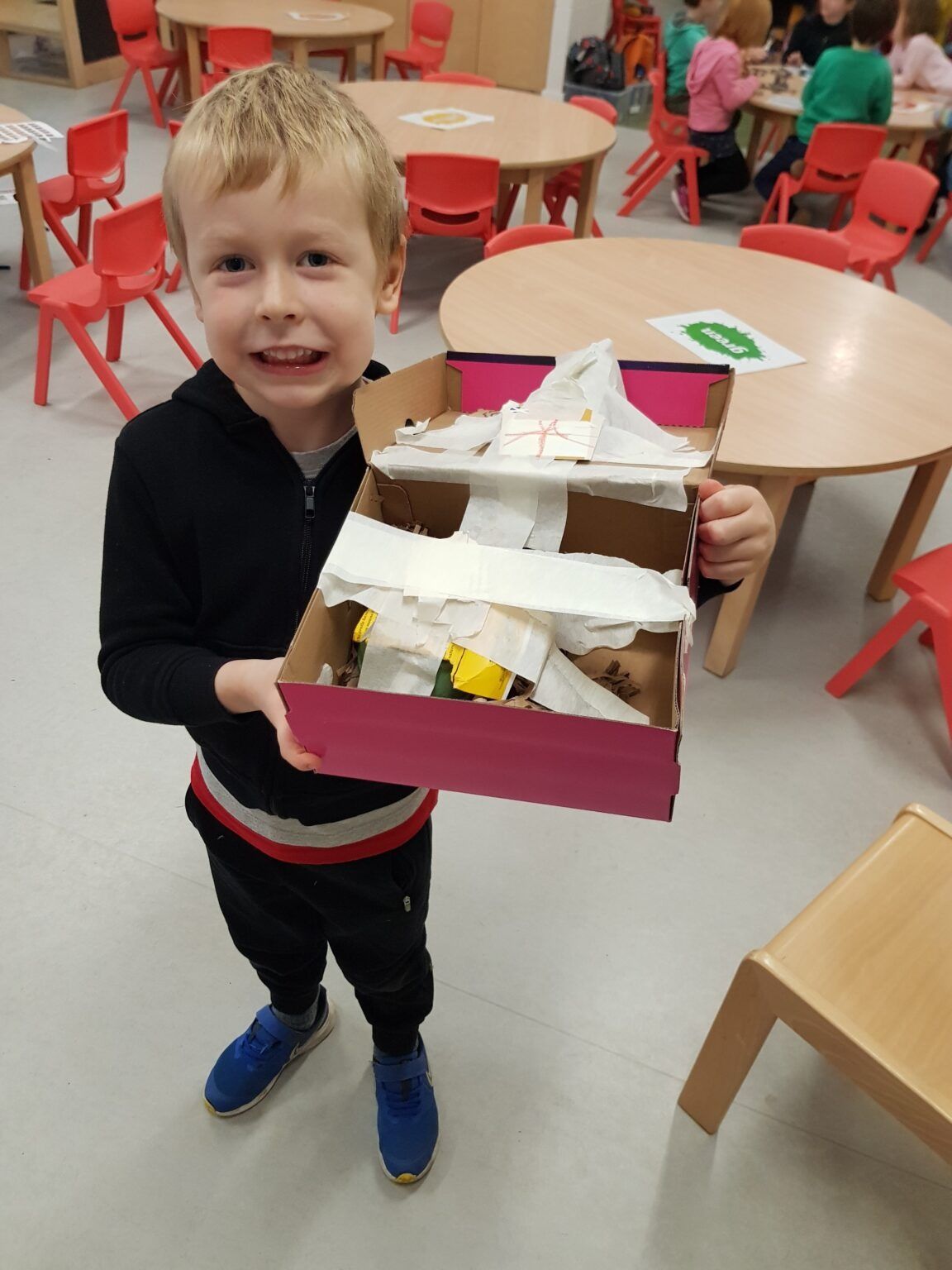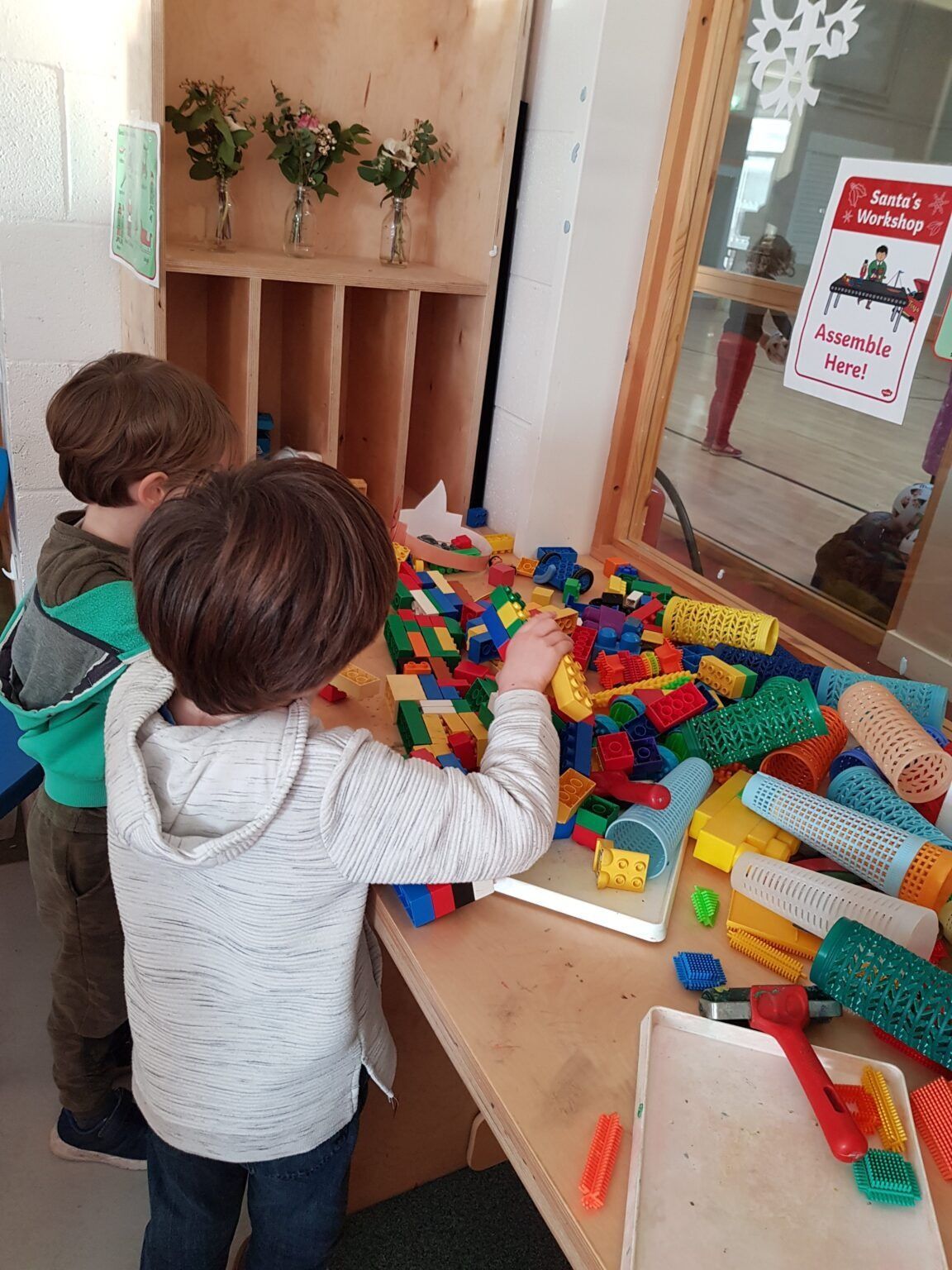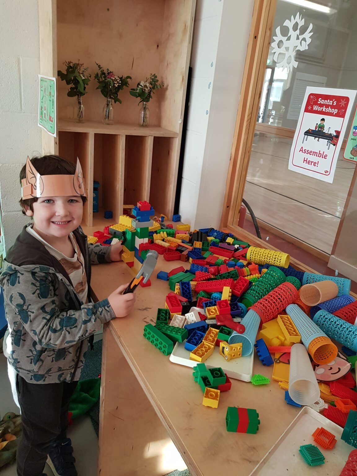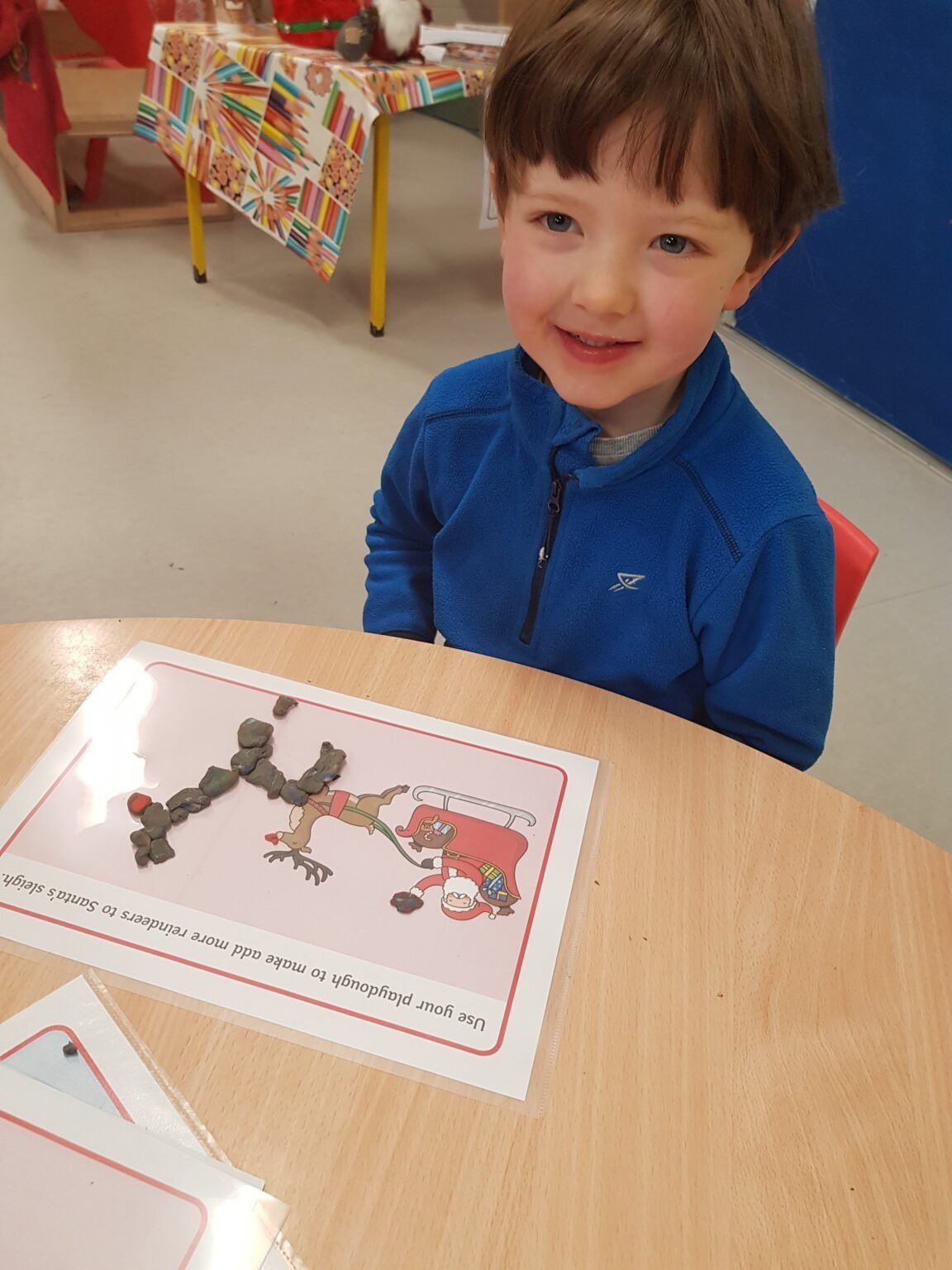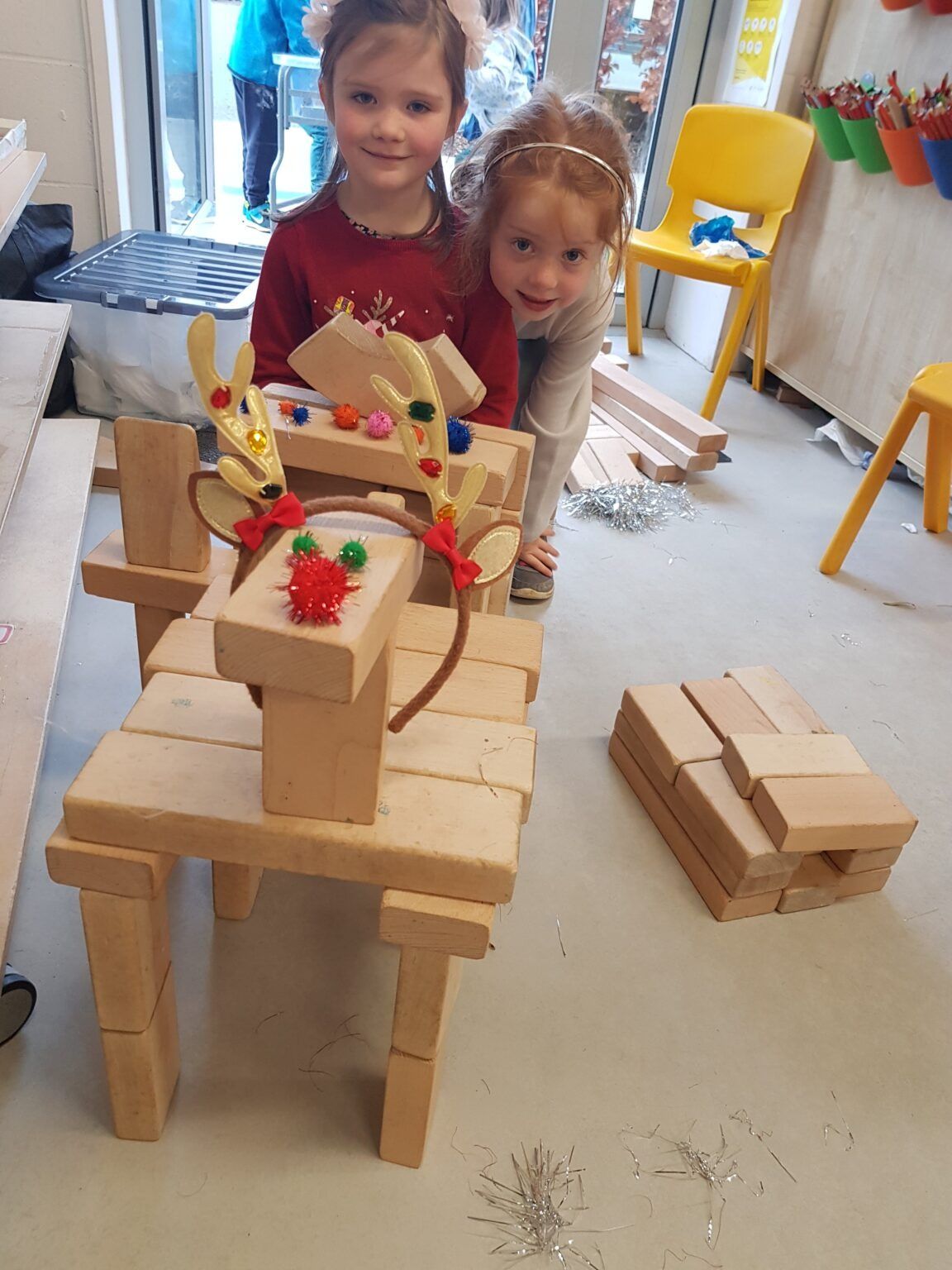 In Santa’s Workshop children planned their play to decide which station they would go to – first we designed our toys using catalogues & pictures as inspiration,. Next we assembled the toys as busy elves in the workshop. Then we had to sort through toys to decide if they were up to scratch by doing doing our quality check! Finally, we wrapped the toys to send out to children all over the world & put them in Santa’s sack ready to go!