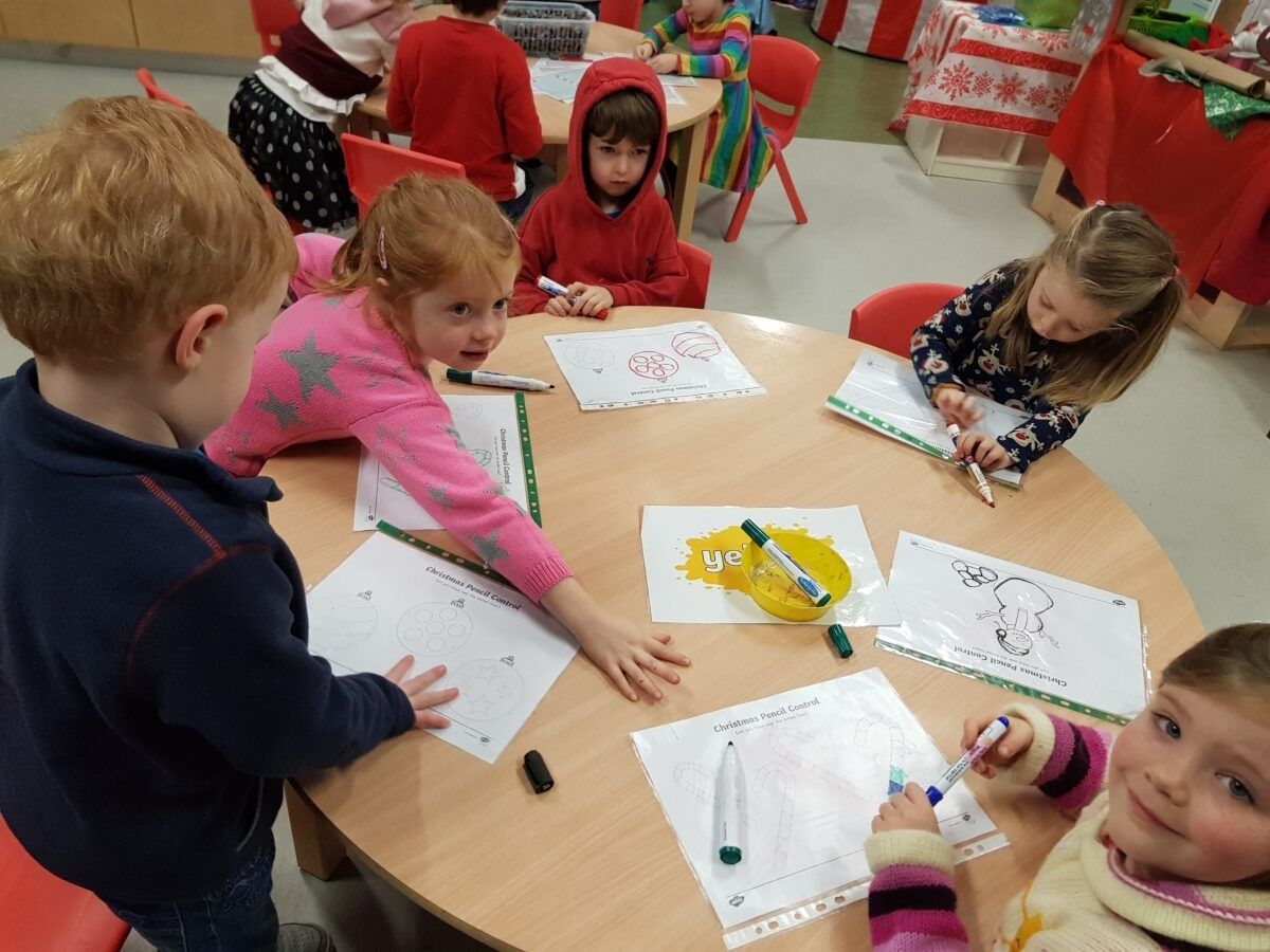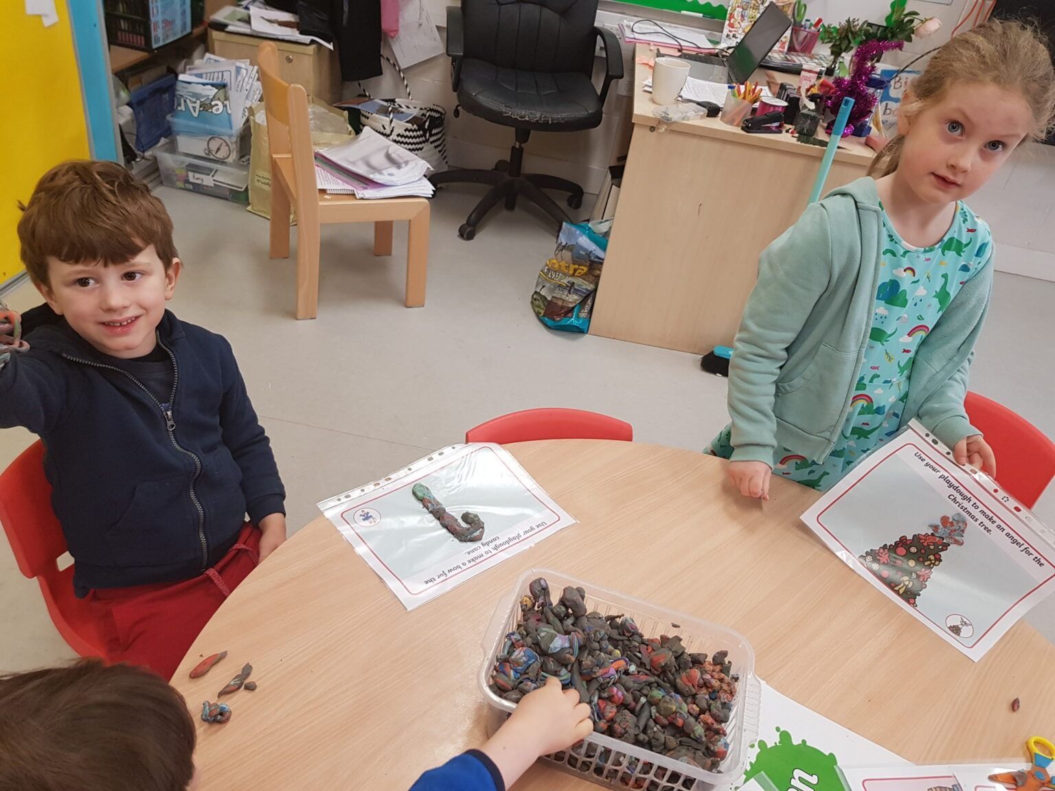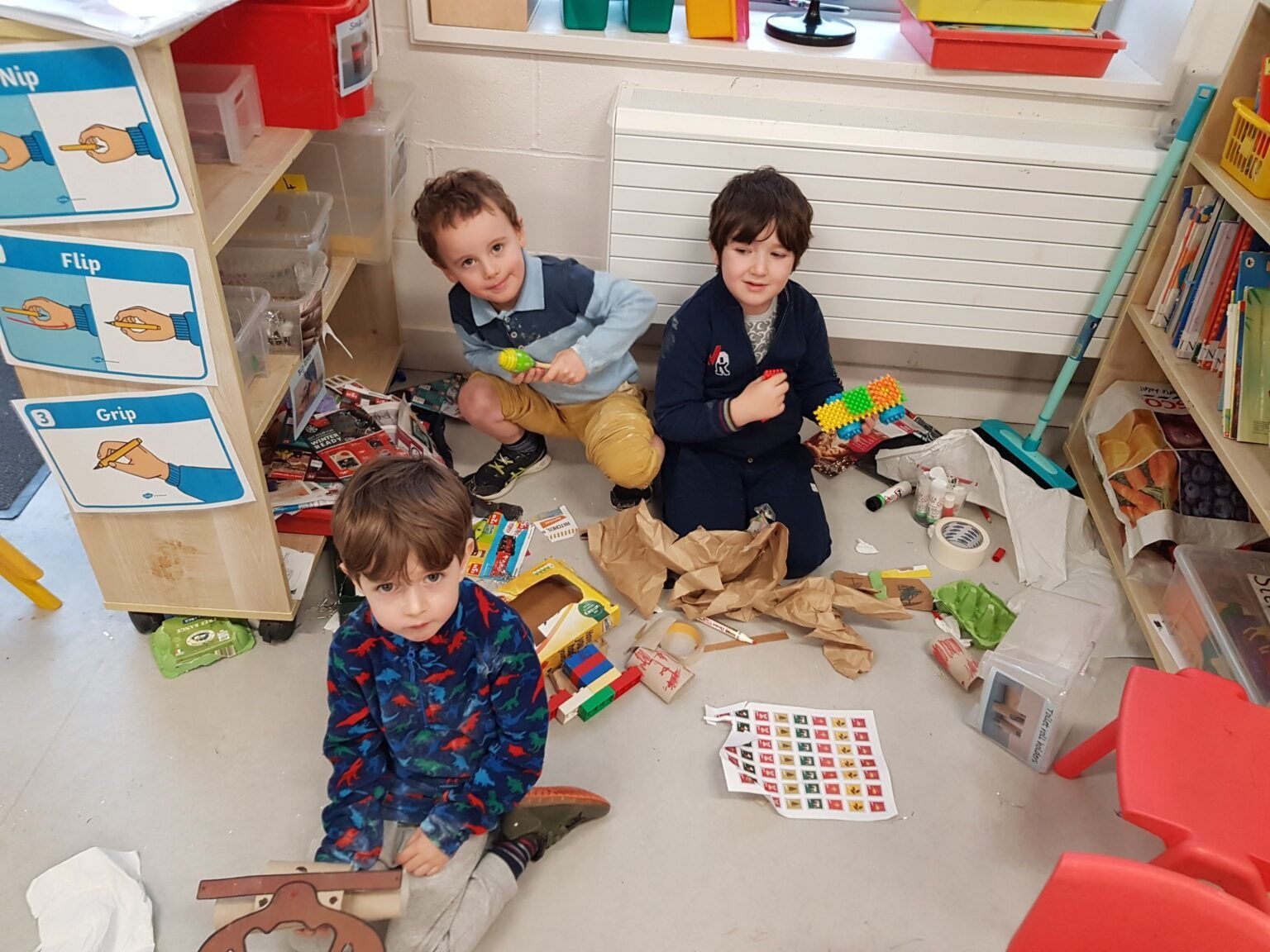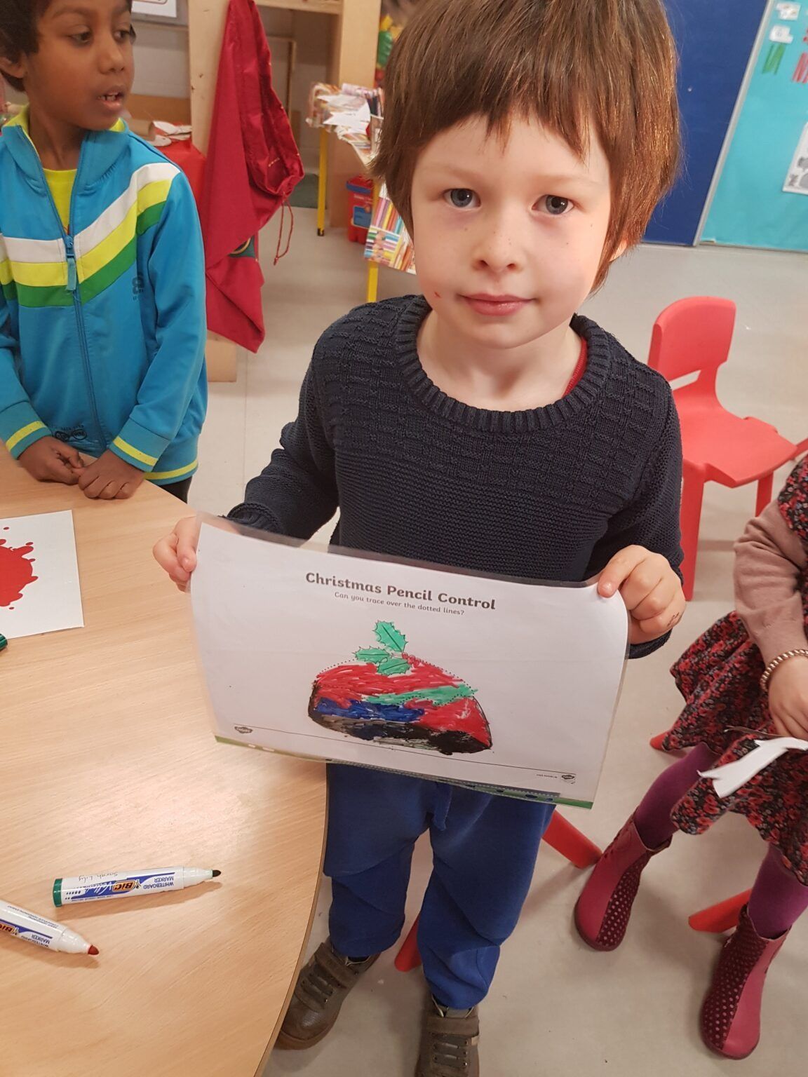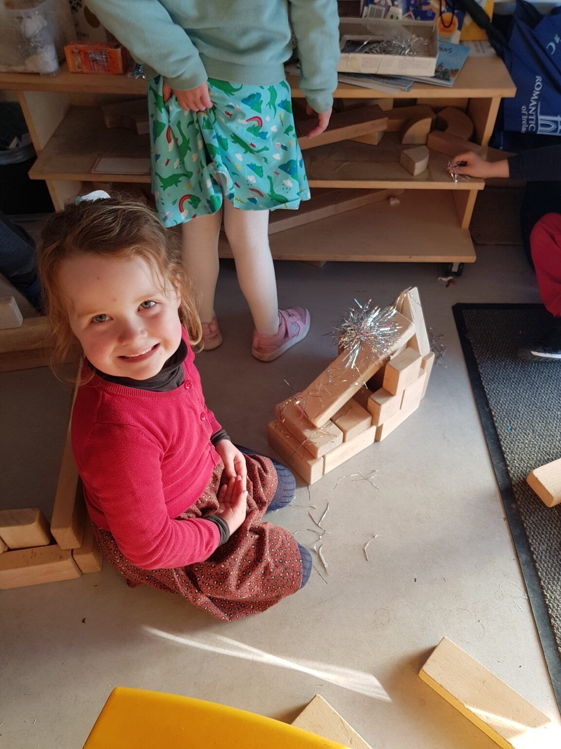 In Santa’s Workshop children planned their play to decide which station they would go to – first we designed our toys using catalogues & pictures as inspiration,. Next we assembled the toys as busy elves in the workshop. Then we had to sort through toys to decide if they were up to scratch by doing doing our quality check! Finally, we wrapped the toys to send out to children all over the world & put them in Santa’s sack ready to go!