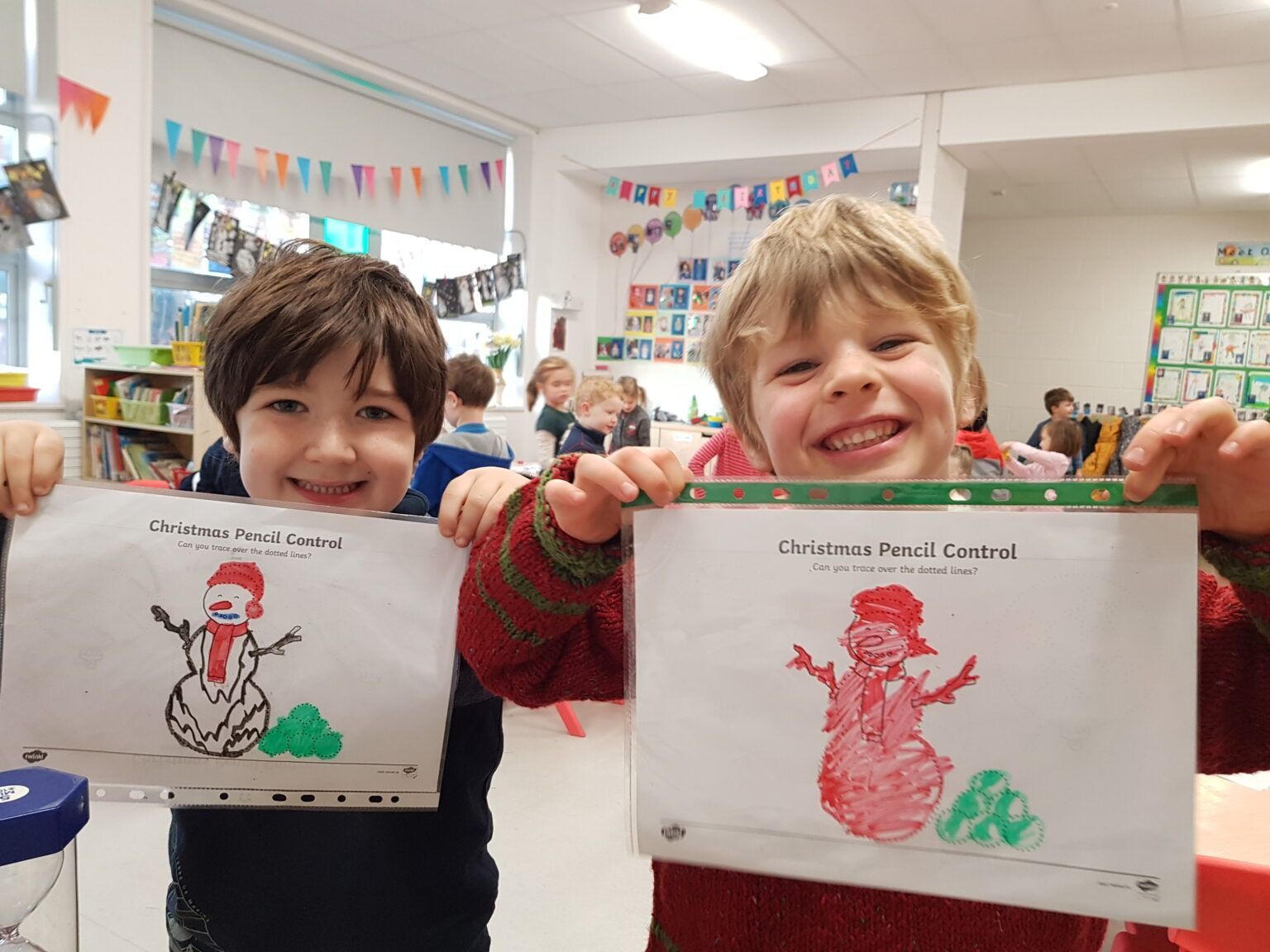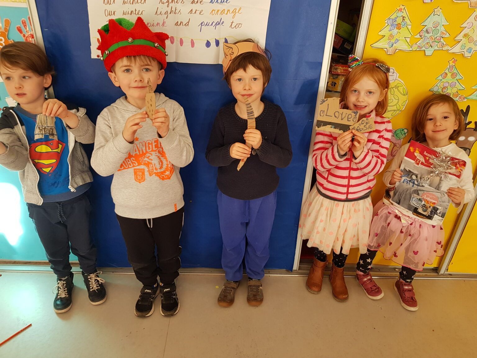 We also played lots of fun maths & phonics games; we continued to work on our gymnastic skills in PE; we had fun with active breaks in our classroom & we had lots of discussions about what peace means to us, our value of the month for December. We love learning new Gaeilge words & phrases & we are getting more confident using our new Gaeilge vocabulary. We were very proud of our song singing & we loved sharing it with our parents on Seesaw!