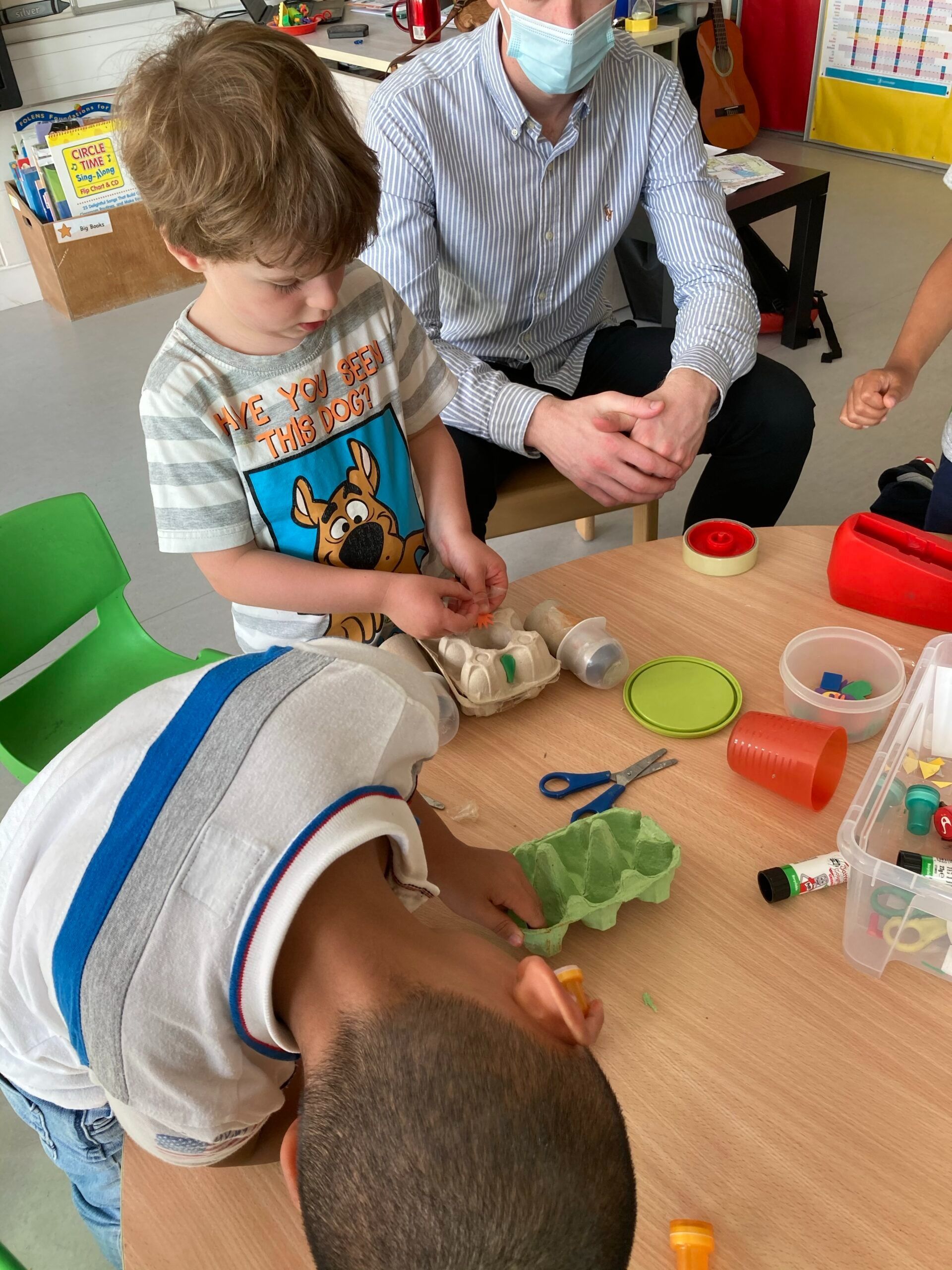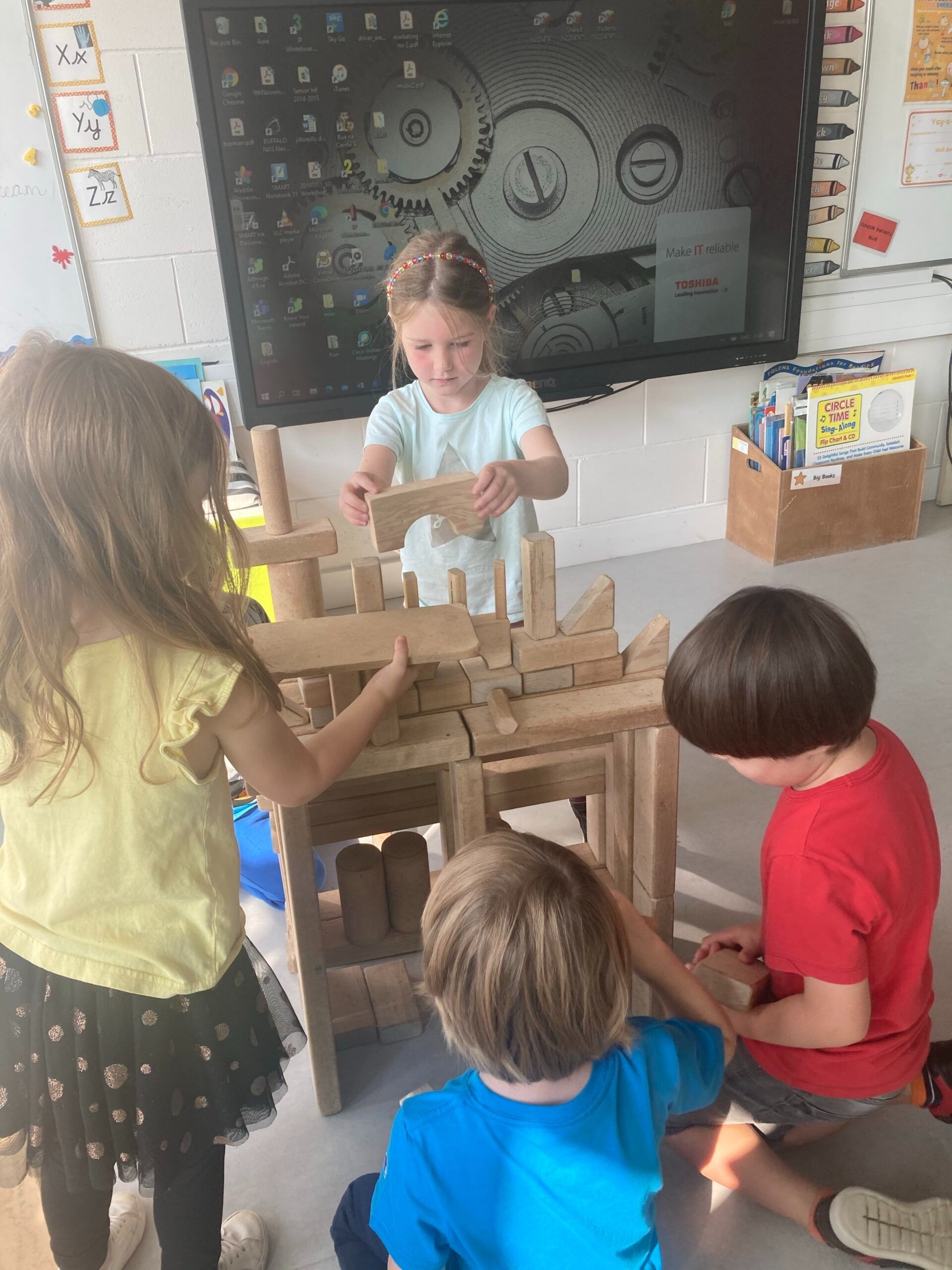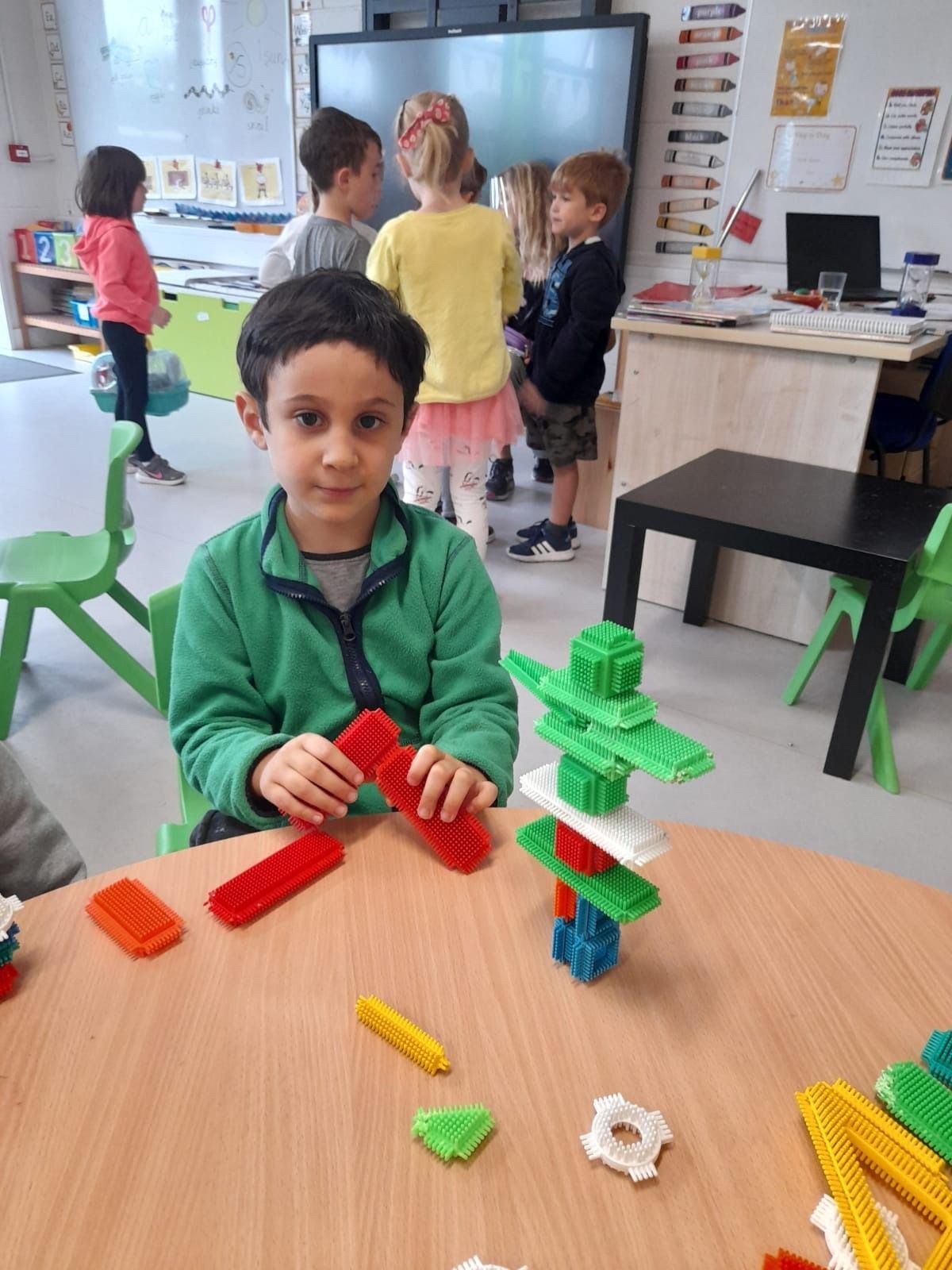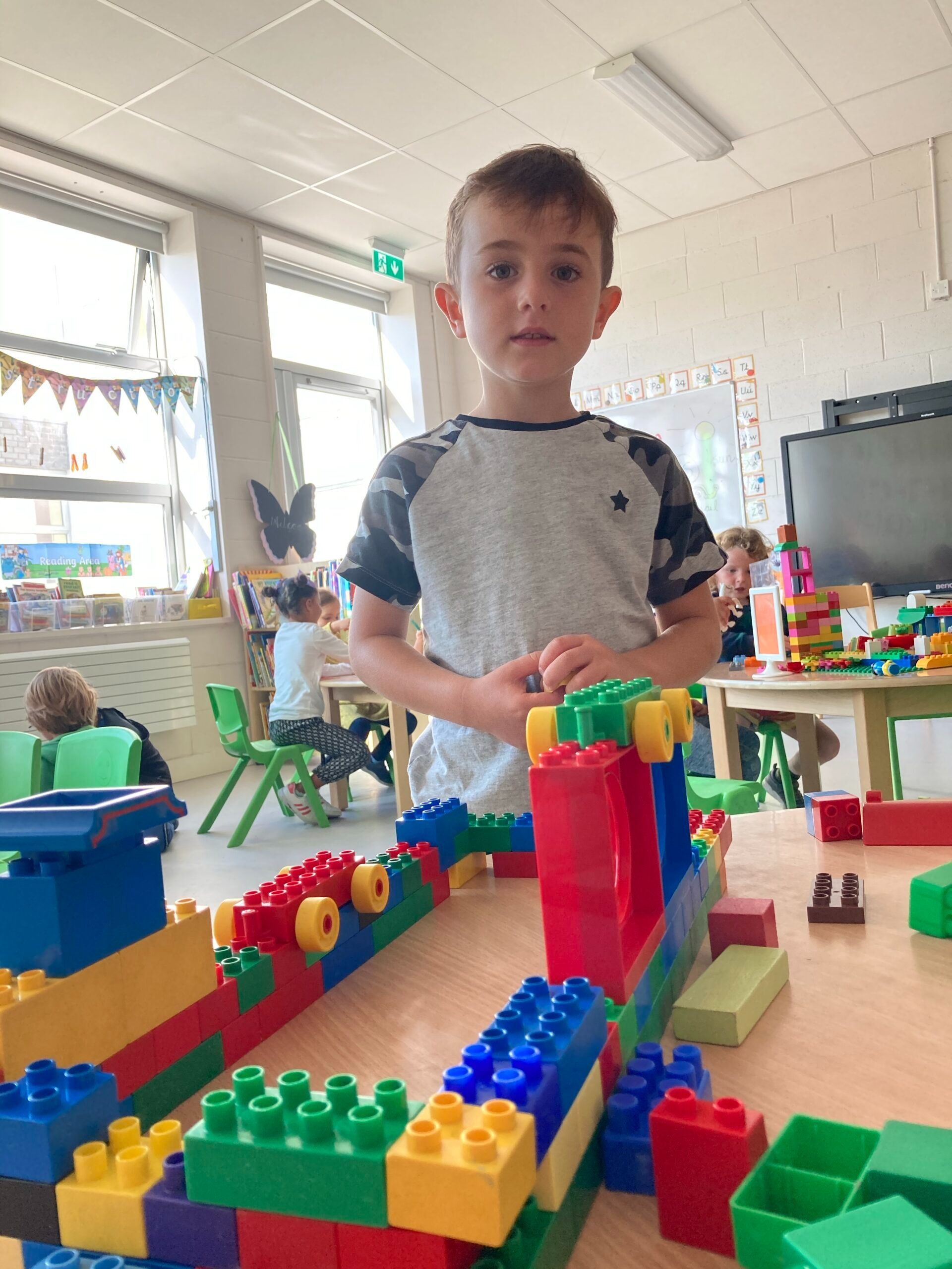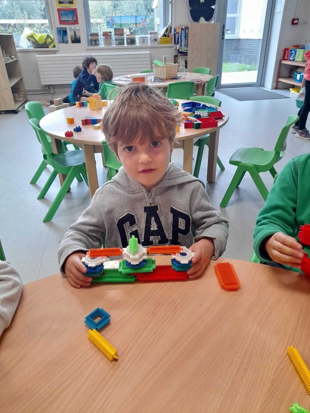 We’re into our second week of long days and the Junior Infants have settled in so well and know all of the classroom routines already. We have been busy in our play areas making junk art, making sand castles and finding dinosaur bones in the sand, fitting out the house and castle, playing in the home corner and making amazing constructions with Lego and with the blocks. We are learning to play together and tell each other when something upsets us. We are sorting out in maths, exploring mixing colours in art and keeping active doing yoga. Life in Junior Infants is busy!