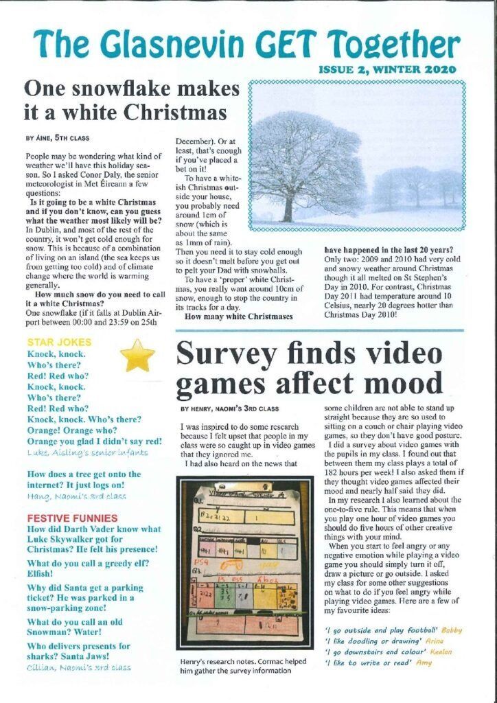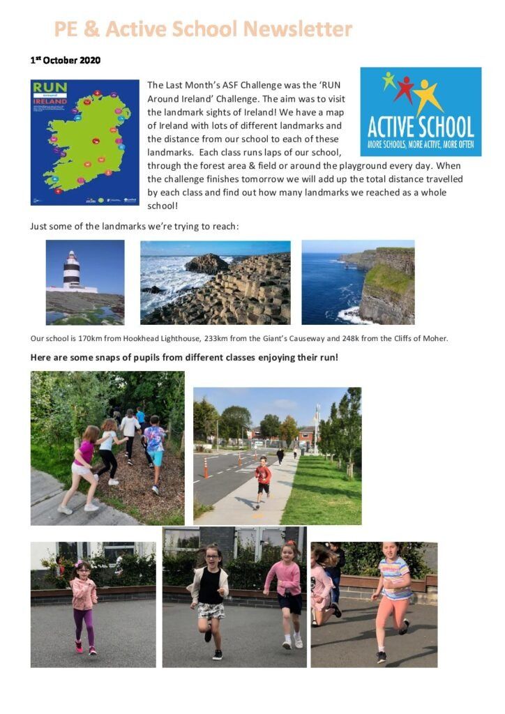 Dear Parents and Guardians/A Thuismitheoirí agus a Chaomhnóirí, We have come to near the end of a year we will never forget where we all worked from home for 3.5 months. We appreciate the great efforts made by all parents during this period; your children and their resilience is a credit to you. I am very grateful to all the staff, Mick, Nicky, all the teachers, SNAs and Cleaners for their hard work and commitment to keeping us all safe, happy and learning this term. Even with this exceptional year we are very proud of our achievements: All of the children are very good at being nice to each other and inclusive; and at dealing honestly with conflicts as they arise. Our school has been showcased for our work on Wellbeing over the last year and a half. The Active School Team have kept us active and understanding the benefits of this. We have the Creative School’s Award to look forward to in 2021. I feel we are coming out of an exceptional year all the stronger and with new skills.