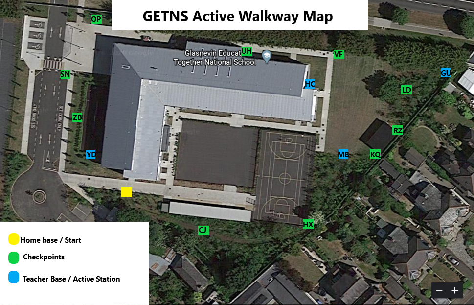 We made a folder of resources to support the teaching of this strand, including PSSI plan, scavenger hunts, adventure trails, cooperative games & activities, orienteering ideas & a range of other outdoor & adventure activities. We set up our Active Walkway at the beginning of this school year and created our Active Walkway Map for the school grounds.