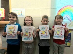 Teachers agreed to prioritise one PE strand for further development each year. After collaborating with everyone at a staff meeting, this year we choose to focus on Dance. We had several meetings to discuss how we could enhance the dance strand for all classes. The Teachers leading the Active School Initiative photocopied and collated & hard copies of the PSSI lesson plans for Folk Dance & Creative Dance to assist teachers with their planning for dance. Each teacher spent time teaching their students creative dance & folk dance, working primarily from the PSSI lesson plans but also using suggestions from the PDST websites as well as lesson plans from the Move Well Move Often workshops. Each class particularly enjoyed learning the ‘Compass Dance’. Teachers shared resources, music and lesson plans during the six week period in which each class worked on the dance strand. This worked out really well & teachers are now confident in the teaching of this strand. Each class also learnt a Ceili Irish Dance as part of our celebration of Seachtain na Gaeilge.