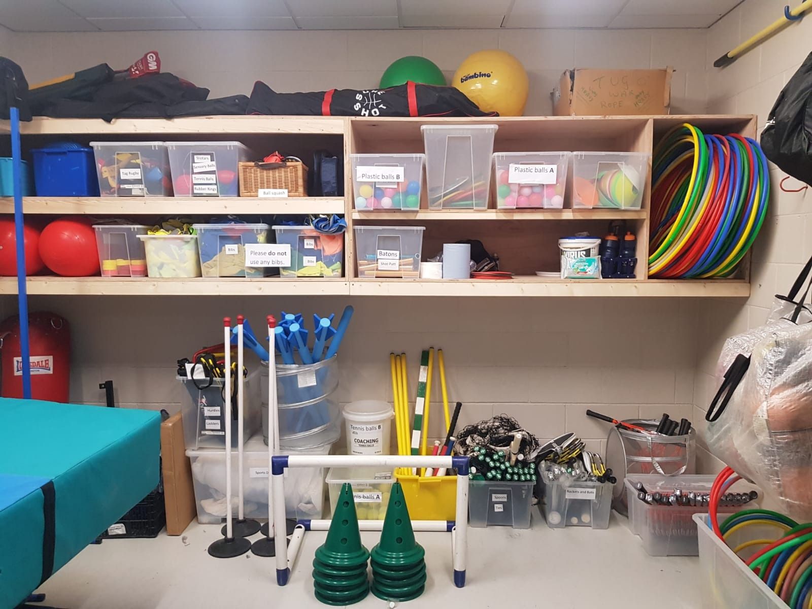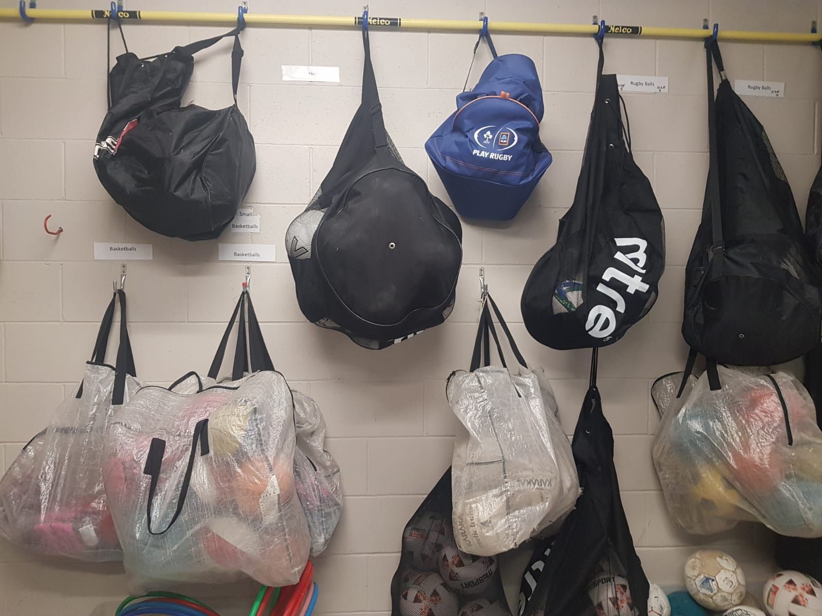 Our PE store room has been revamped this year; we added additional shelving and hooks on the walls and we know have a room full of labelled equipment, where every item has a designated space! We did an inventory of resources at the beginning of the year and we purchased new equipment & resources accordingly.