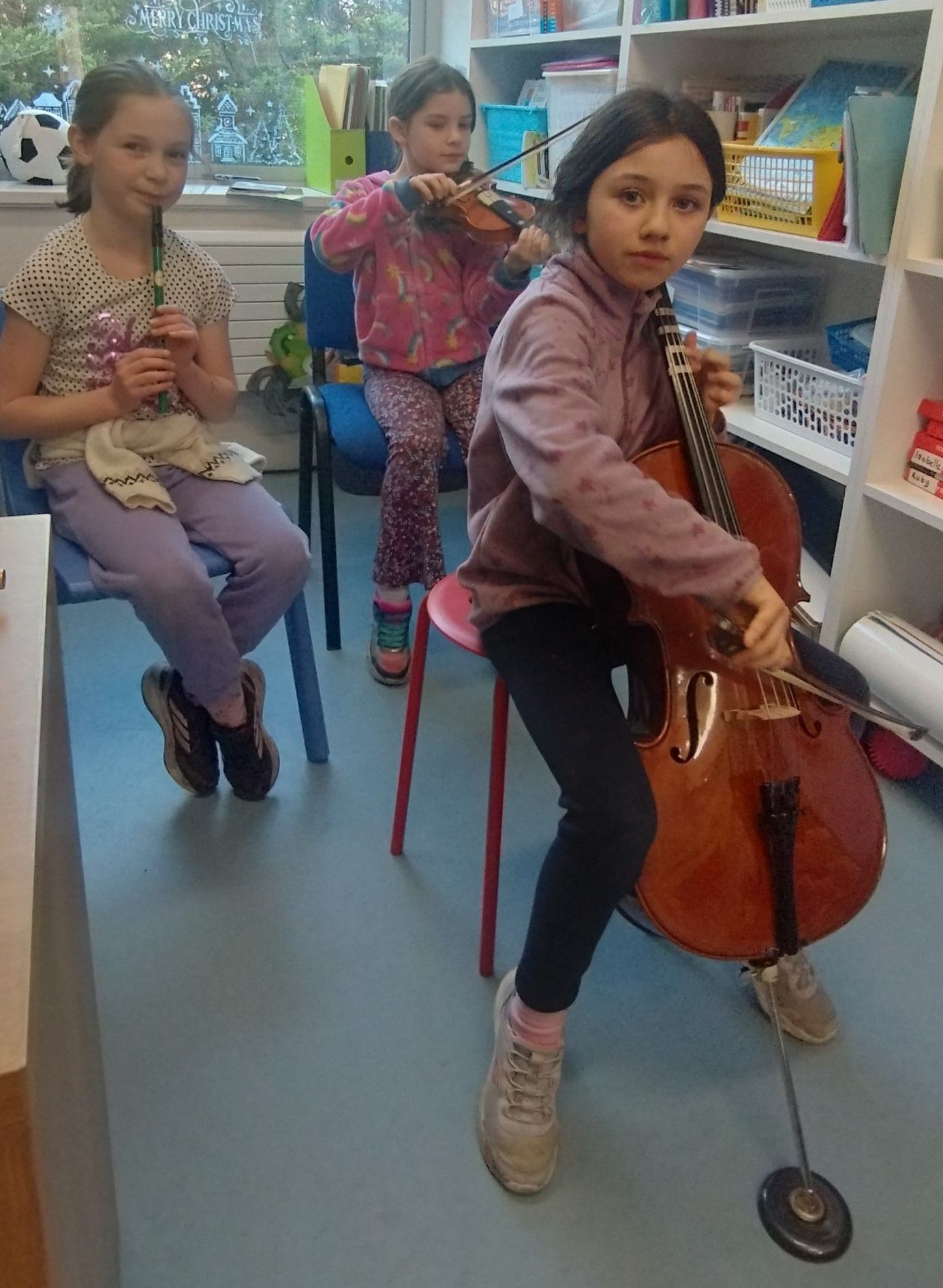 New ParagrapSadie, Eira and Juno from Lisa's 2nd class practising their piece for Grandparent's Day. Grandparents will be in for a treat.