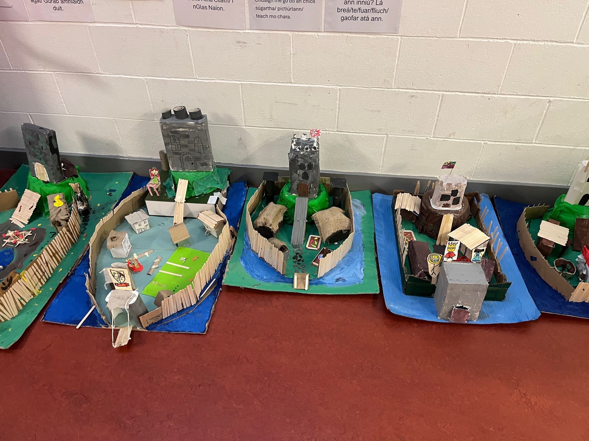 4th class have been learning about The Norman’s in history this month. They had great fun and learned so much about teamwork and problem solving making these motte and Bailey castles. Feel free to take a look at them displayed outside Róisín’s office.