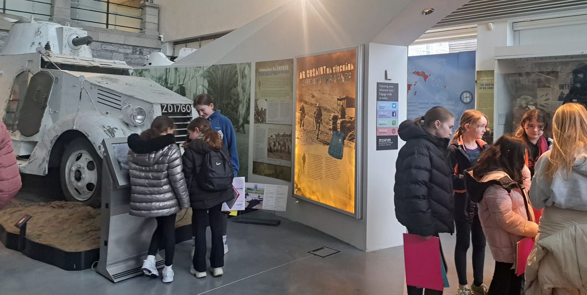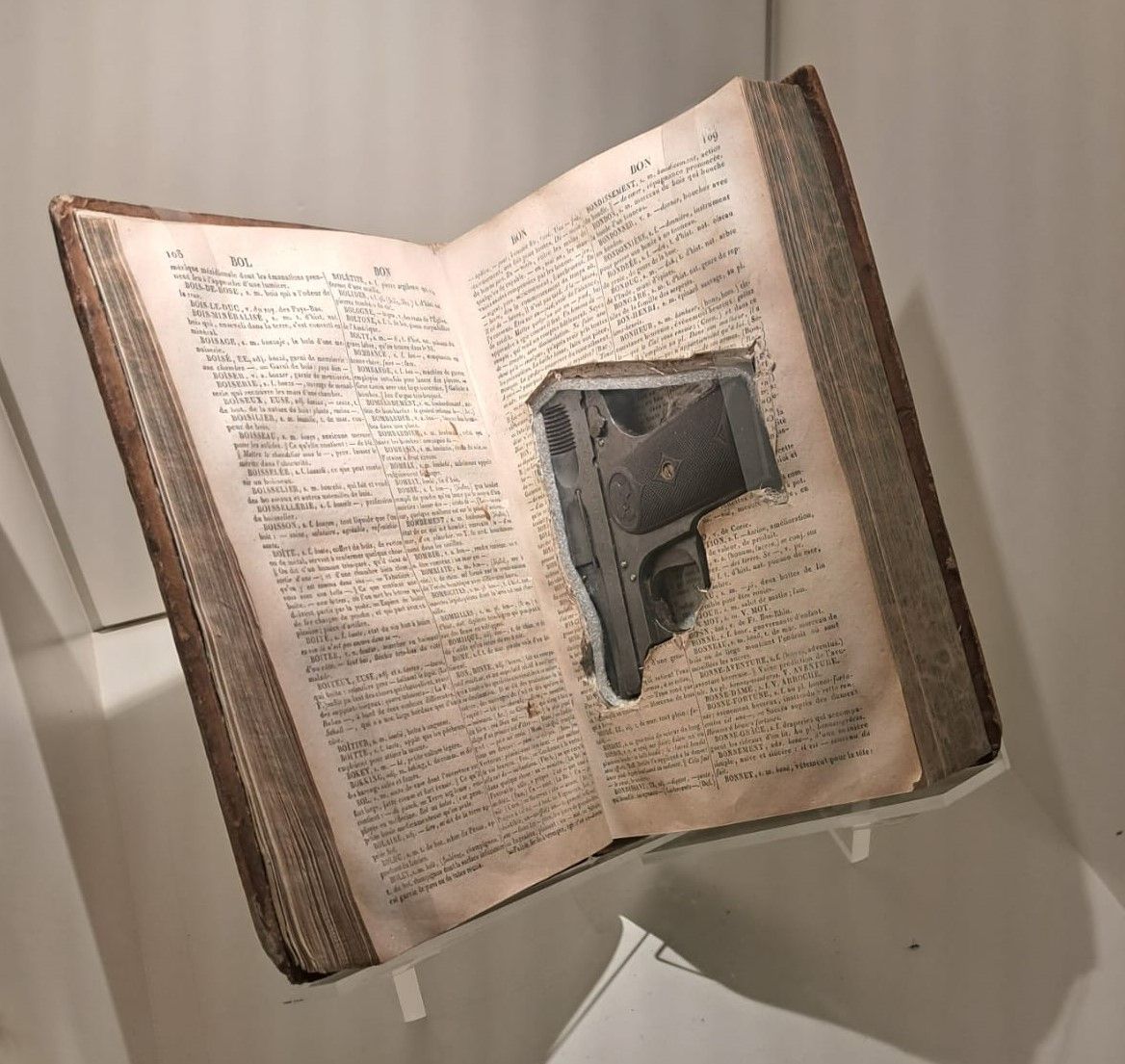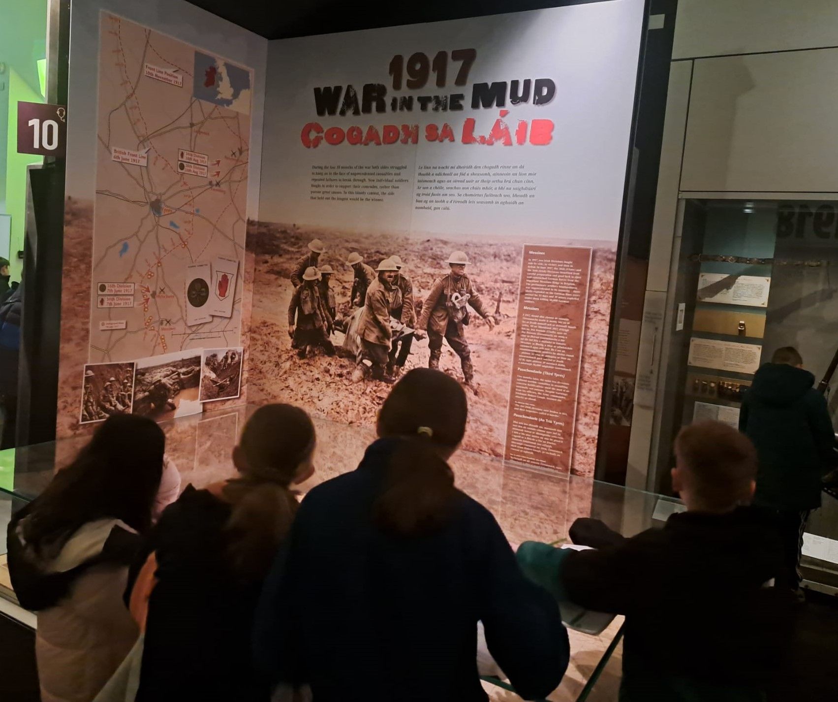 In the next room there were paintings and hats. There was a video that showed different guns. When we got to the 1916 and the world war I part. We saw different ways people smuggled guns around the city. For example in a book, under your hat or in your coat. There was also some