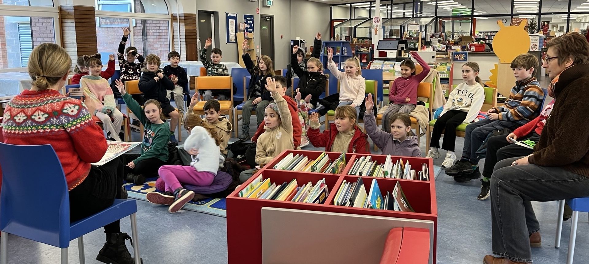 2nd class visited Ballymun library and enjoyed learning about the library in particular how books are organised. We also had a fun storytime, and took park in a scavenger hunt, colouring competition and singalong. Realtín