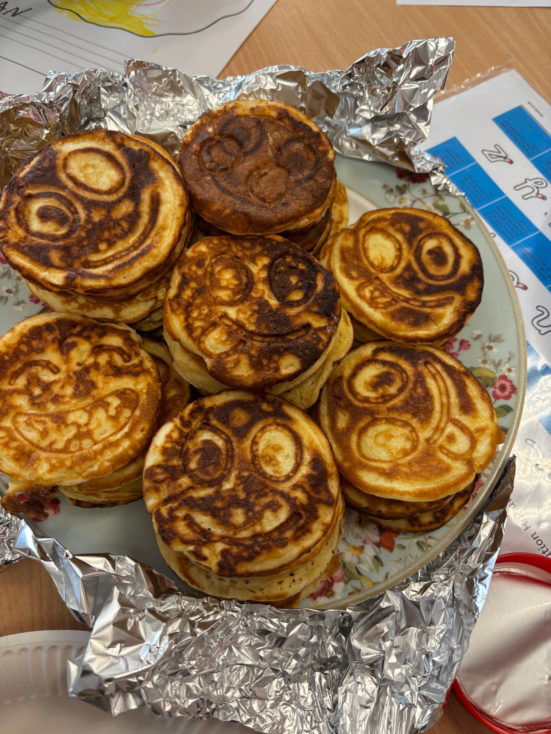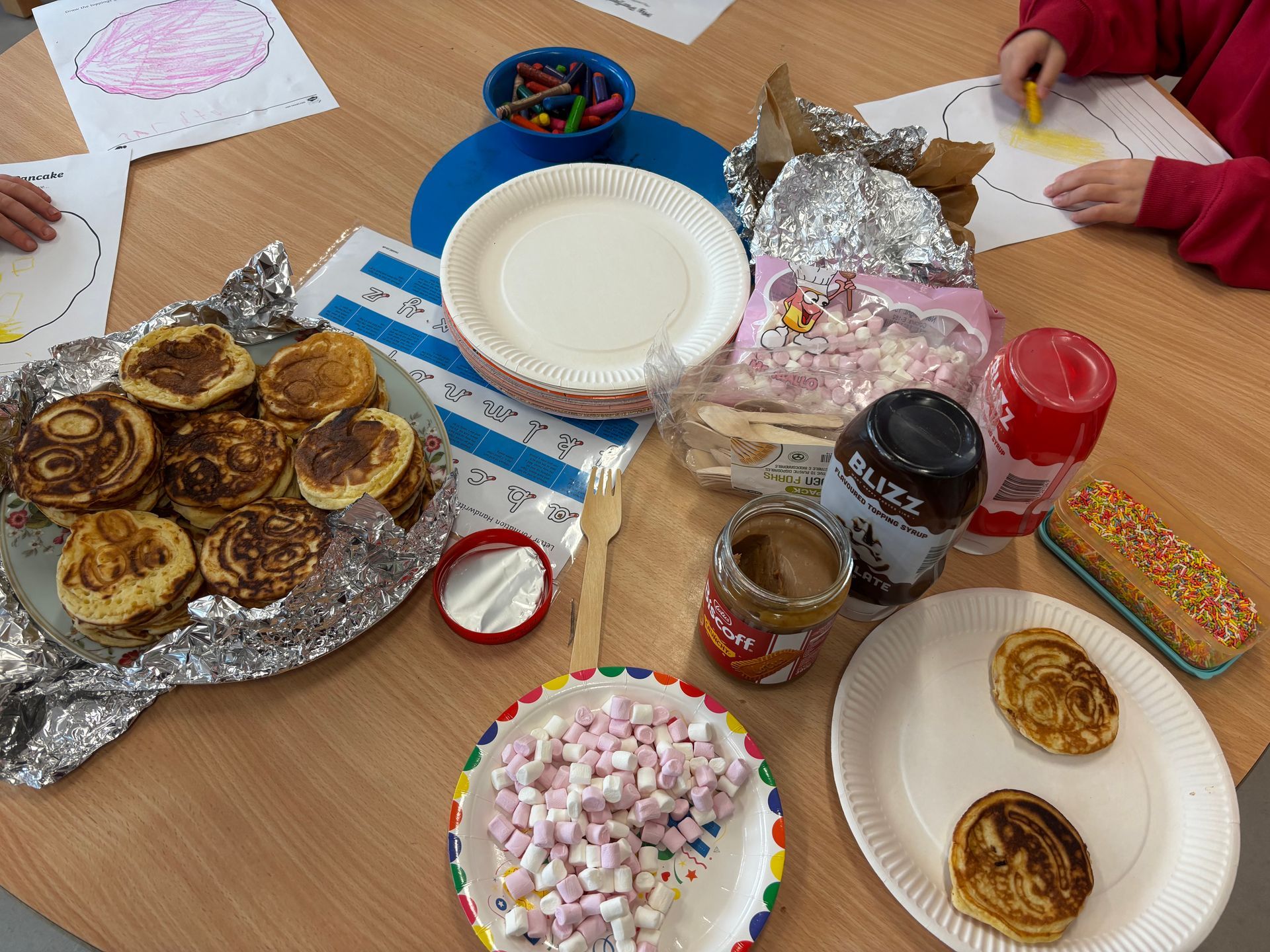Sophie and her mam were busy cooking some smiley face pancakes for the whole class, along with yummy toppings.