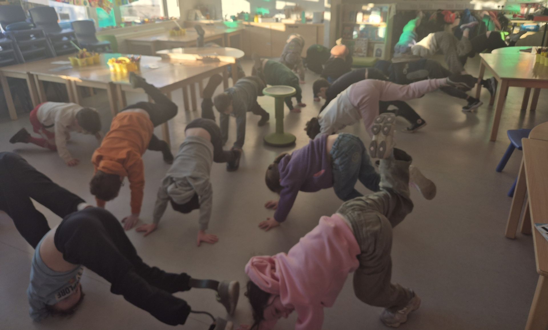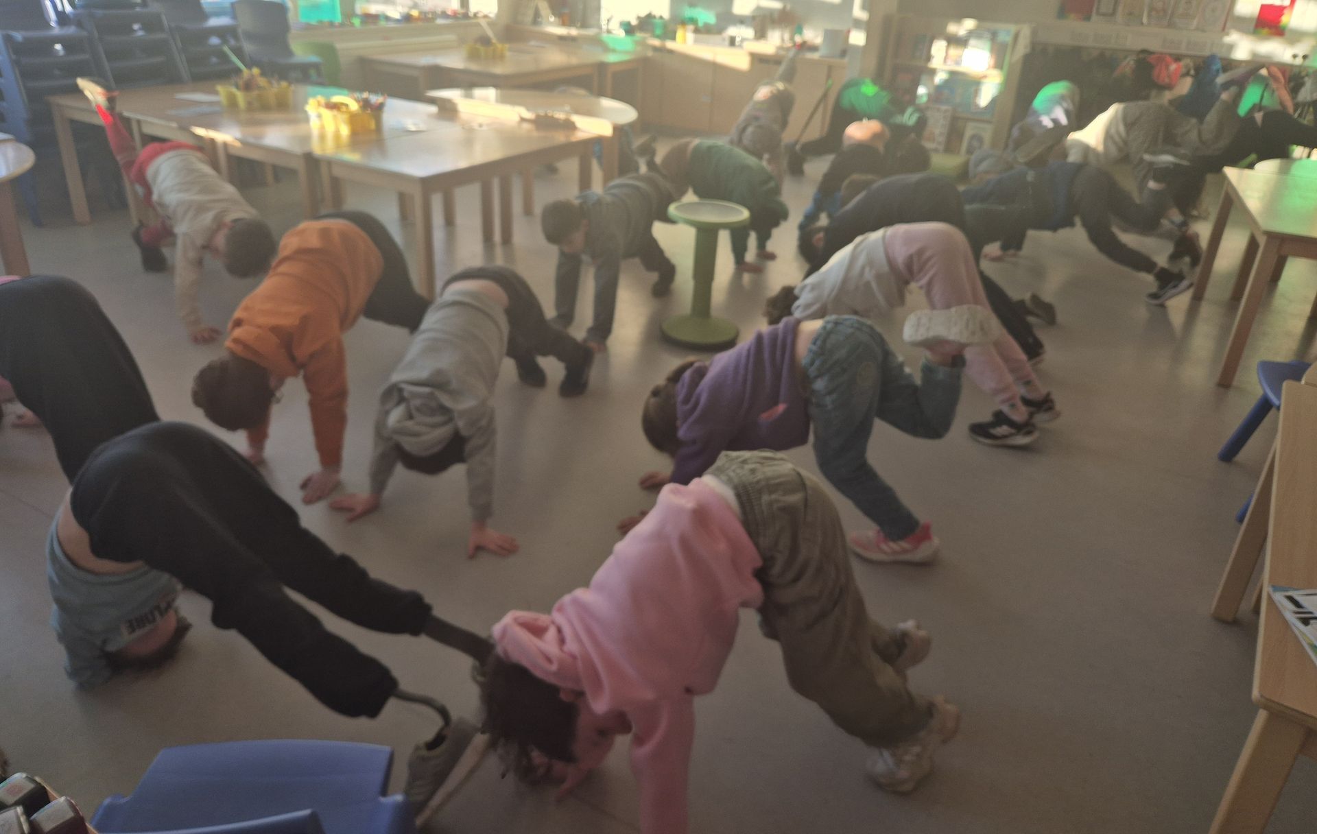 Activities are kept short, fun, and non-competitive, and are often used before or after yard time or during transitions to help children feel settled and ready to learn.