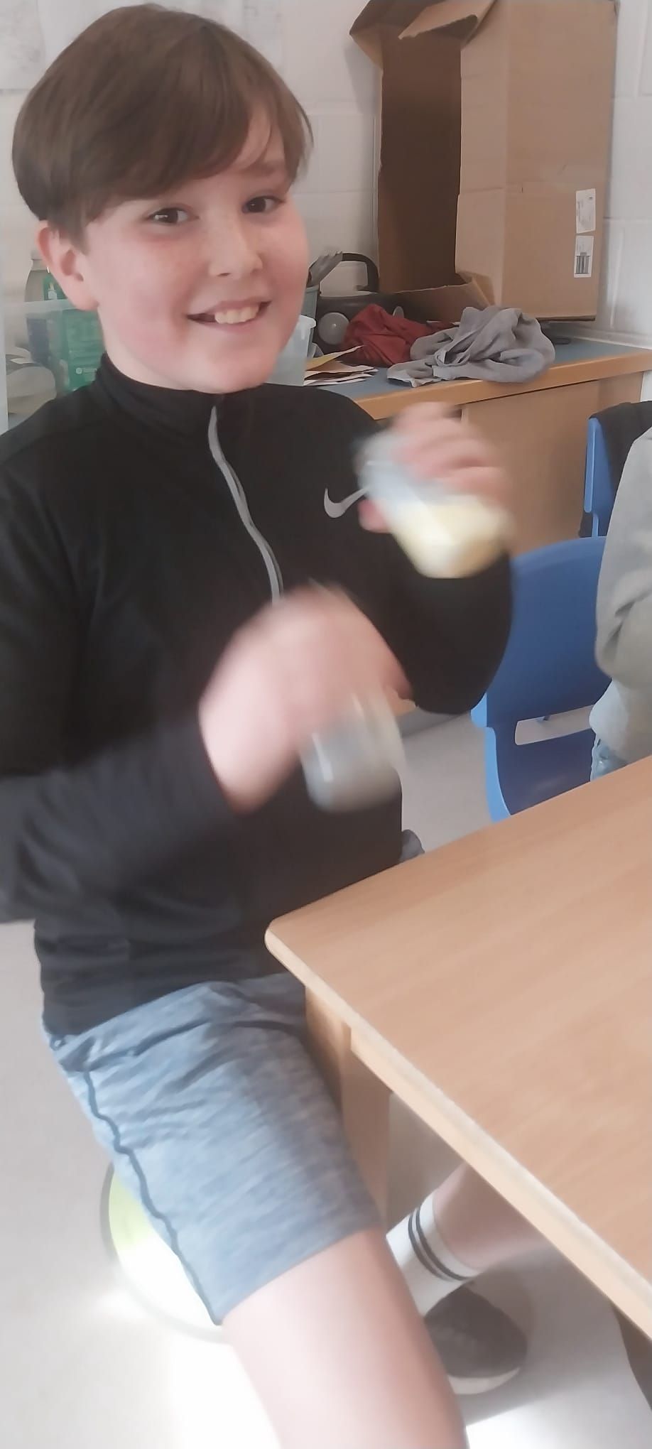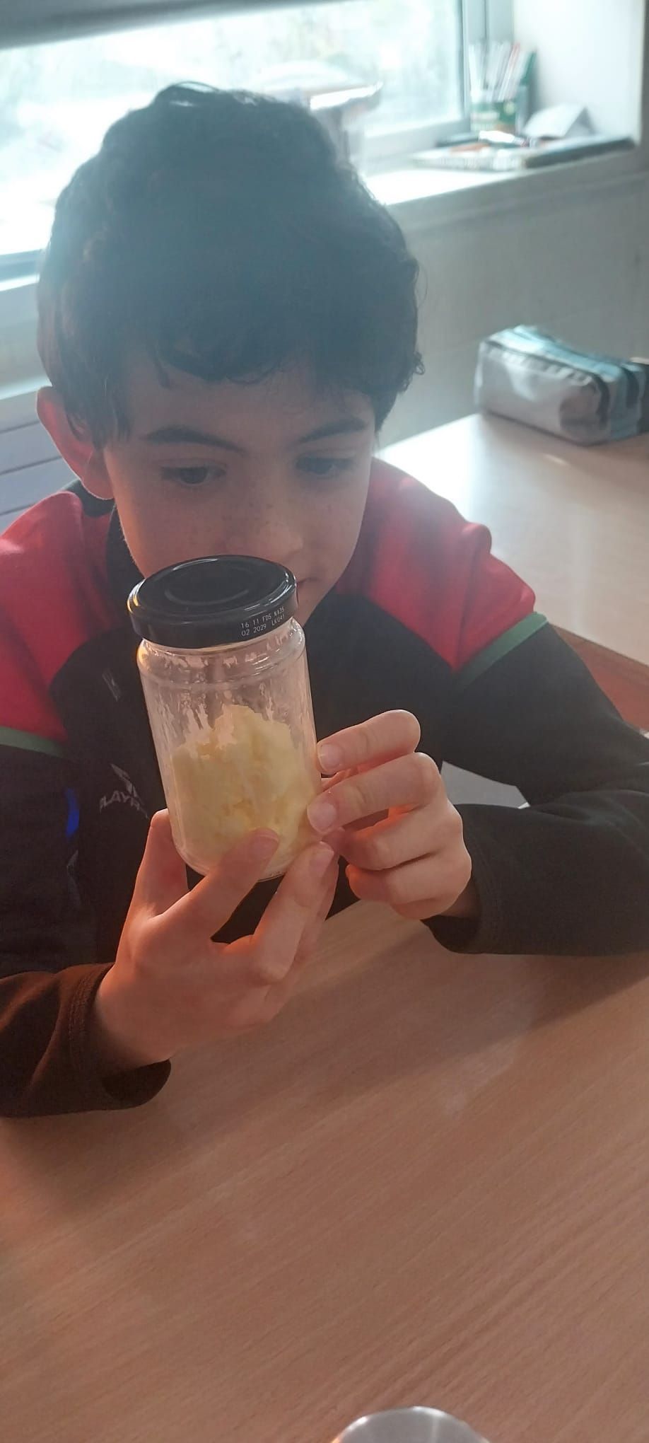 Rinne rang a trí ím. Chritheamar crúsca le bainne instigh ann. Ansin bhí ím agus bláthach (buttermilk) againn.