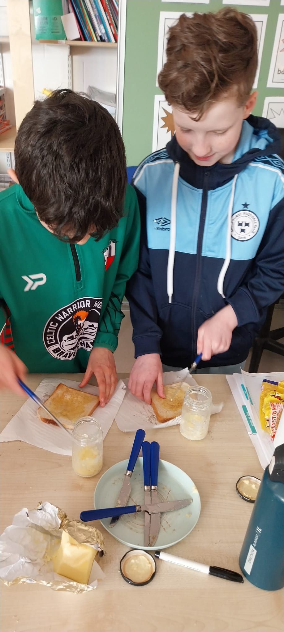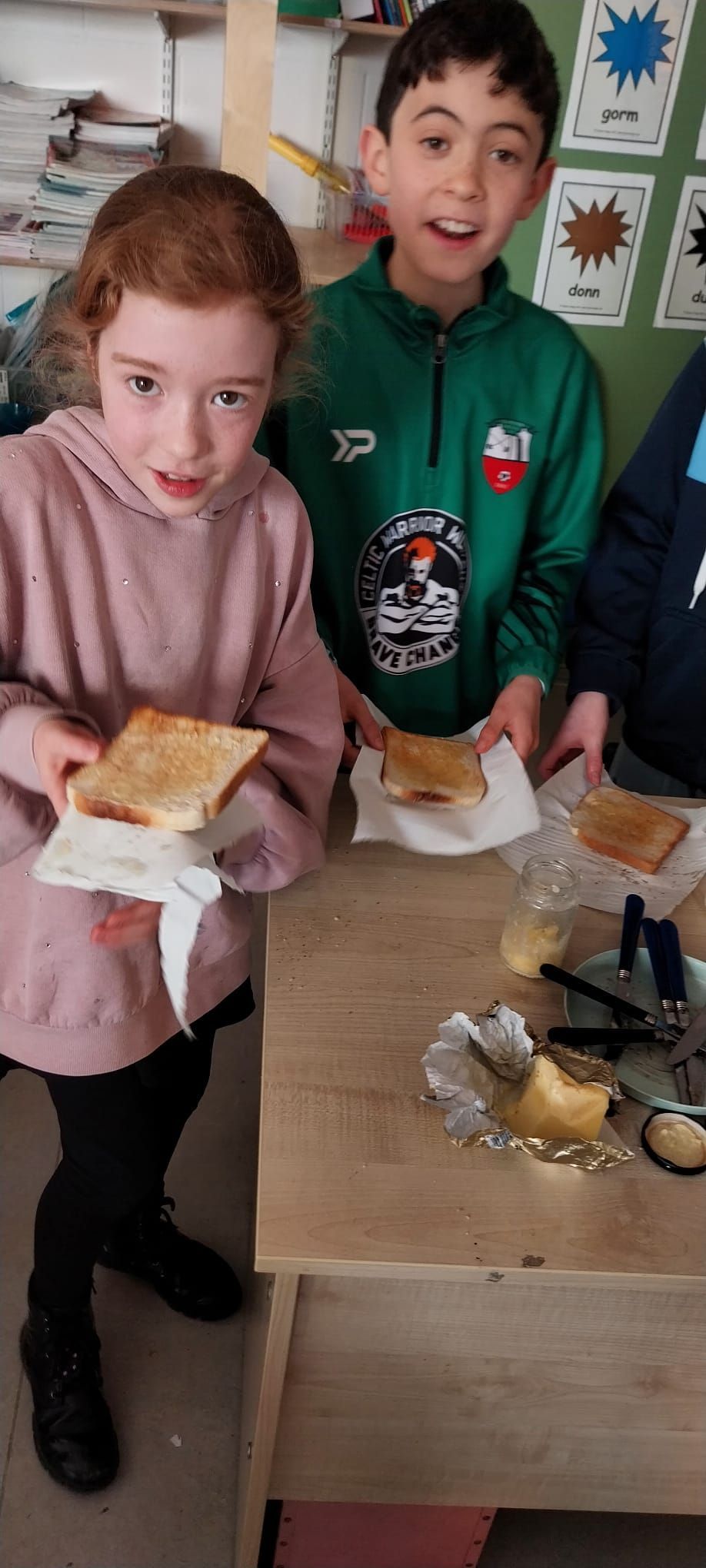 Ansin rinnemar tósta. Chuireamar an ím ar an tósta. Bhí sé ana blásta