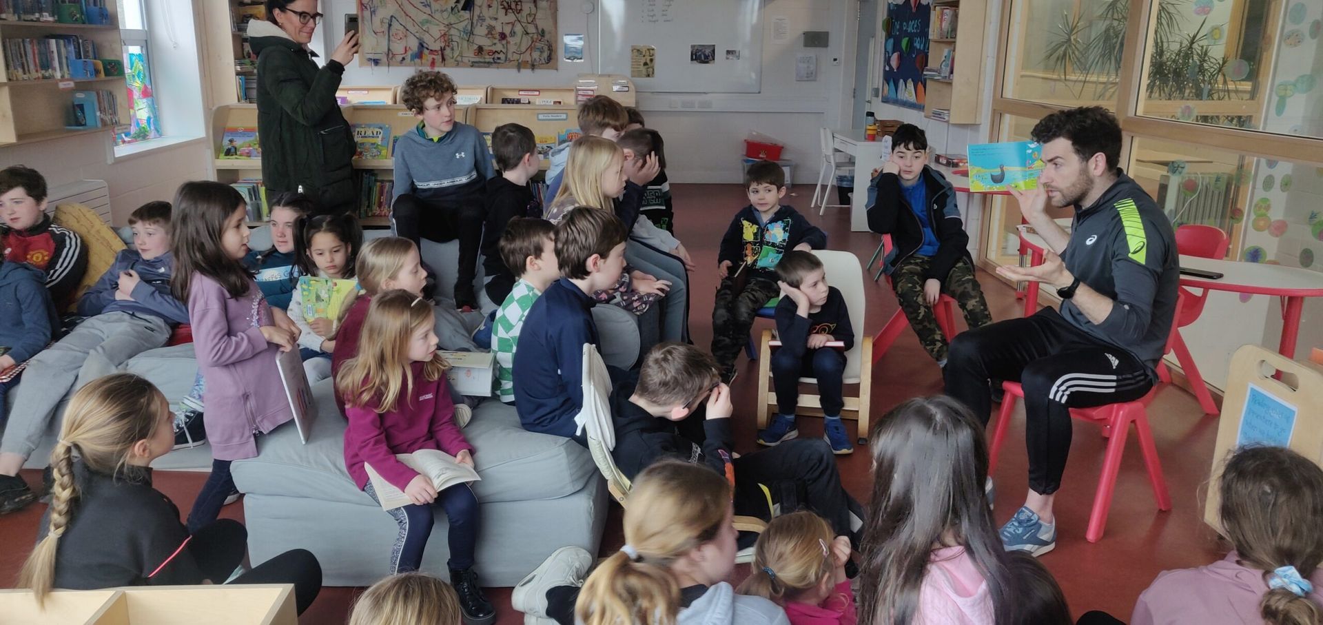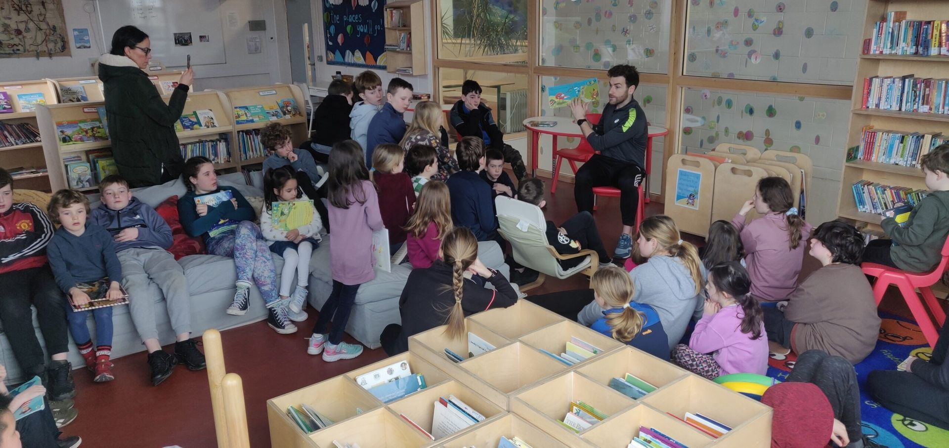 Colm ag léamh as Gaeilge sa leabharlann & World Book Day ln Lisa’s Senior Infants (see pictures below).