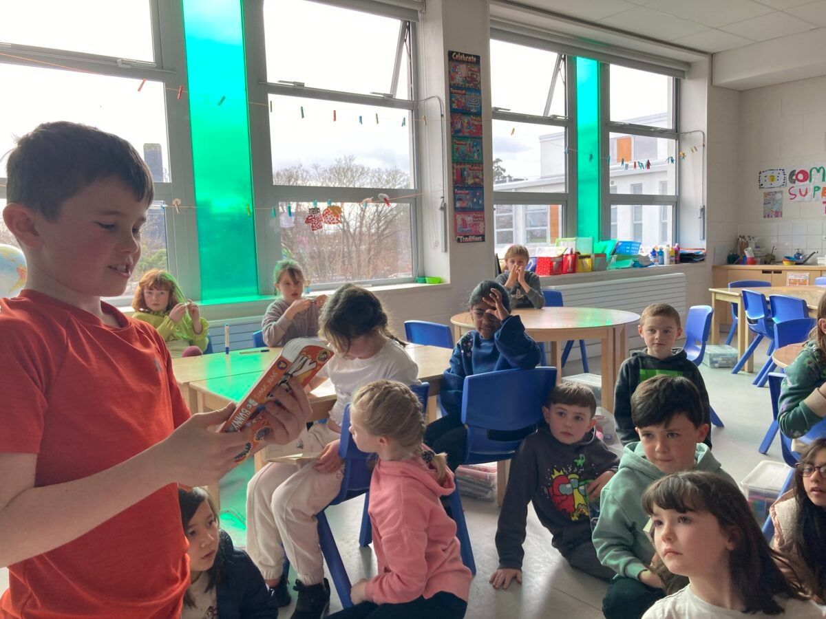 Busy week in Dee’s class, from competitive PE Games that tested our speed, to maths stations, and SnaG Sean Nos dancer Tura, to our very own Caroline who kindly came to read us a beautiful story as Gaeilge on World Book Day. Dee