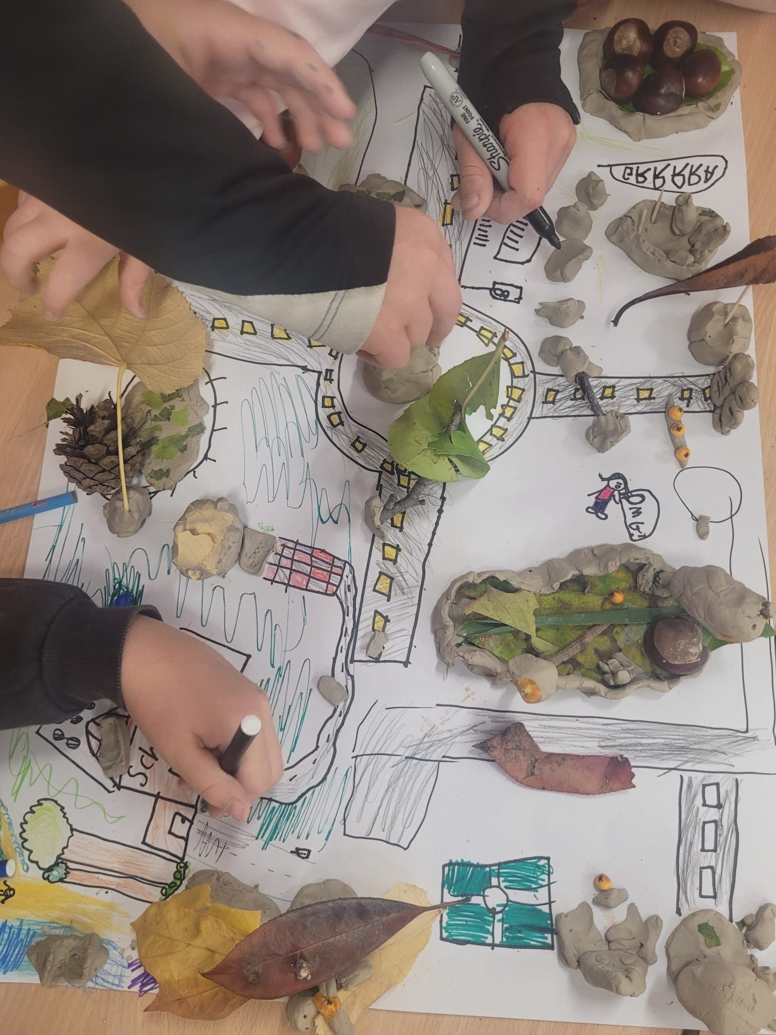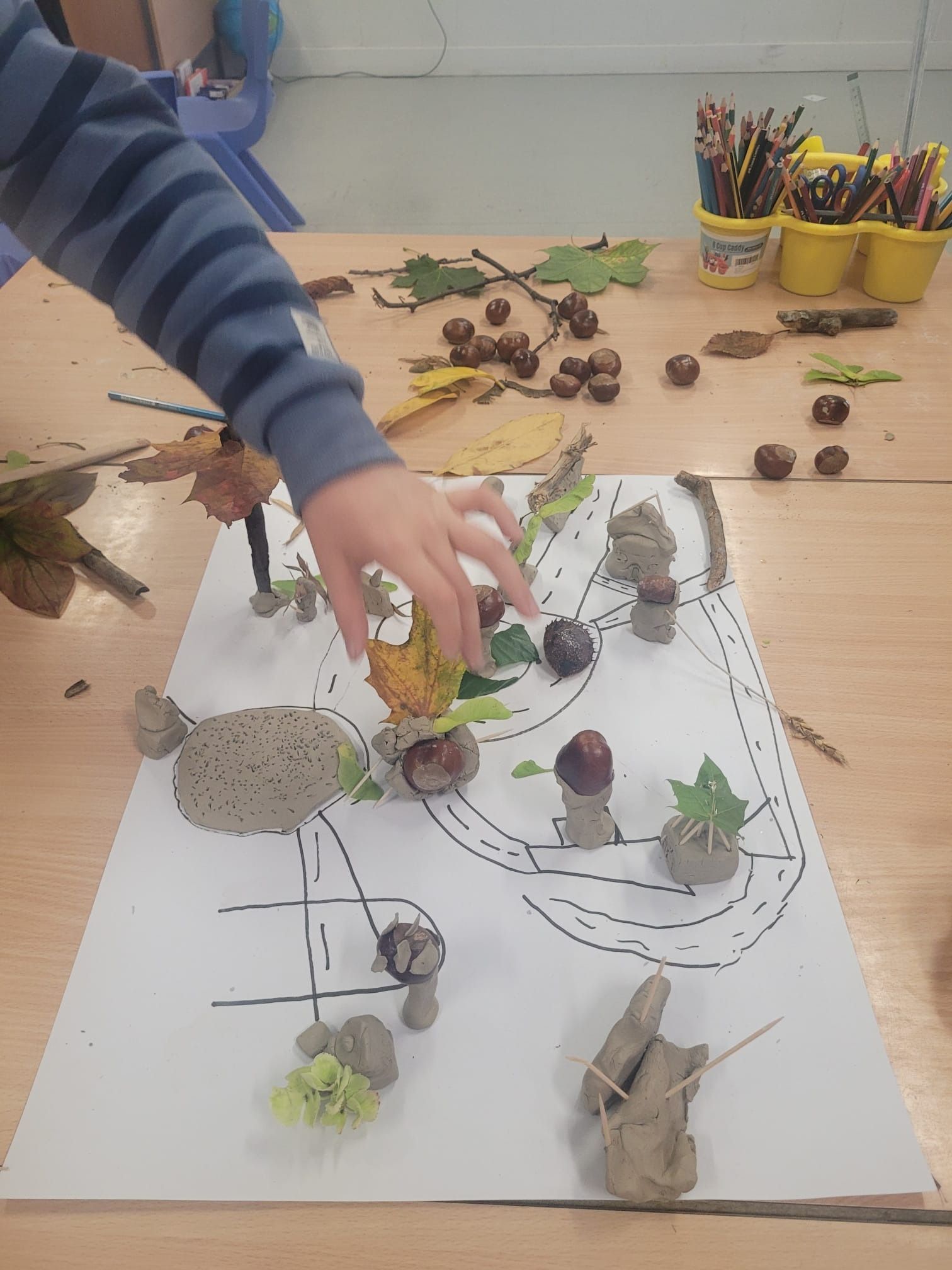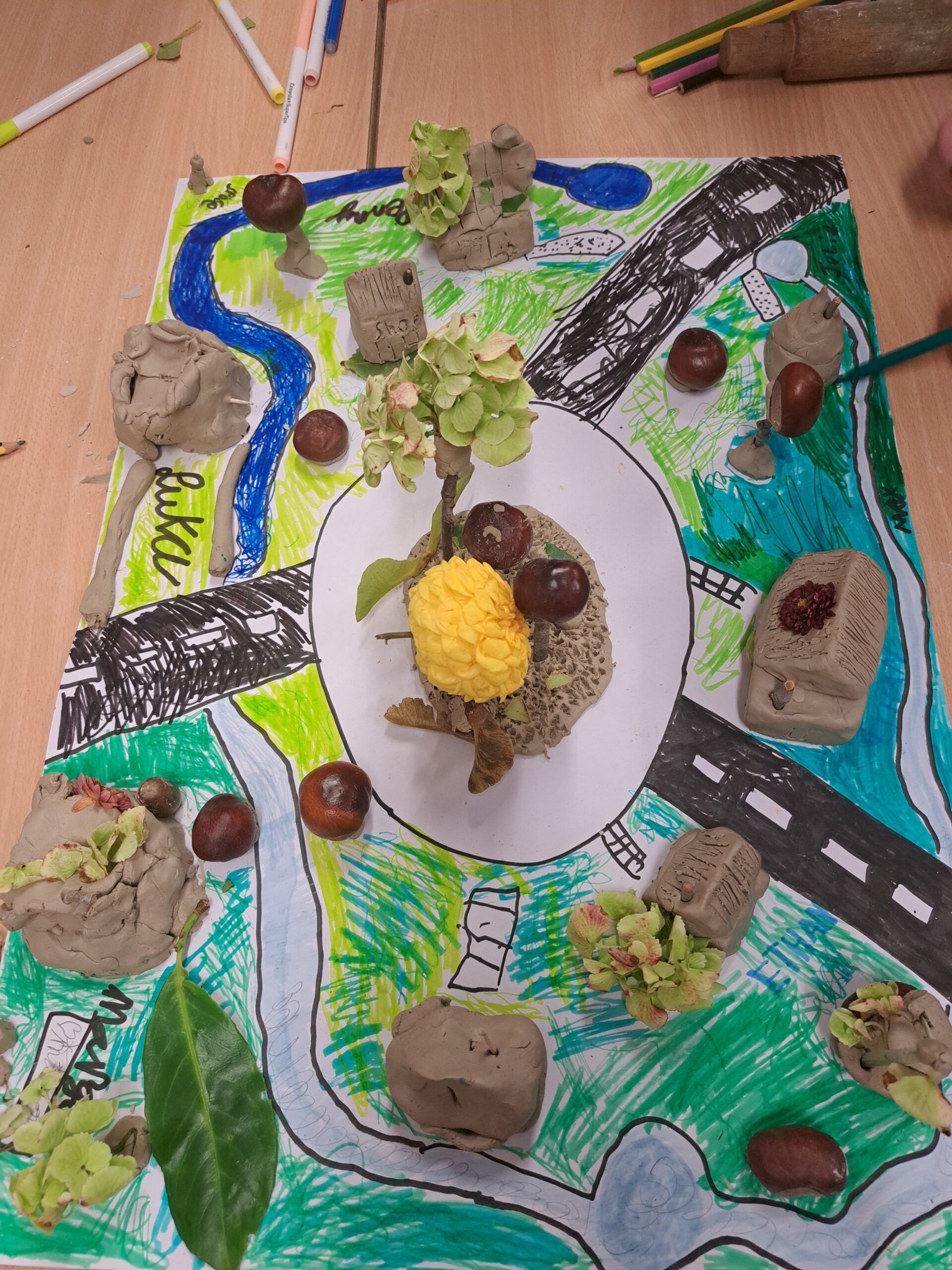 The children had great fun designing and building their own towns! Working in groups, they created maps of streets and buildings inspired by where they live, then brought them to life using clay, conkers, leaves, and twigs. The results were creative, unique, and full of teamwork and imagination! Lisa