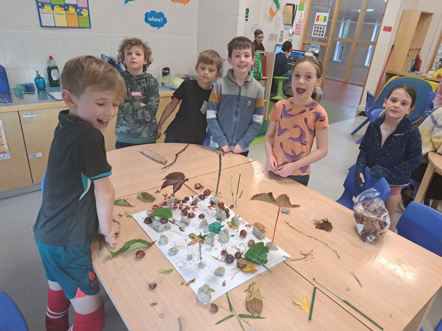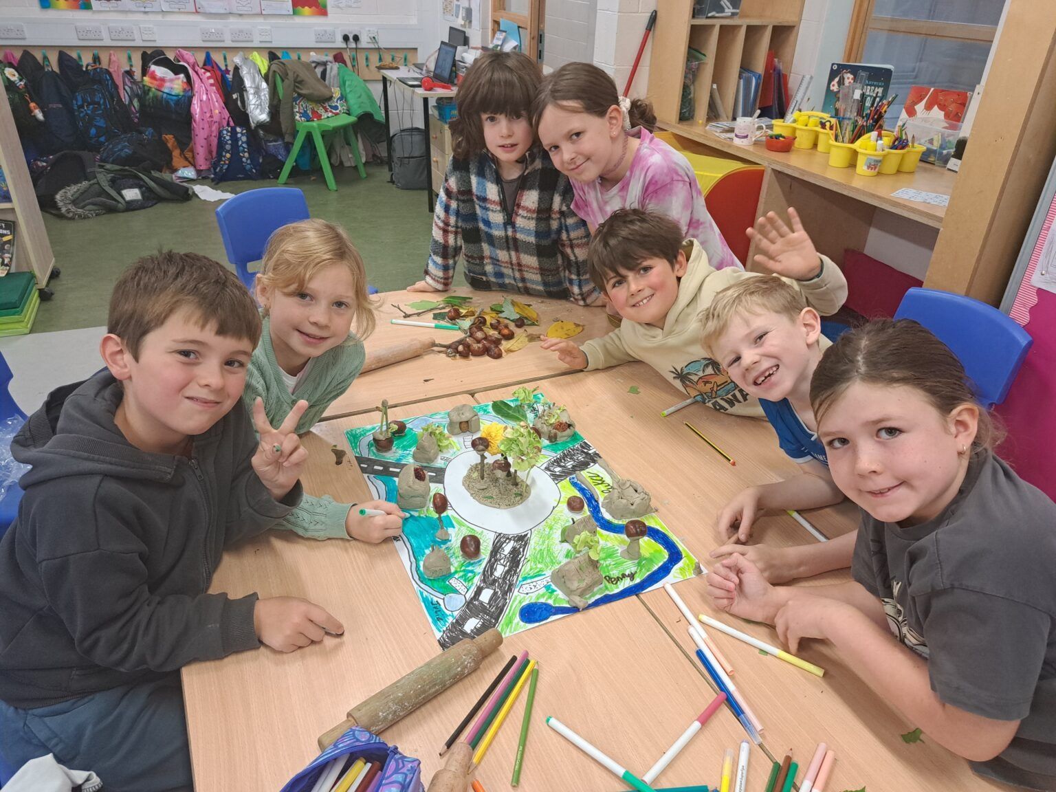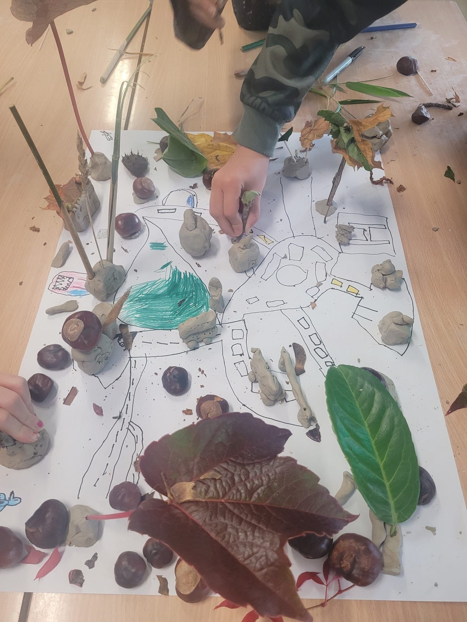 The children had great fun designing and building their own towns! Working in groups, they created maps of streets and buildings inspired by where they live, then brought them to life using clay, conkers, leaves, and twigs. The results were creative, unique, and full of teamwork and imagination! Lisa