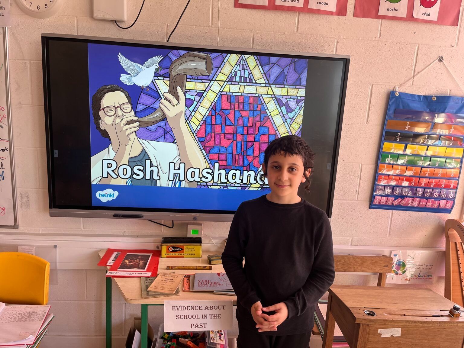 Naomi and Aoife’s 4th class were treated to a presentation from Aedan Serbin and his mum Hannah to teach the class all about Jewish New Year. They also shared some delicious apple soaked in honey to celebrate Rosh Hashanah. Naomi