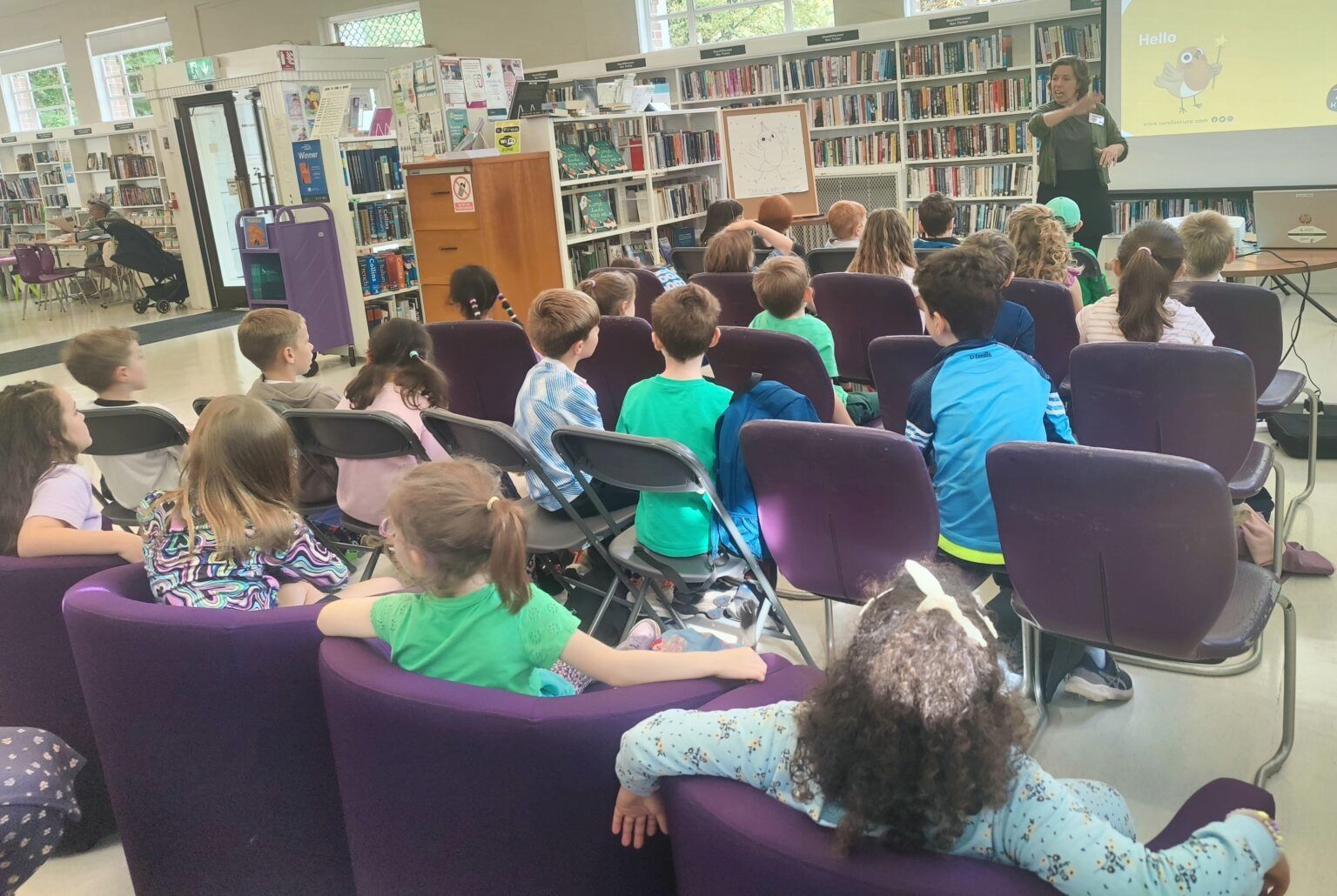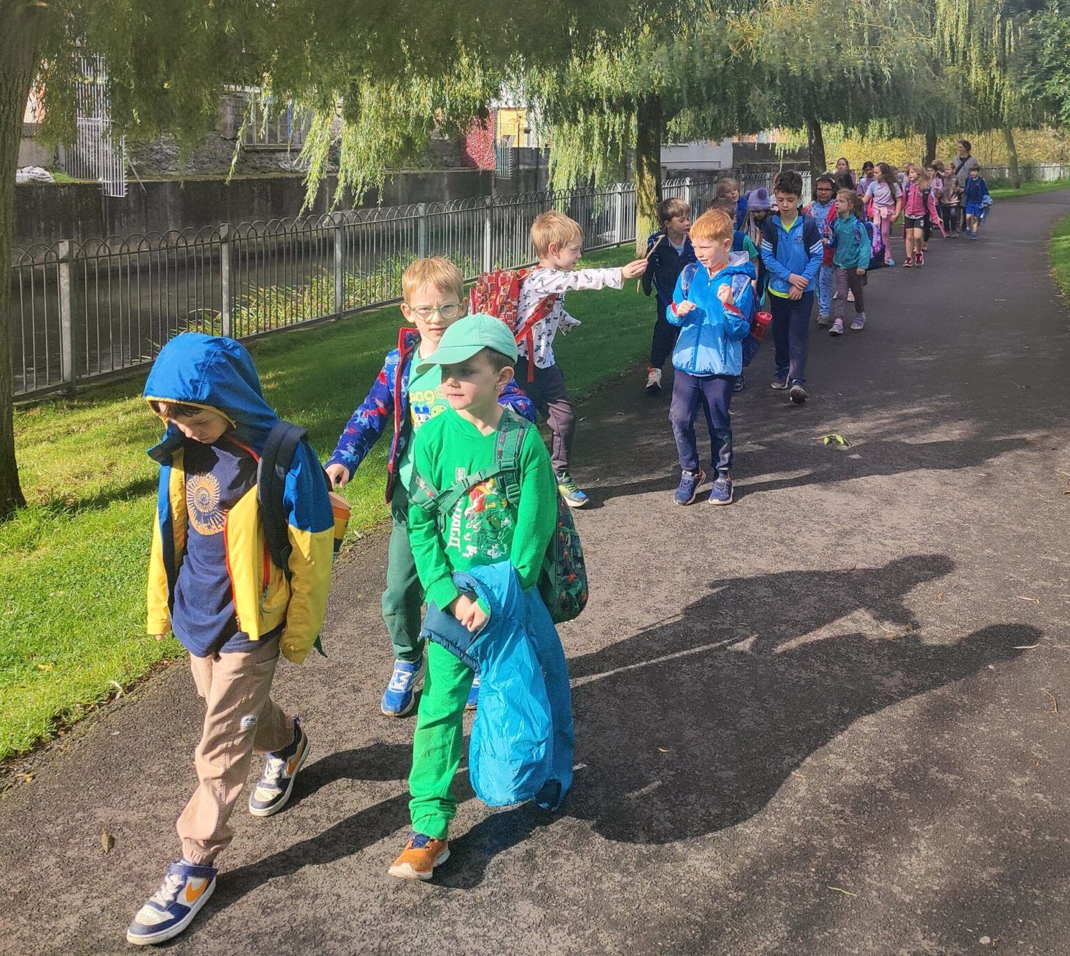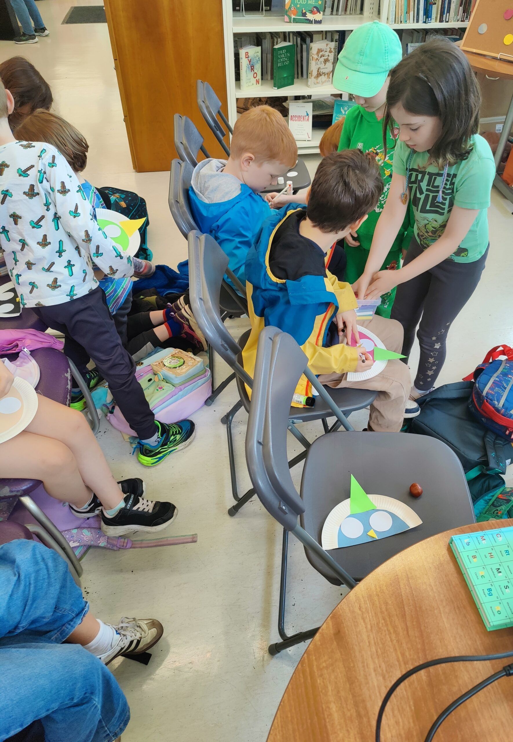 First Class enjoyed a sunny walk through Griffith Park on Wednesday before visiting Drumcondra Library. Author and illustrator Tarsila Kruse read her story A Little Birdie Told Me and helped the class make their own colourful bird masks. Ross