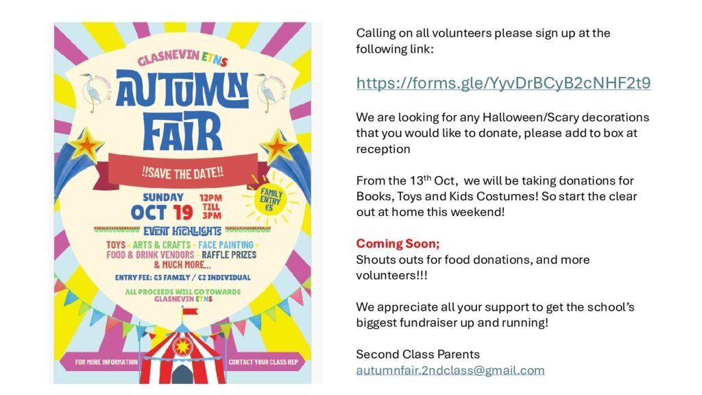 It’s great to have Realtín joining our dream team from this week and we all welcome her as 2nd class teacher.
