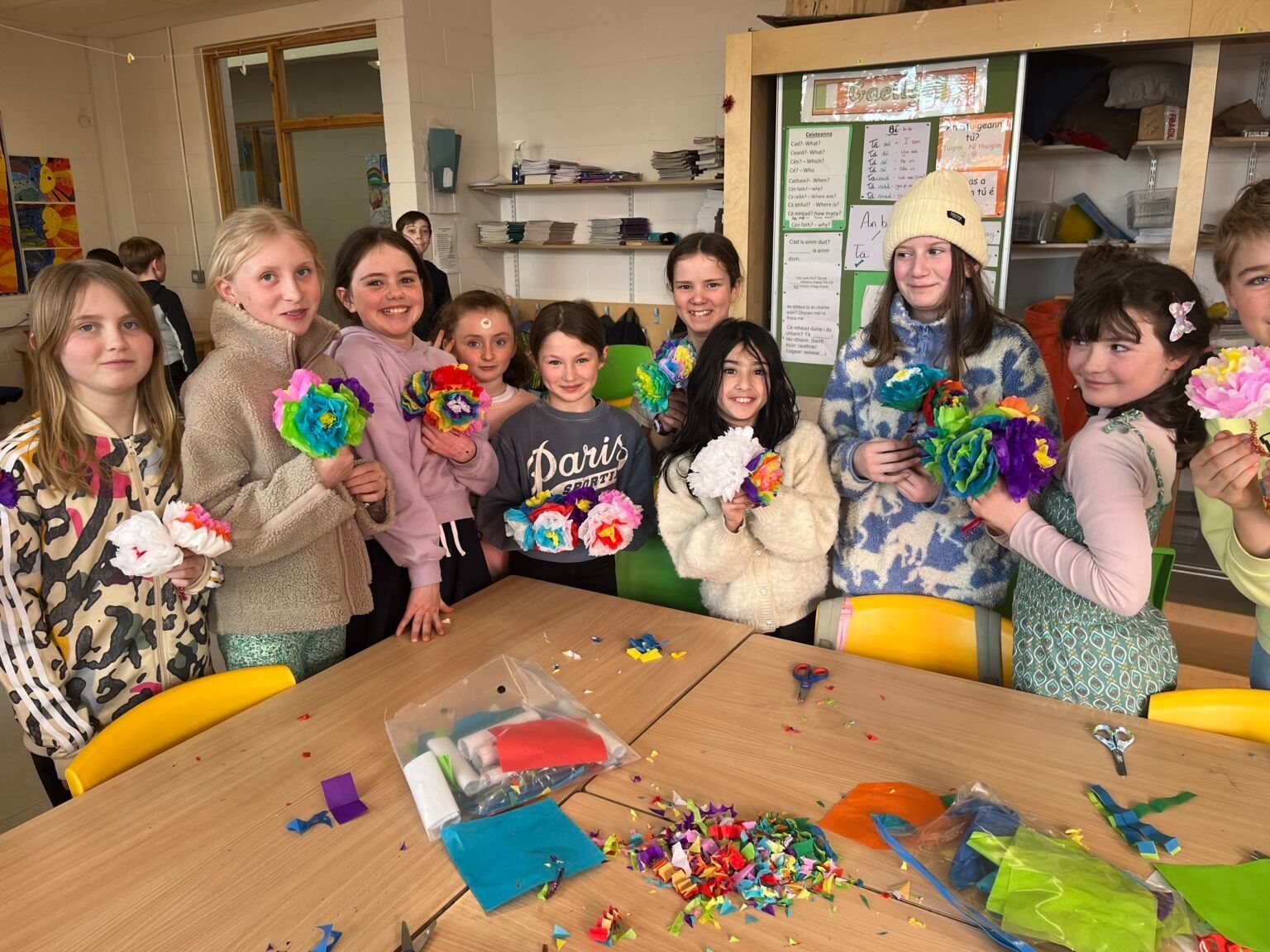 Last week both 4th classes went to the Ark to see “The Haircut”. They really enjoyed this play that was packed full of humour, drama and music. They also enjoyed making some beautiful tissue paper flowers that many gave their mums for Mother’s Day.