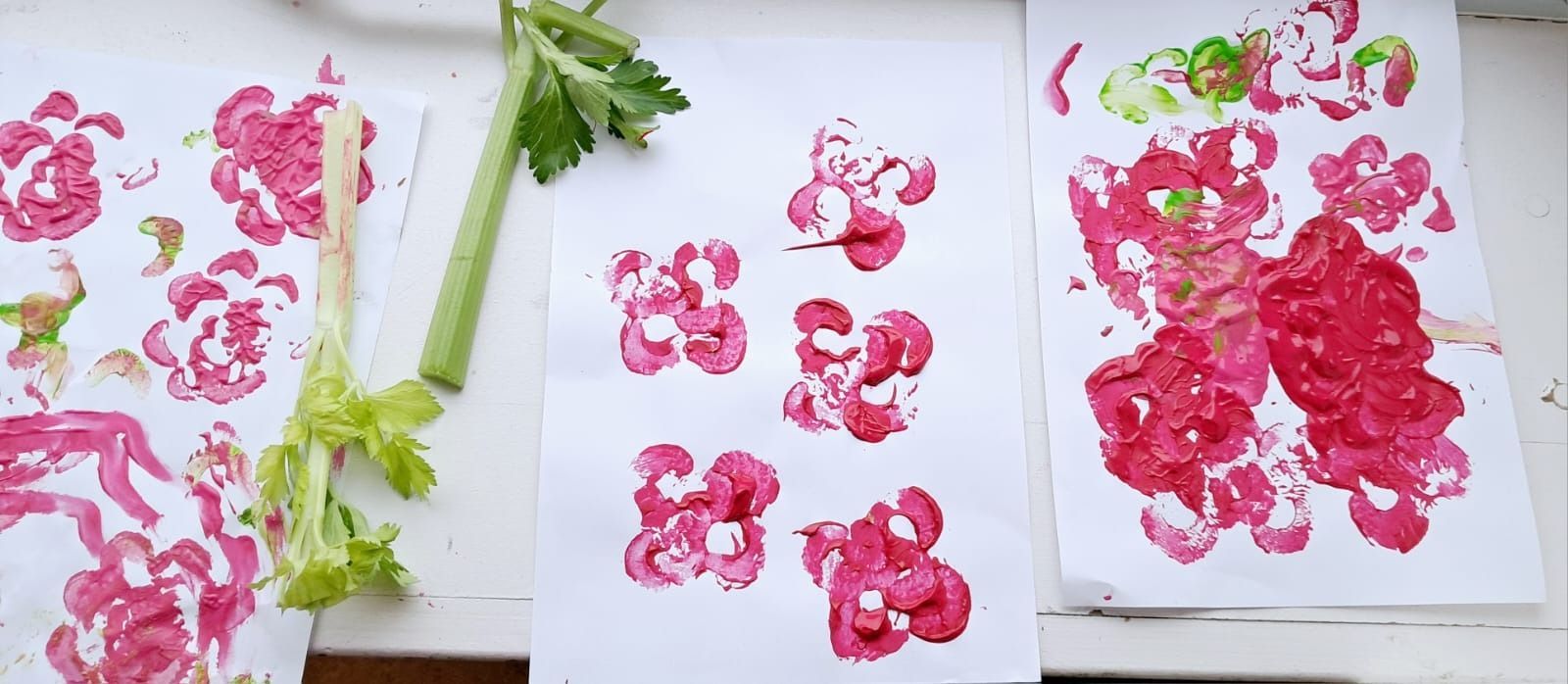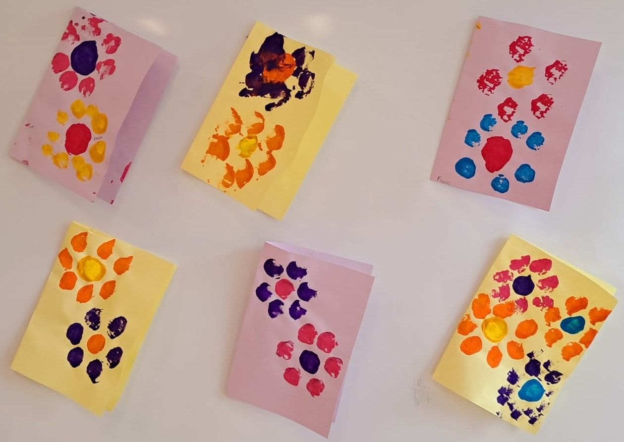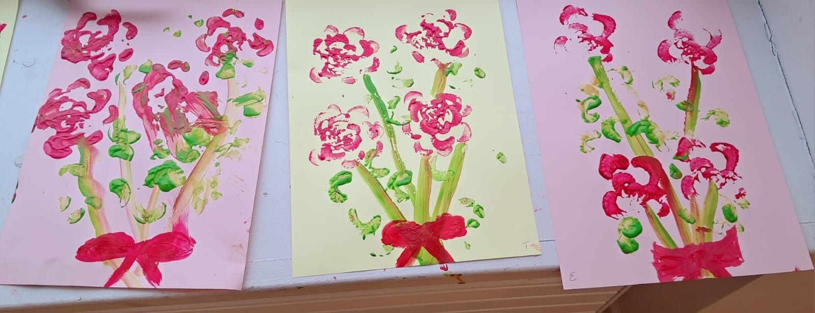 These are some photos of our Art work 🎨 in ALC Green. We have been having great fun printing with vegetables and pom poms! Can We made lots of flower paintings and used bright colours to celebrate Spring. The children enjoyed some finger painting too! 🌈