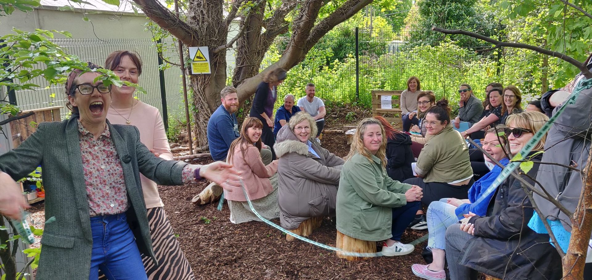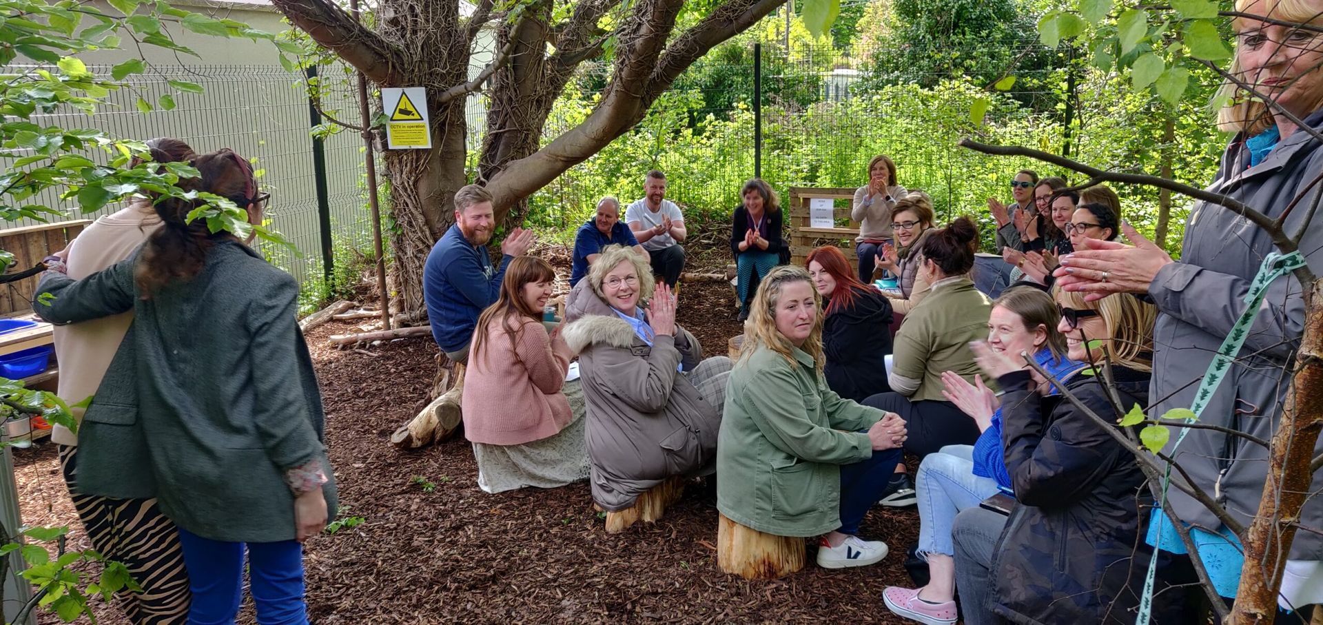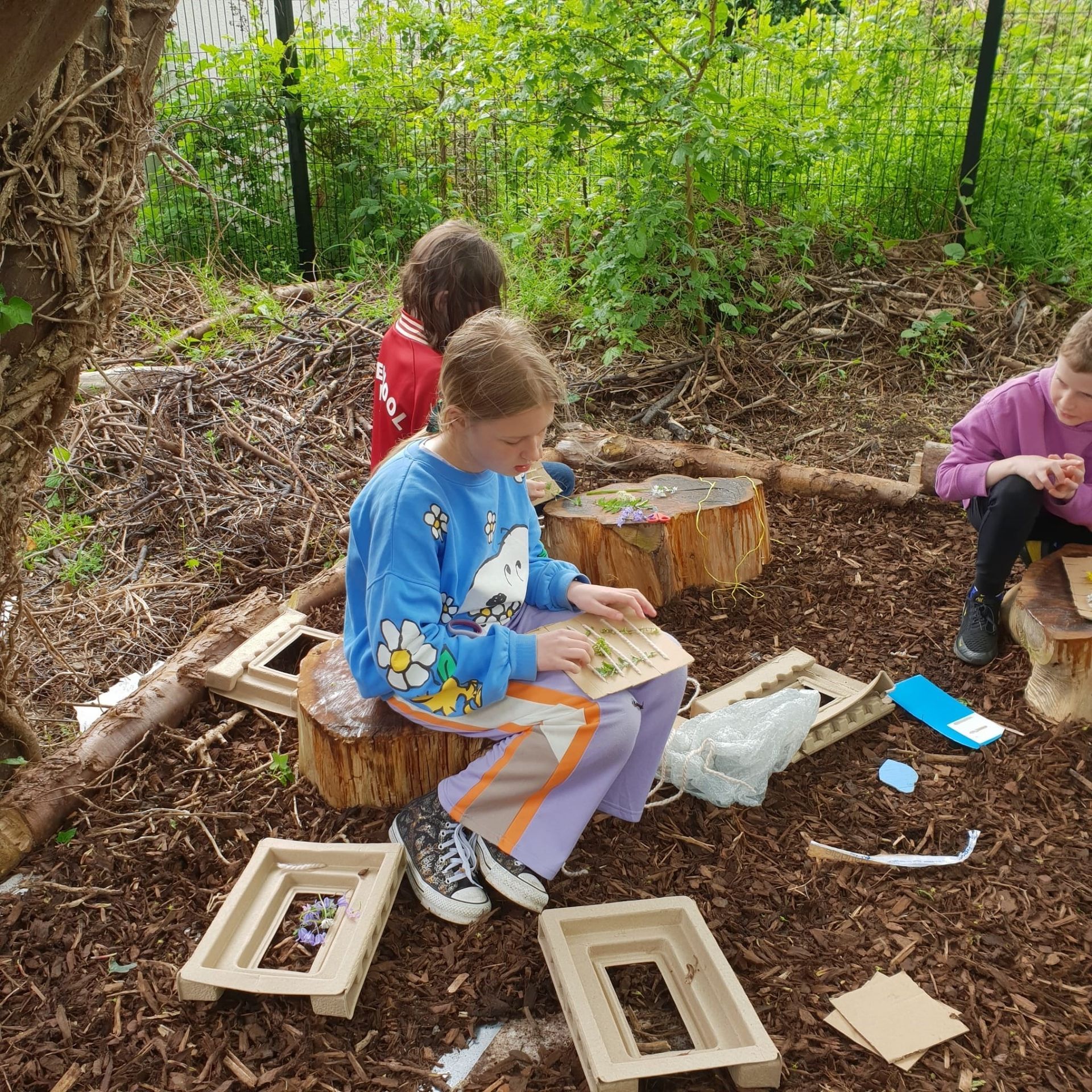 We are absolutely delighted to open our beautiful outdoor classroom set under a lovely sycamore tree, with bark surface, log seating, rustic kitchen and locker of resources. We are hugely grateful to Sorcha and Dee for their vision and follow through of this to creating such a grounding environment for children to enjoy learning. It wouldn’t have been made possible without Mick and his mighty energy and ability. Yesterday we had a simple opening to mark this, another milestone in making best use of our lovely school.