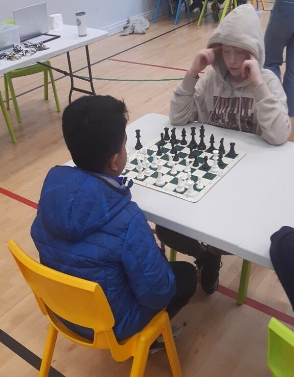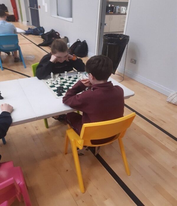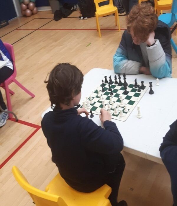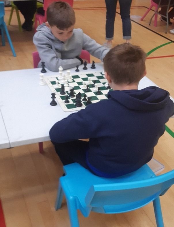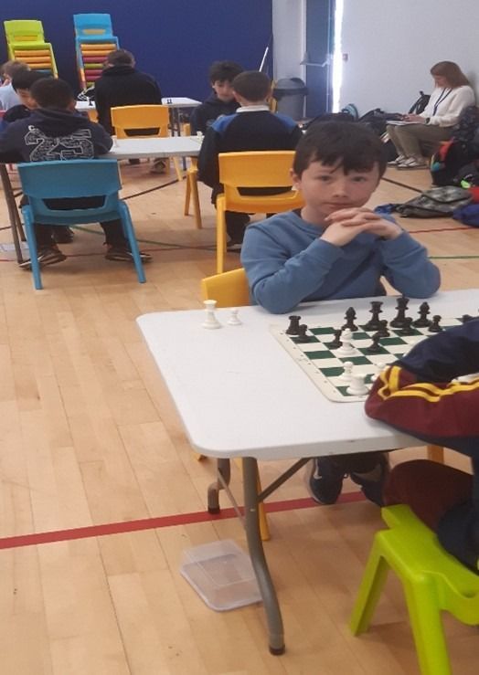 A team of eight players from the ECA Chess Club (The Chessnevin Bishops!) travelled to St. Oliver Plunkett’s NS in Malahide to do battle against ten other schools from all over the Northside yesterday. The competition was very stiff, with only one player in the entire event emerging undefeated. Howth National School were the overall winners of the tournament. The children from GETNS performed admirably and finished in fifth place overall. Our top scorer was Patrick from Colm’s 6th Class, who achieved an impressive 5/6. The players showed remarkable fighting spirit and learned valuable lessons from their games. Below are some photos of the players in action. David