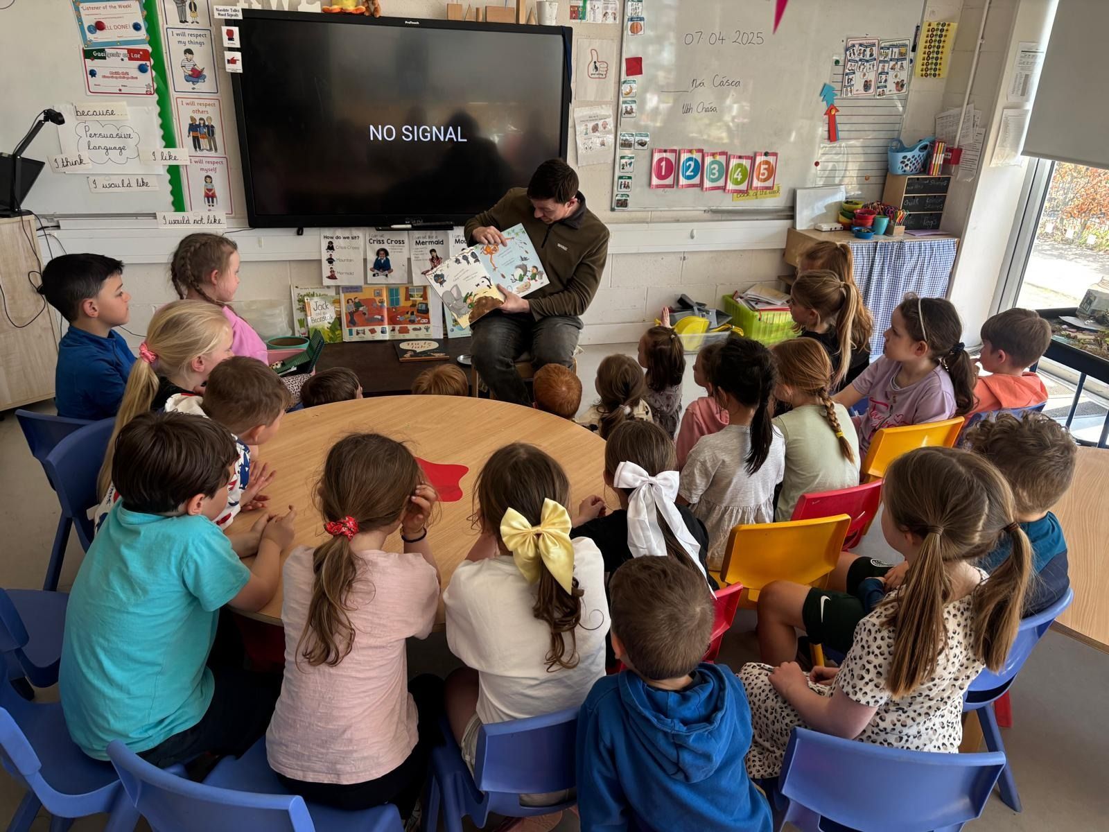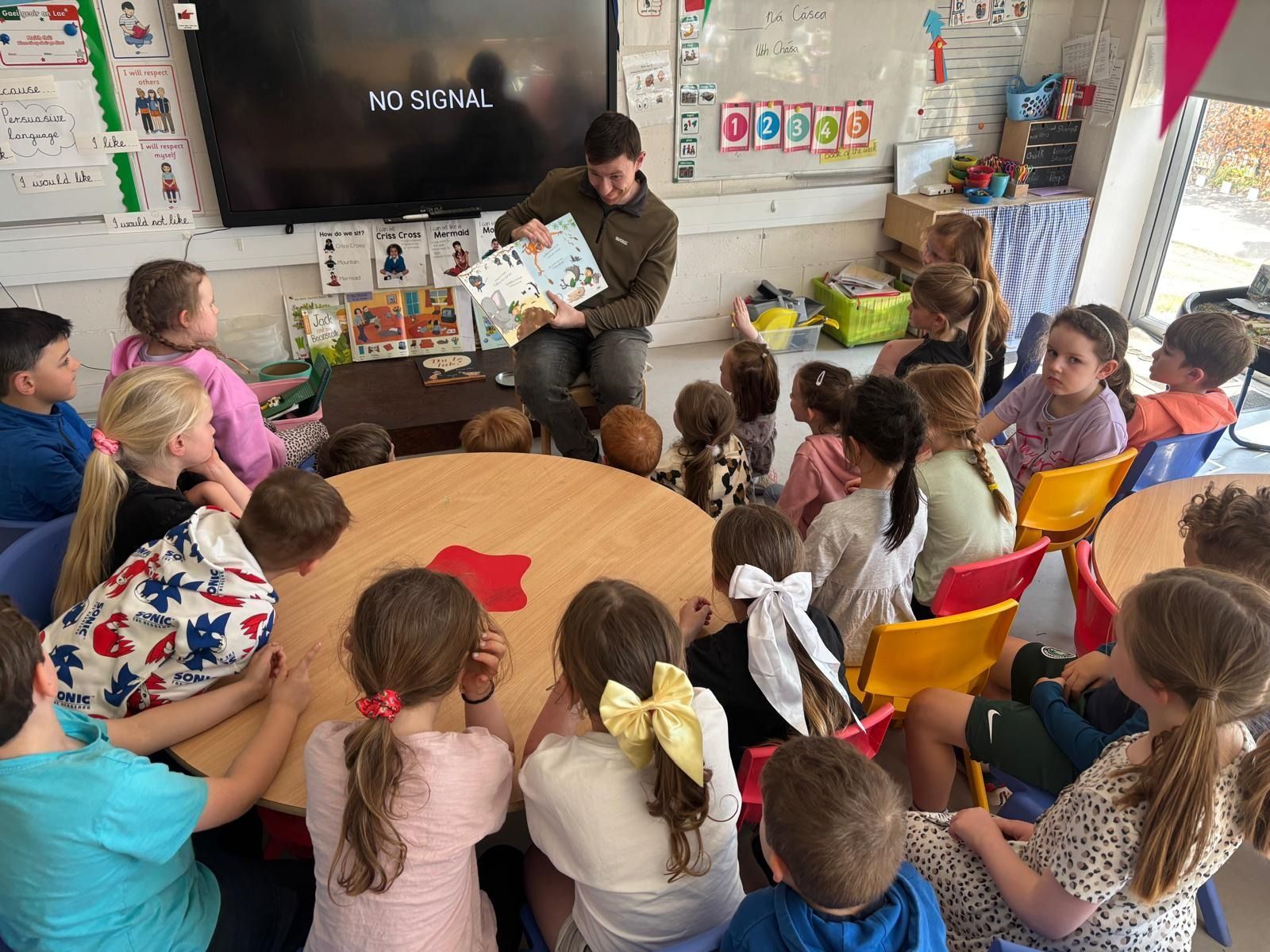 Teacher David reading a story to Dee’s Senior Infant class.