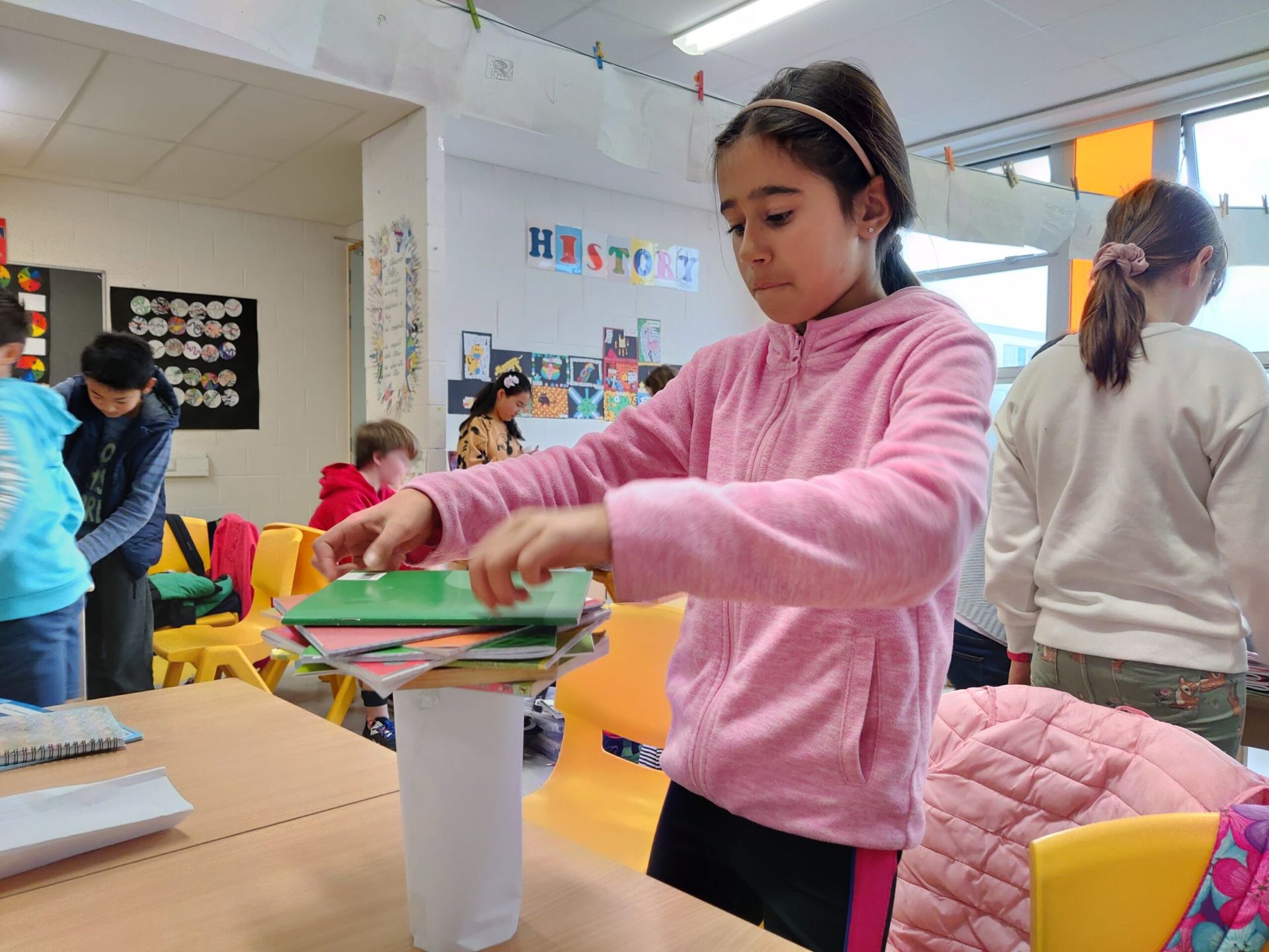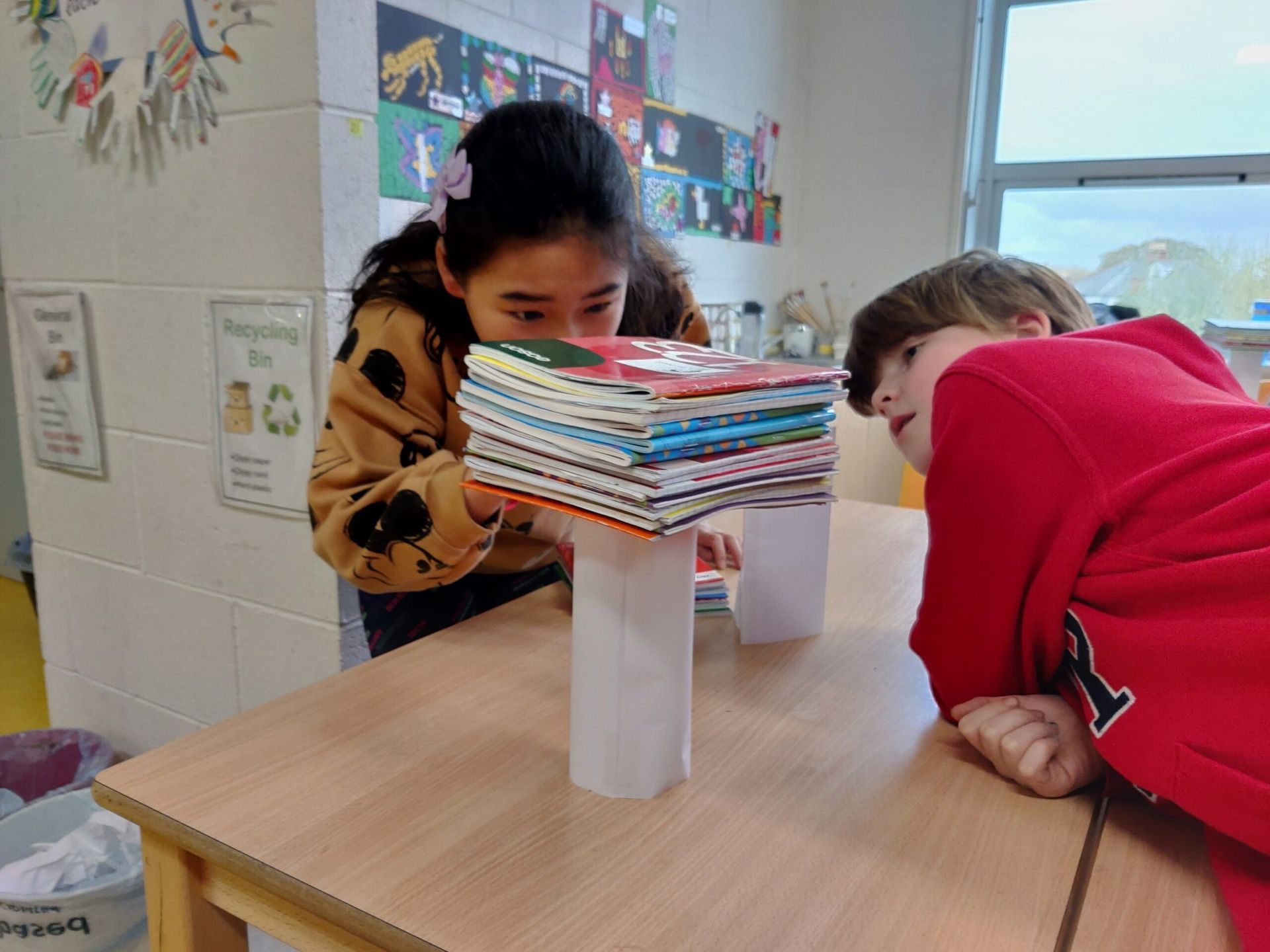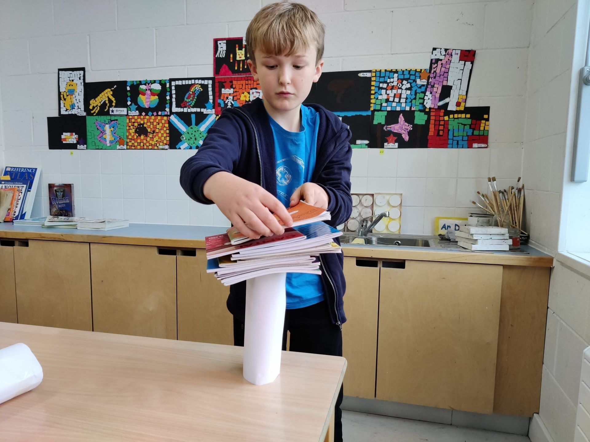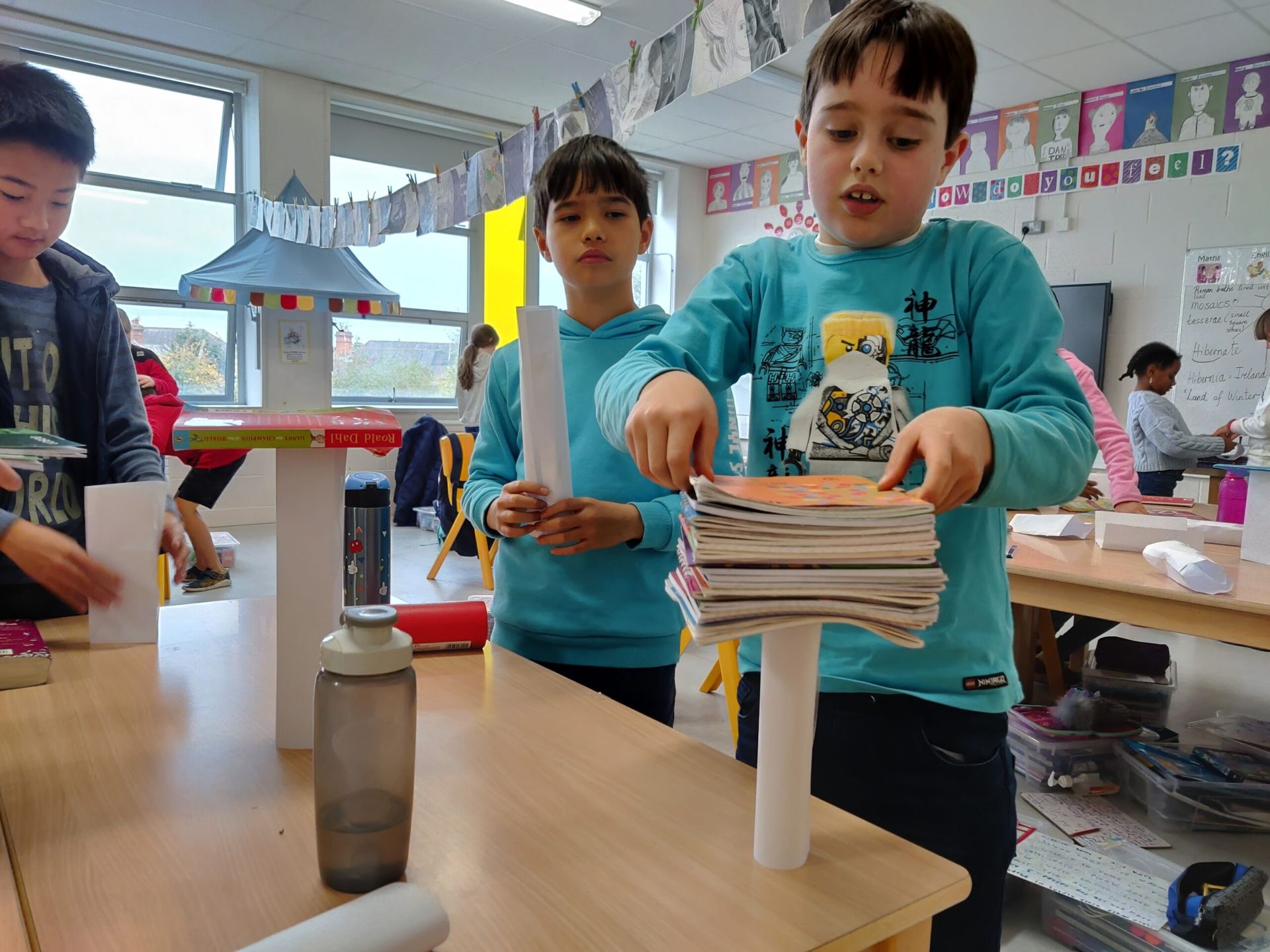 We explored which pillar shape was the strongest – cuboid, triangular prism or cylinder. We discovered that the cylinder is the strongest and that’s why the Romans used it in their column designs!