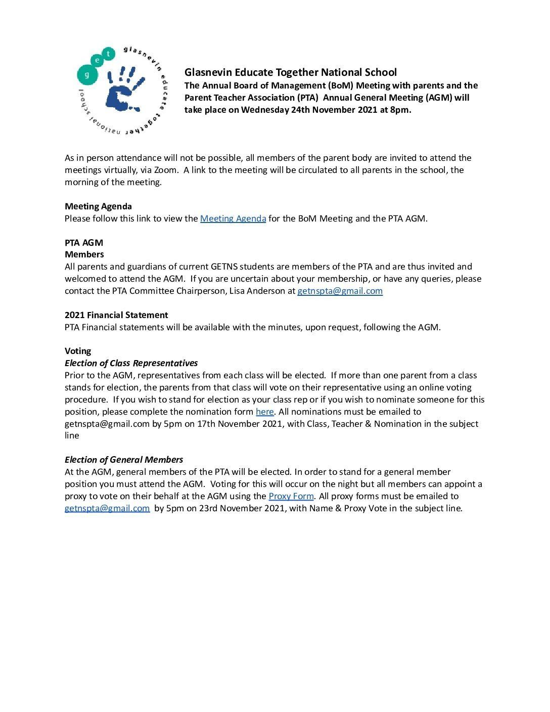 BoM meeting with Parents and PTA AGM
