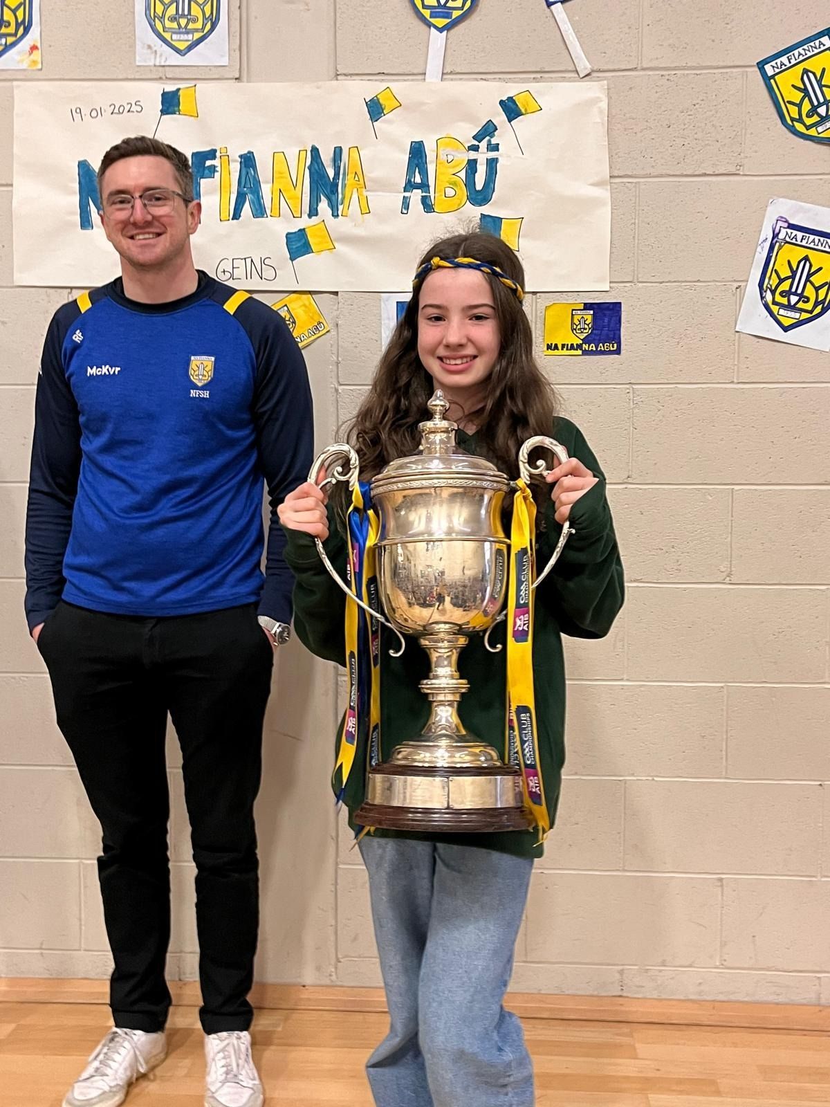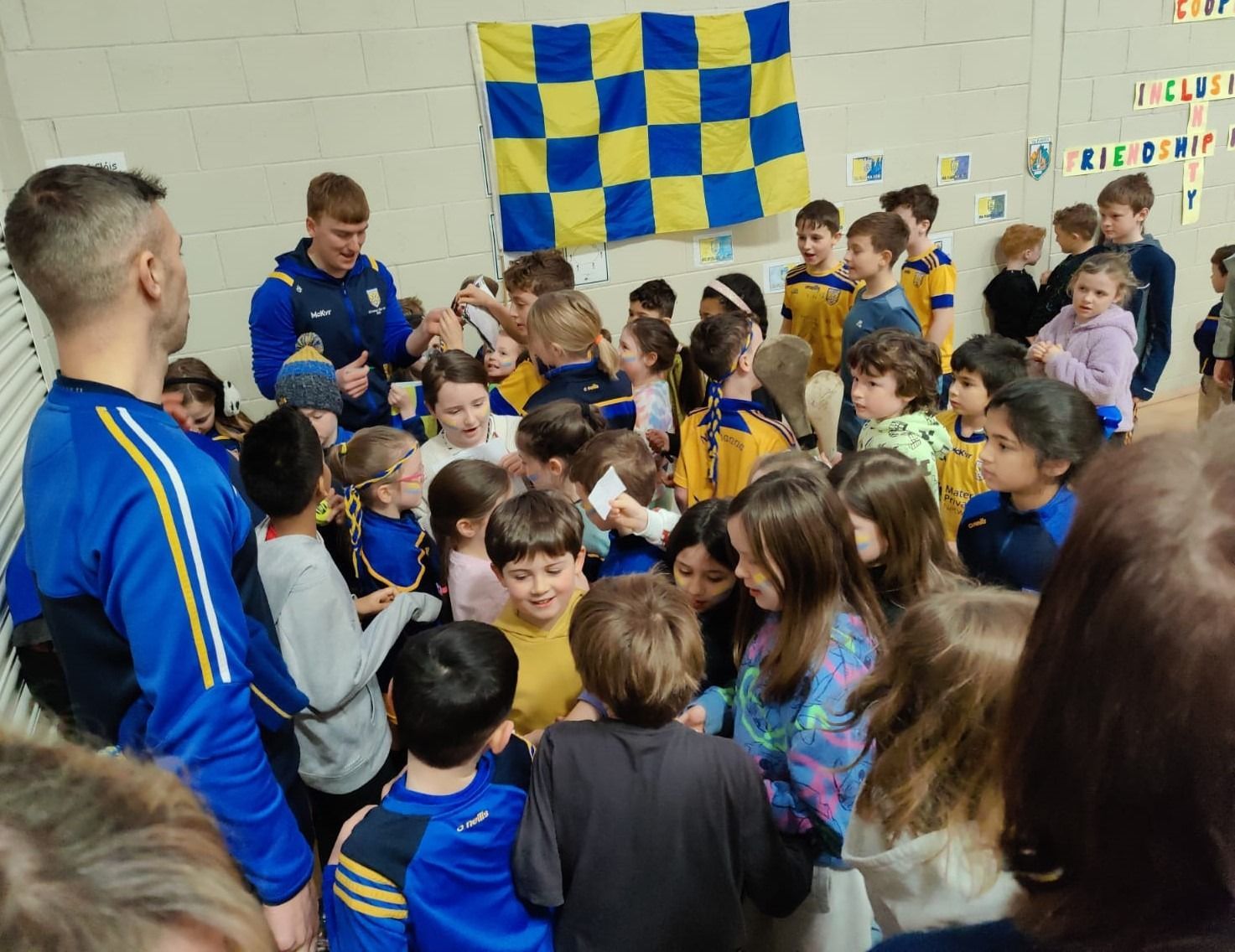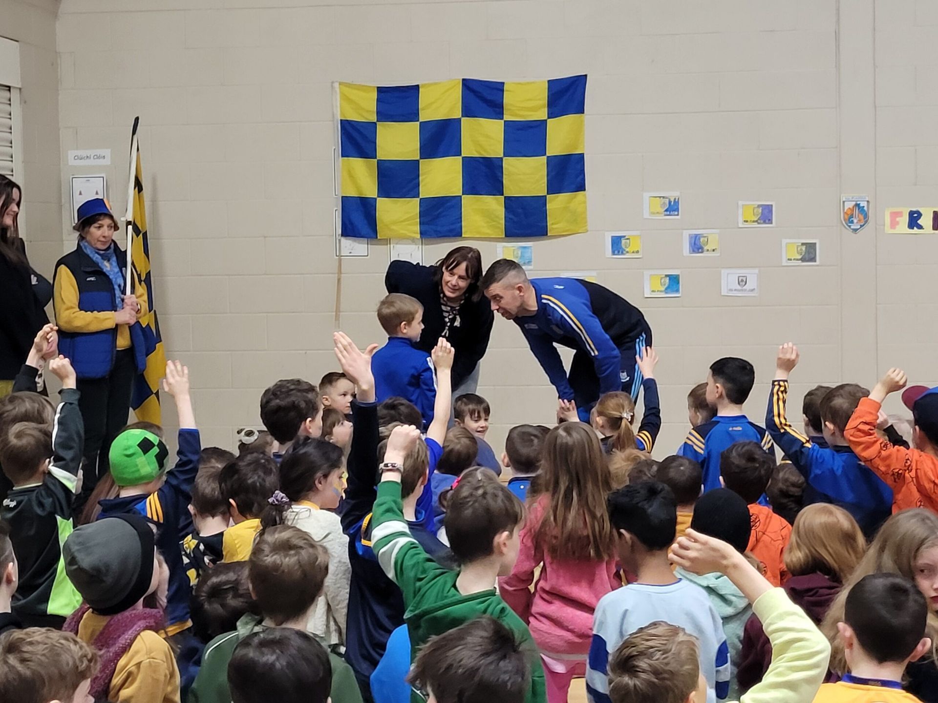 This morning some of the players and their families visited the school. They brought along their silverware from County, Leinster and All Ireland championships for all to see. The children gave them a very warm welcome and asked the players some very interesting questions. Na Fianna Abú