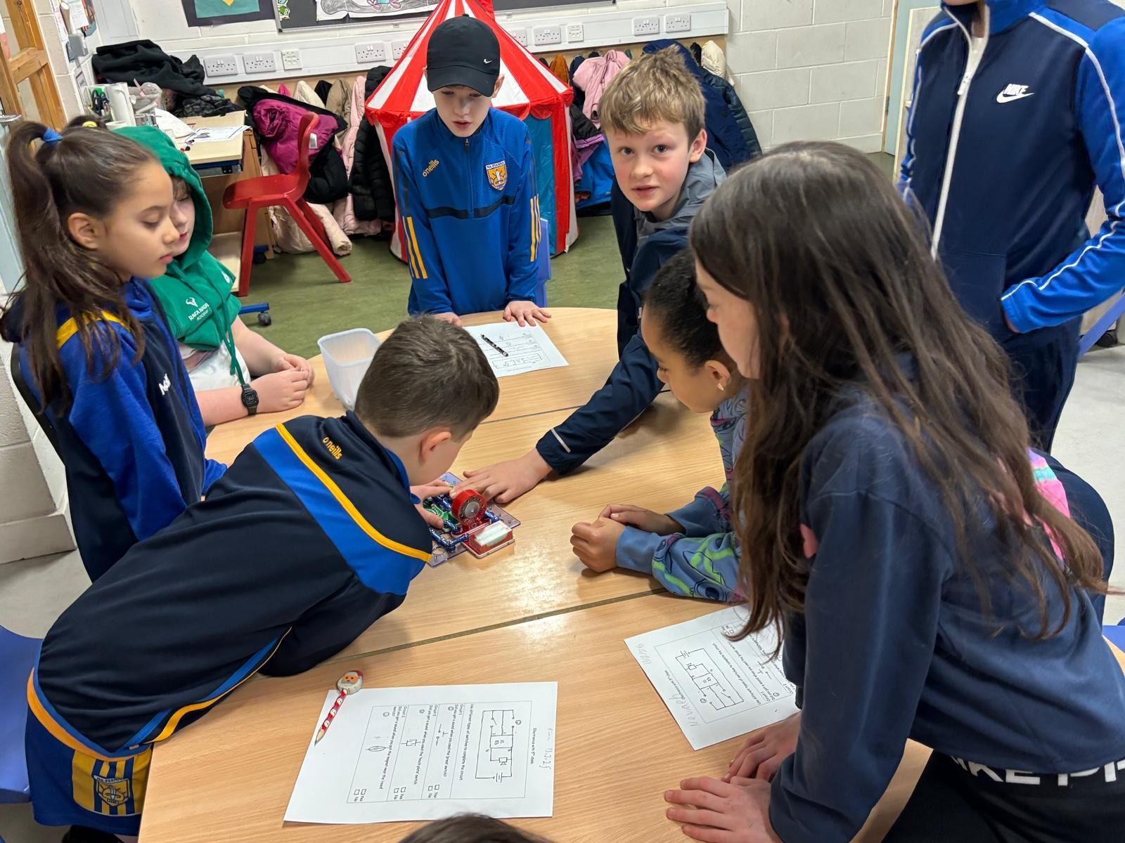 Today Sylvia’s 5th class and Siobhán’s 2nd class worked together on circuits. We look forward to more science collaborations and peer learning.