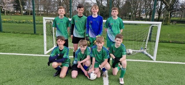 Cormac, Bobby, Daniel, Sam C, Ciarán, Cal, Luke C and Éanna represented the school at the FAI 5-a-side tournament at Irishtown Stadium on Tuesday. They played brilliantly, going unbeaten in the group stage with 2 wins and 2 draws and were unlucky to miss out on the knockout stages. Bobby scored an amazing 7 goals in the four group games. A big bualadh bos for the lads. Colm