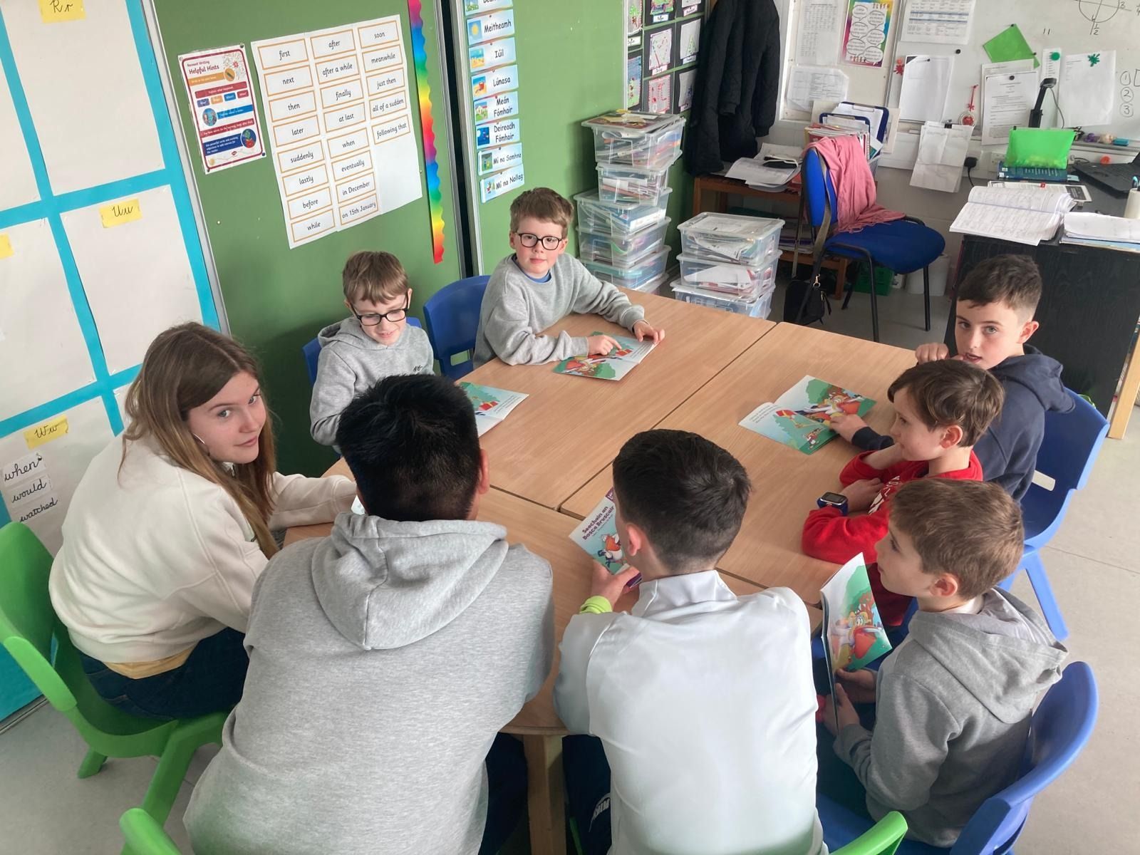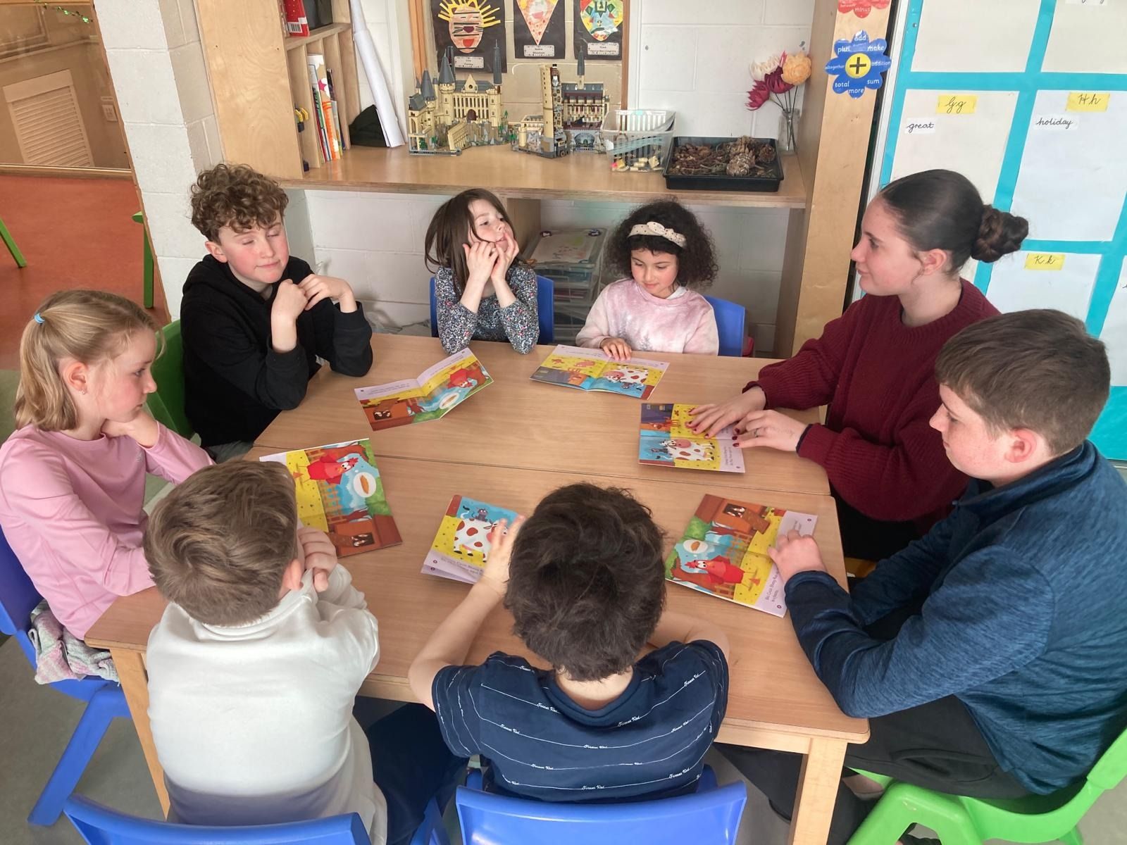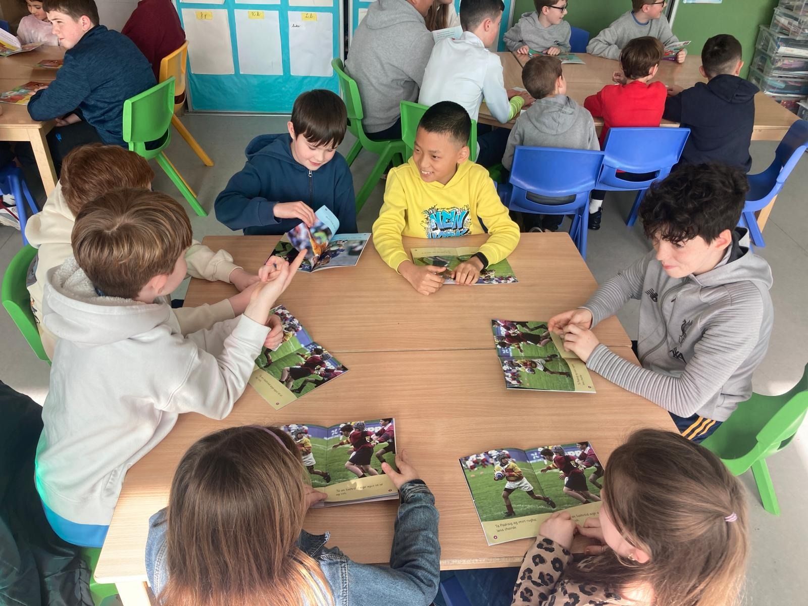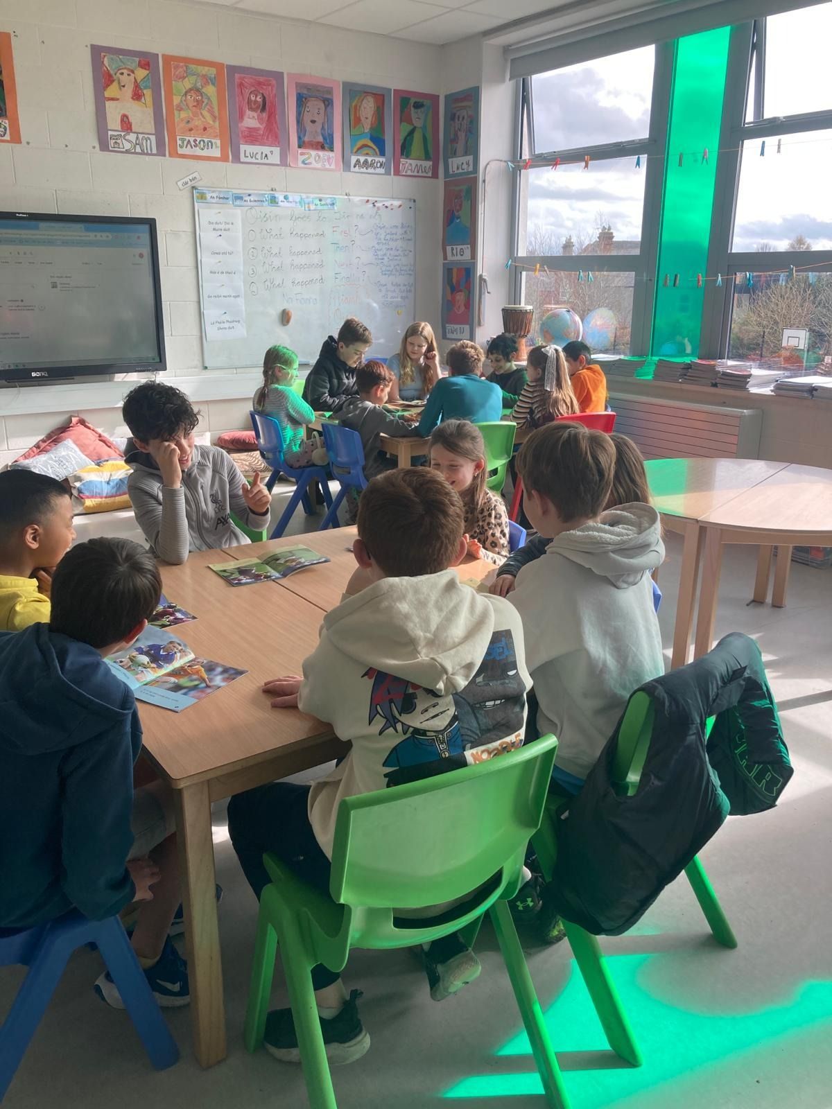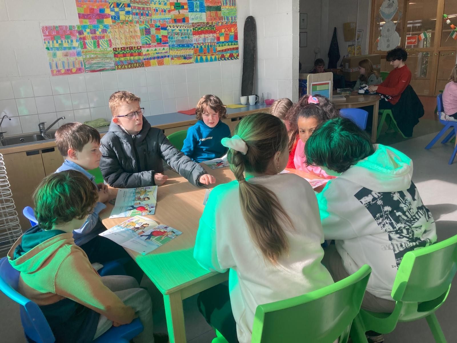 Gaeilge paired reading with Páraig’s 6th class. Jill