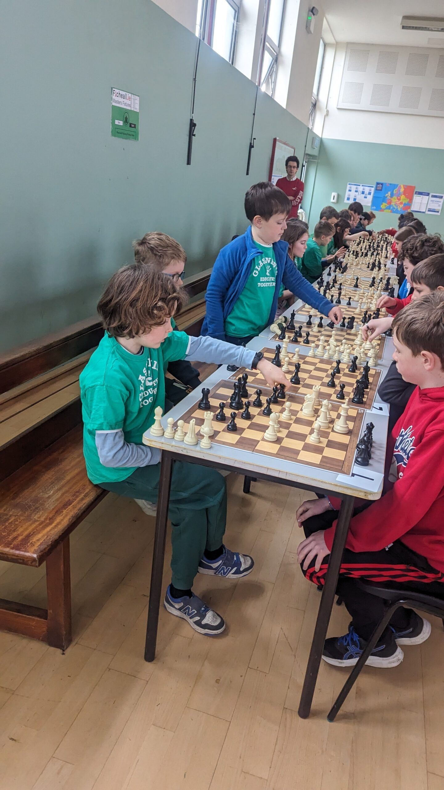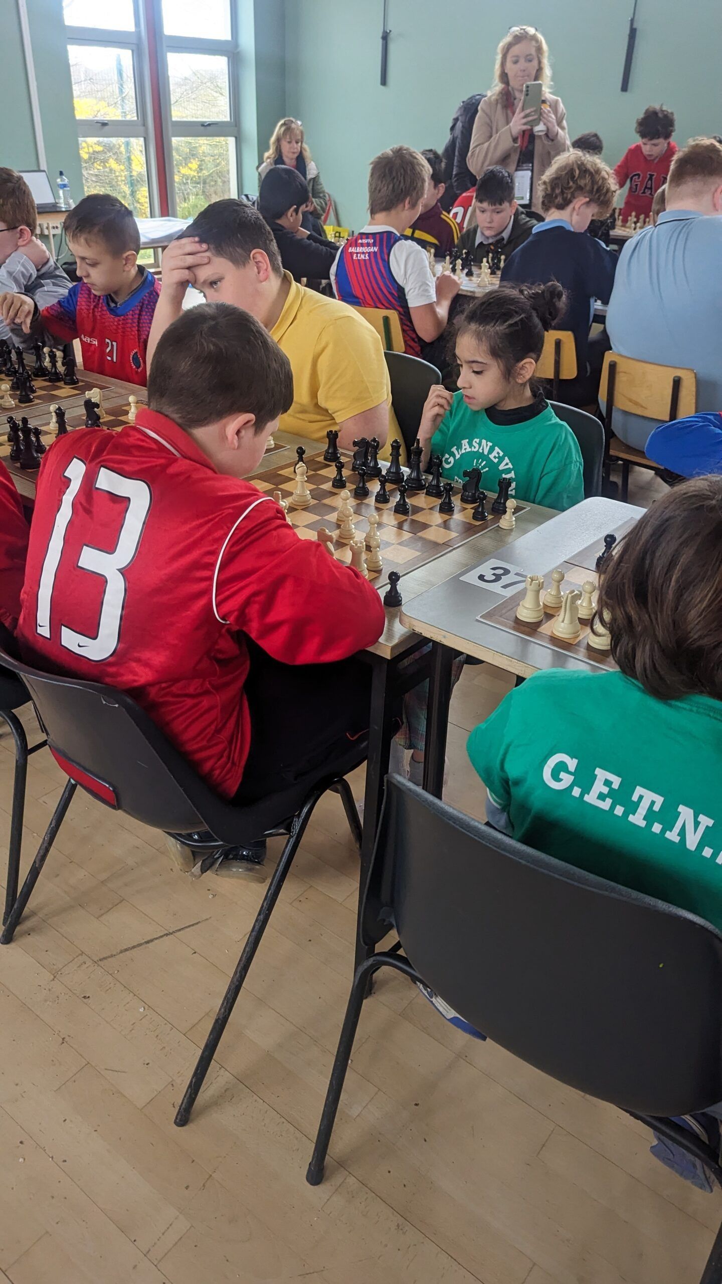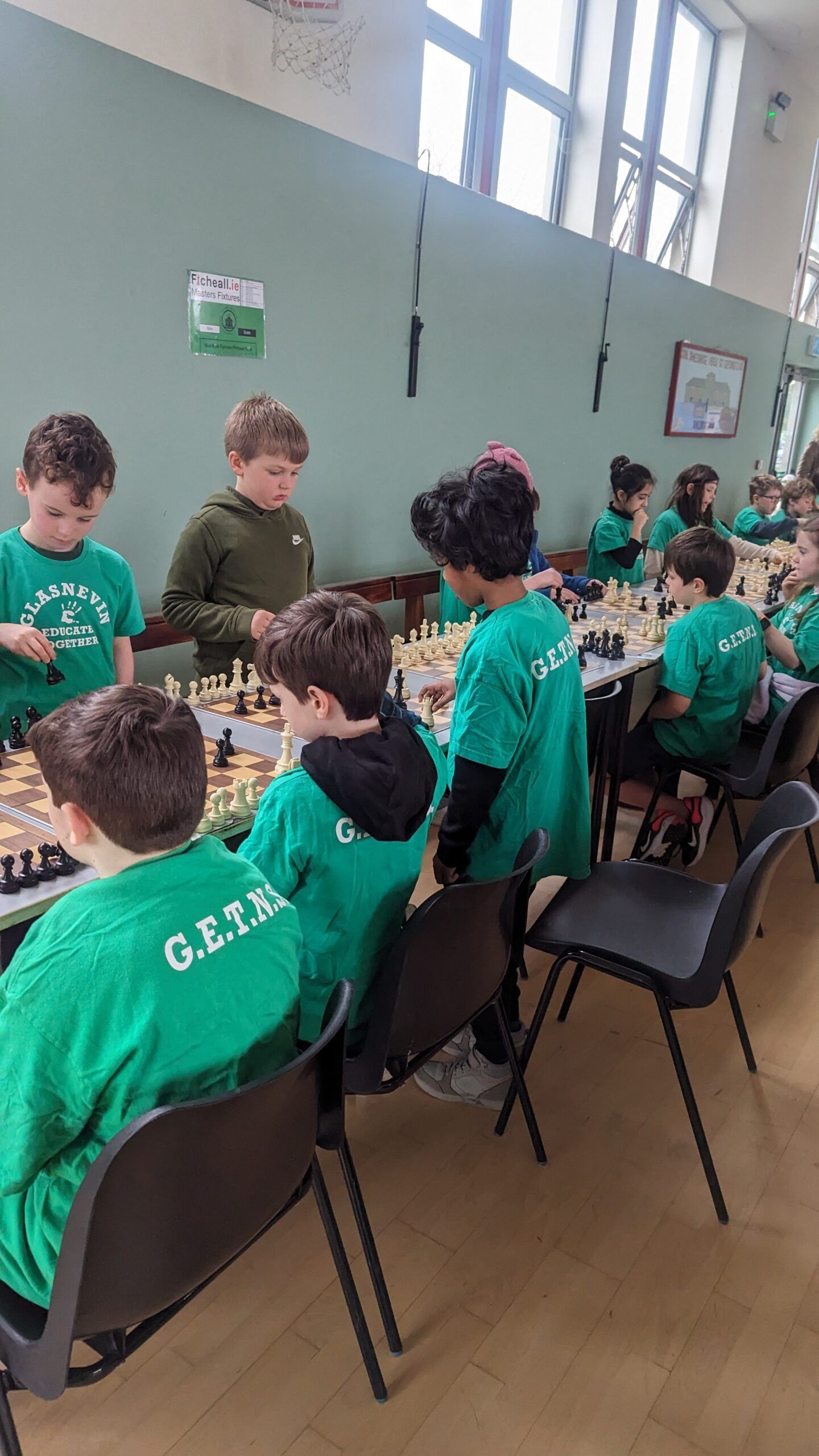 On Tuesday, the school’s chess club travelled to the Féile Fichille inter-schools chess tournament in Balbriggan and competed against six other schools. Everyone played great chess against their opponents and represented the school really well. The tournament adjudicator was particularly impressed at one of our students winning a game by a very rare pawn checkmate! Well done to all who took part. – Grace