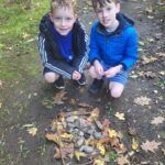 2nd class were learning about Andy Goldsworthy and created some pieces of art in nature of their own afterwards. Áine