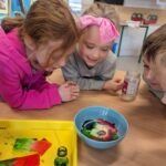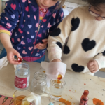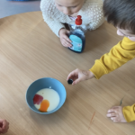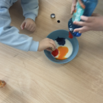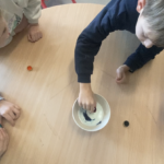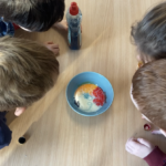 This week we completed two experiments. Our first experiment was Magic Milk. We created patterns in milk by using three smalls drops of food colouring to a bowl of milk. We then added washing up liquid, which bonded with the fat in the milk, forcing the food colouring to be pushed around the bowl.