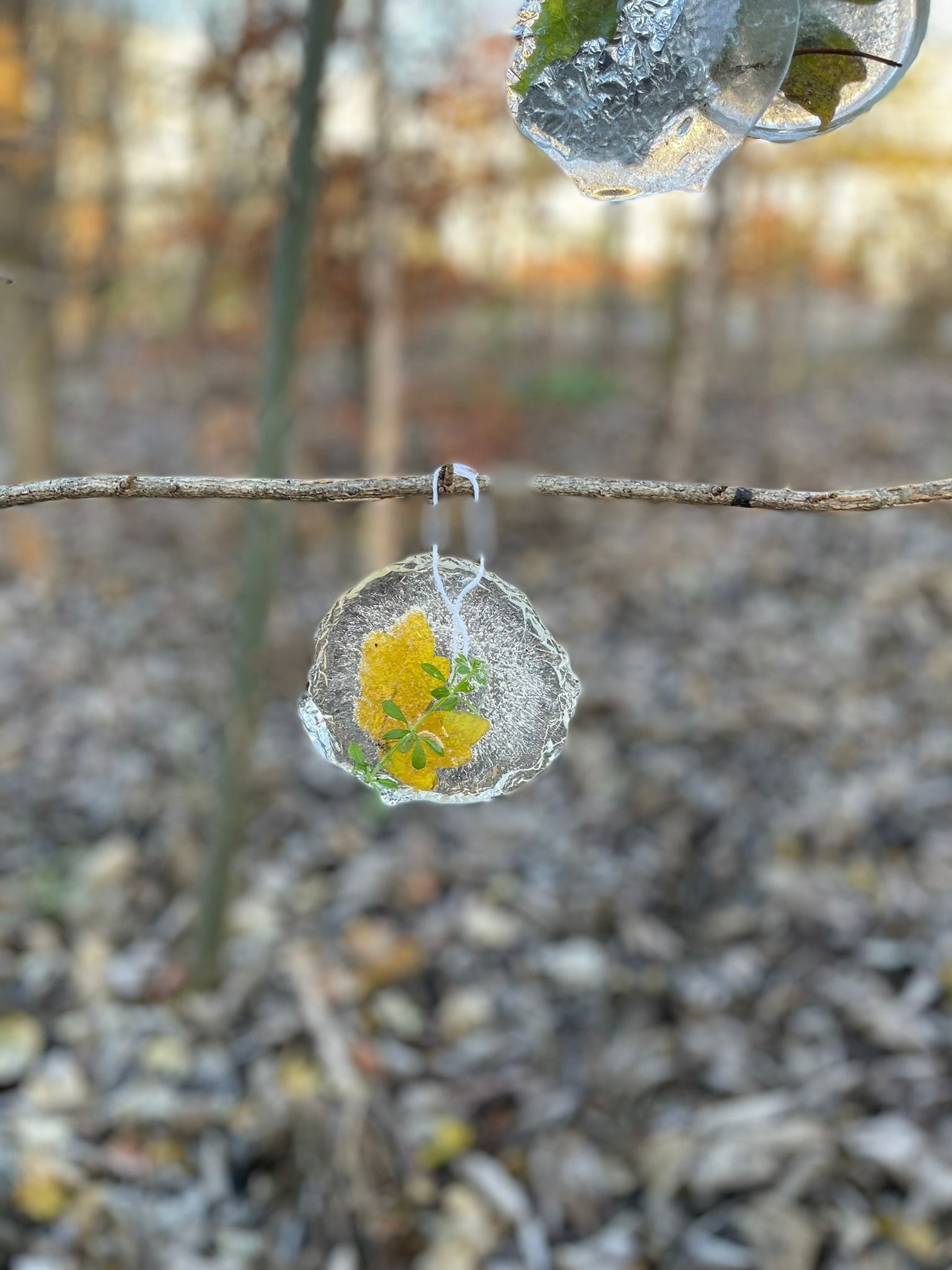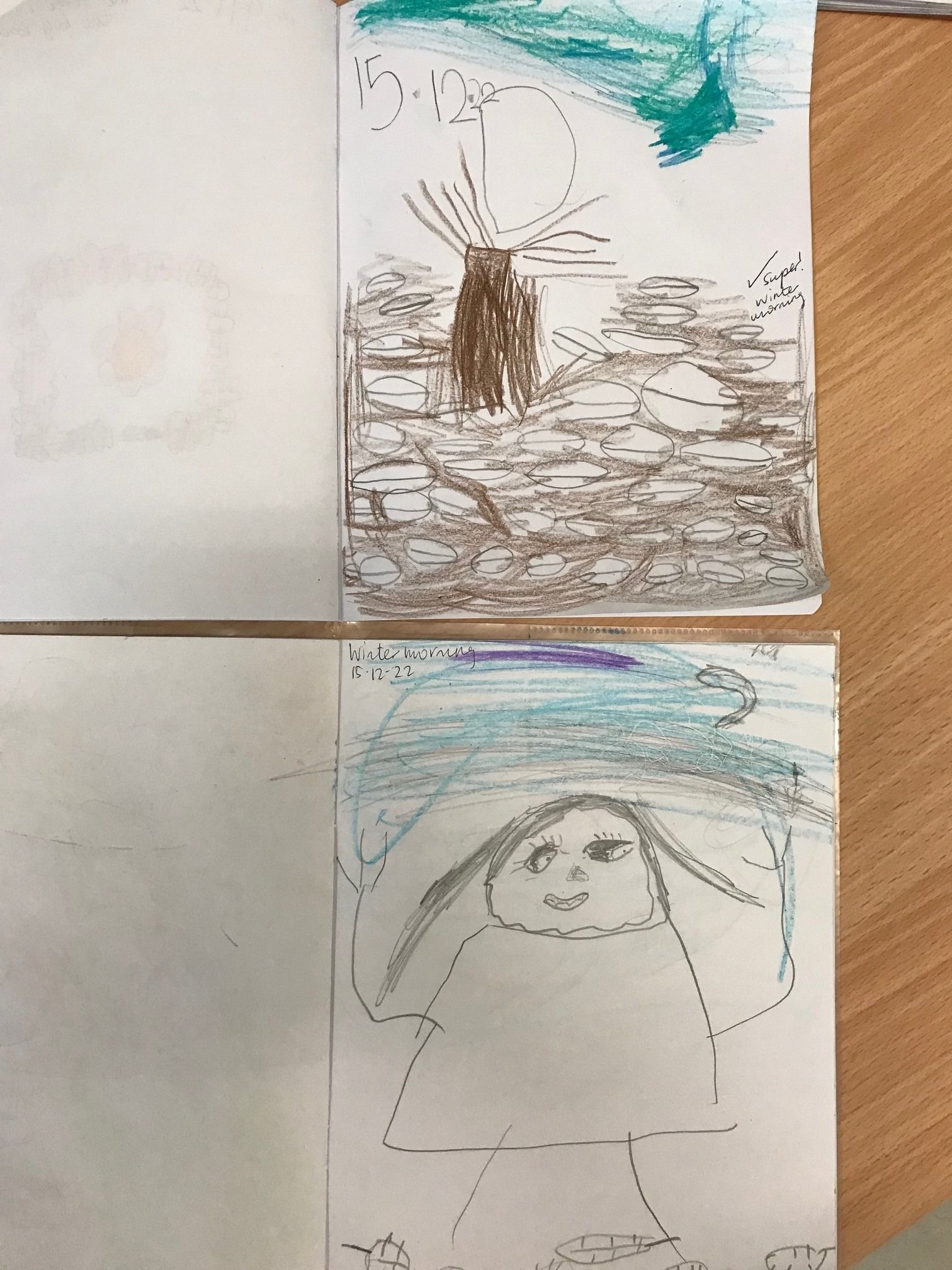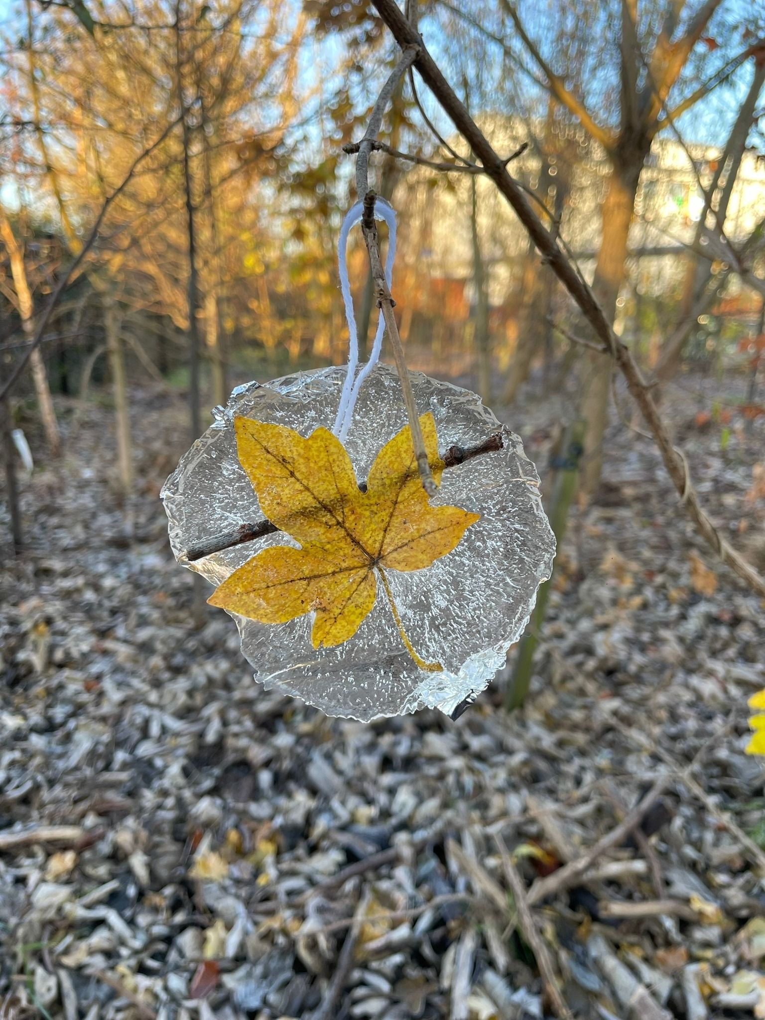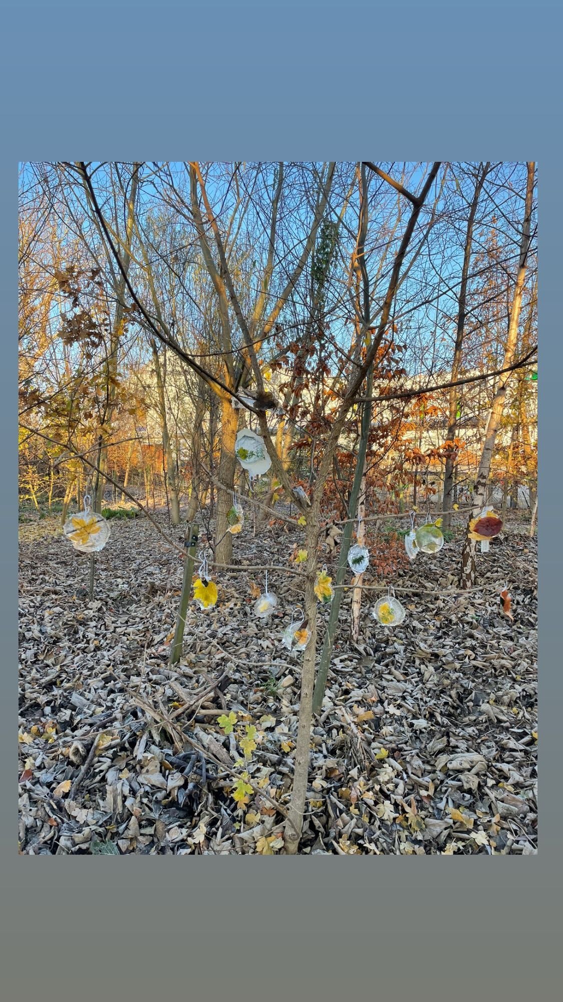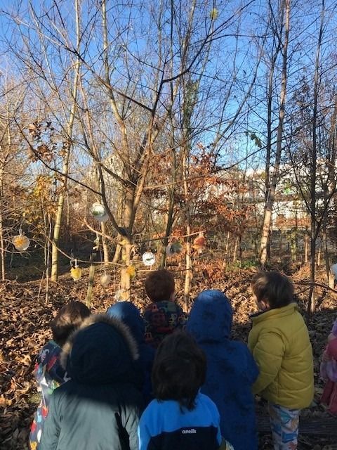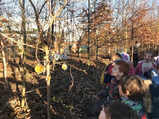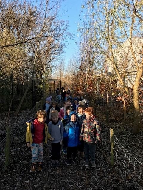 Junior infants Blue went on a wintry walk to spot ice and frost in the school “woods”. We saw the beautiful ice sculptures that 1st class made and the half-moon in the sky and even a frozen mushroom.