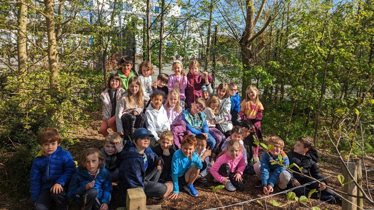 Grace’s 1st class on a nature walk in school looking for leaf buds on trees.