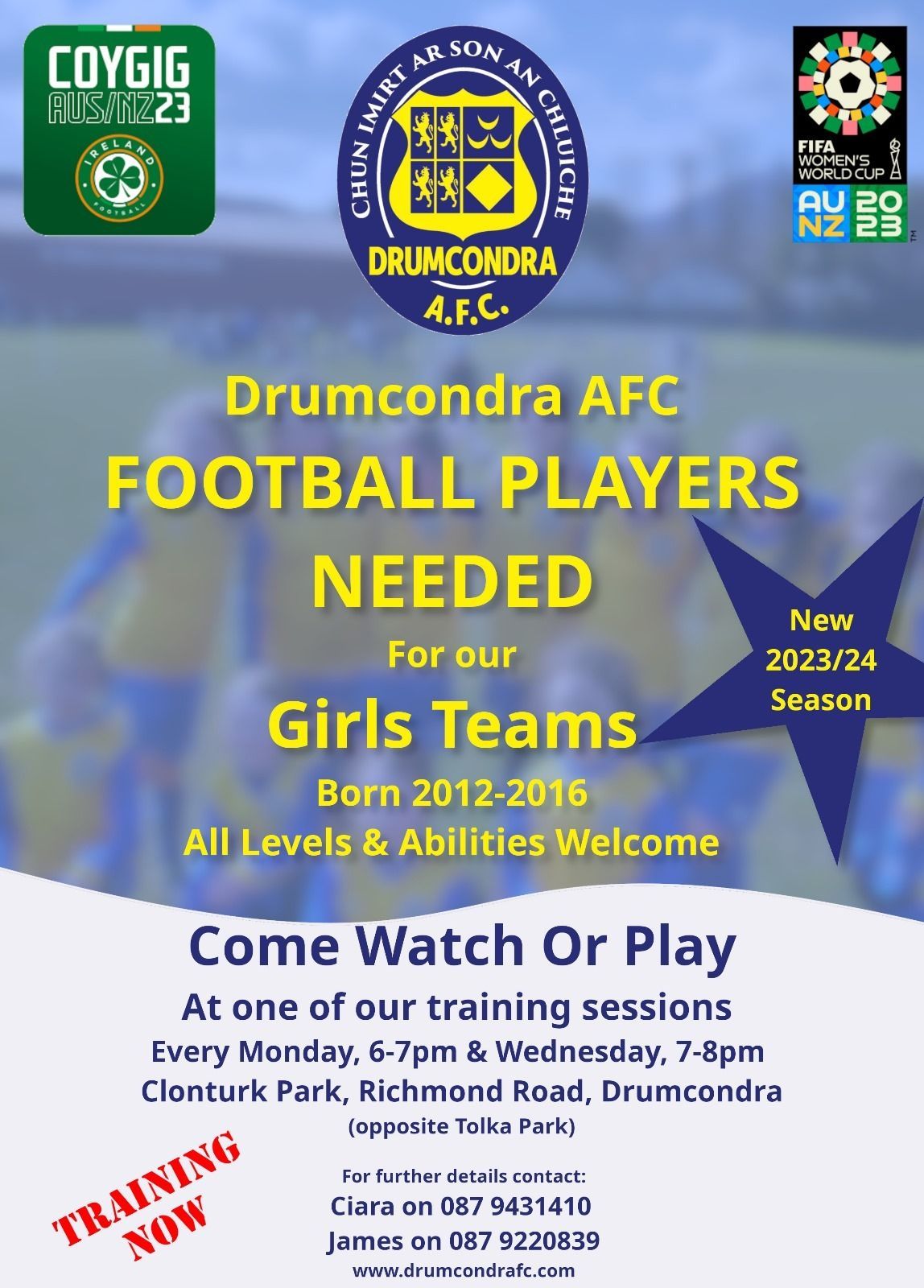 We have not yet reached full capacity bookings in Johnstown Park for our Autumn programme, commencing this Saturday, 23rd September. There are still some spaces in the following age groups: