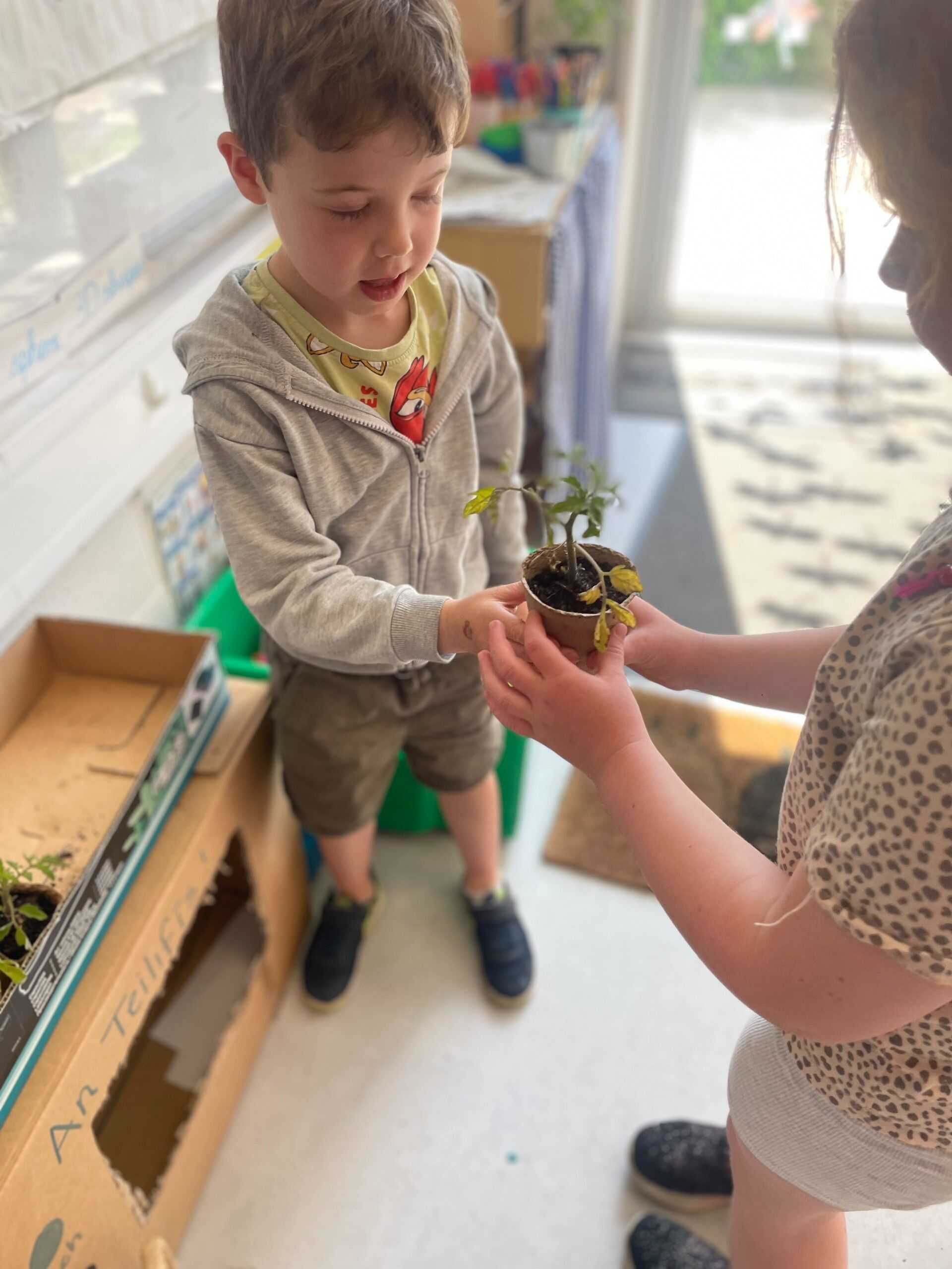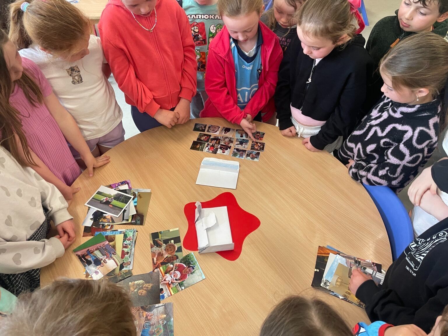 Great fun this week in Dee’s Snr Infants using the bee bots to navigate around our maps. Ben delivered tomato plants for everyone in the class that he grew over the last few weeks, he even wrote out instructions for us to keep them alive and get tomatoes at the end of the summer. We finished off our history lesson looking at our family photos.
