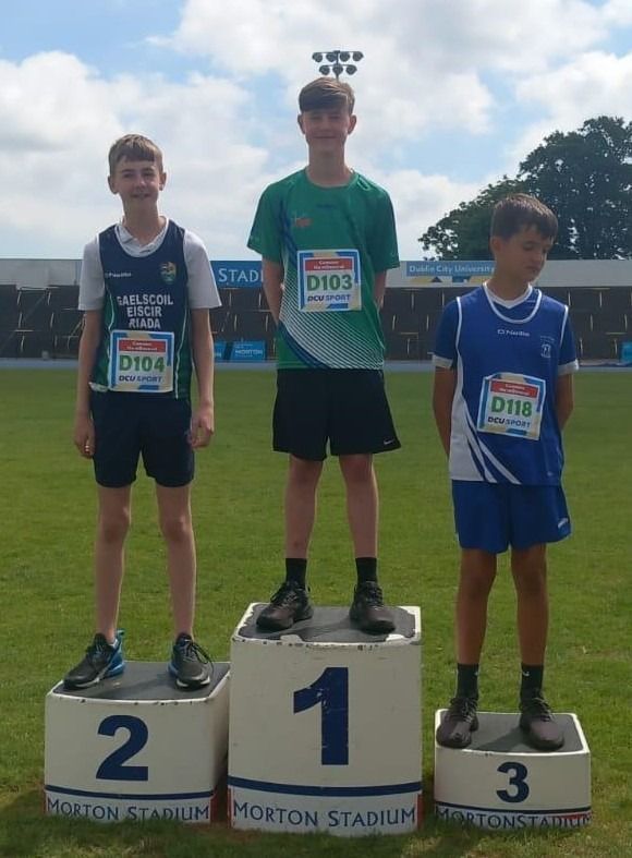After qualifying through the in-school try-outs a few weeks ago, our athletics team enjoyed a sunny day out in Morton Stadium, Santry today. There were some amazing performances and we came home with a few medals! Patrick won the gold medal in shot putt, Alex won the bronze medal in the 80m sprint, Ethan won the bronze medal in the 600m event and Sean won the gold medal in the high jump. Well done to all our athletes who represented the school so well! Jill & David