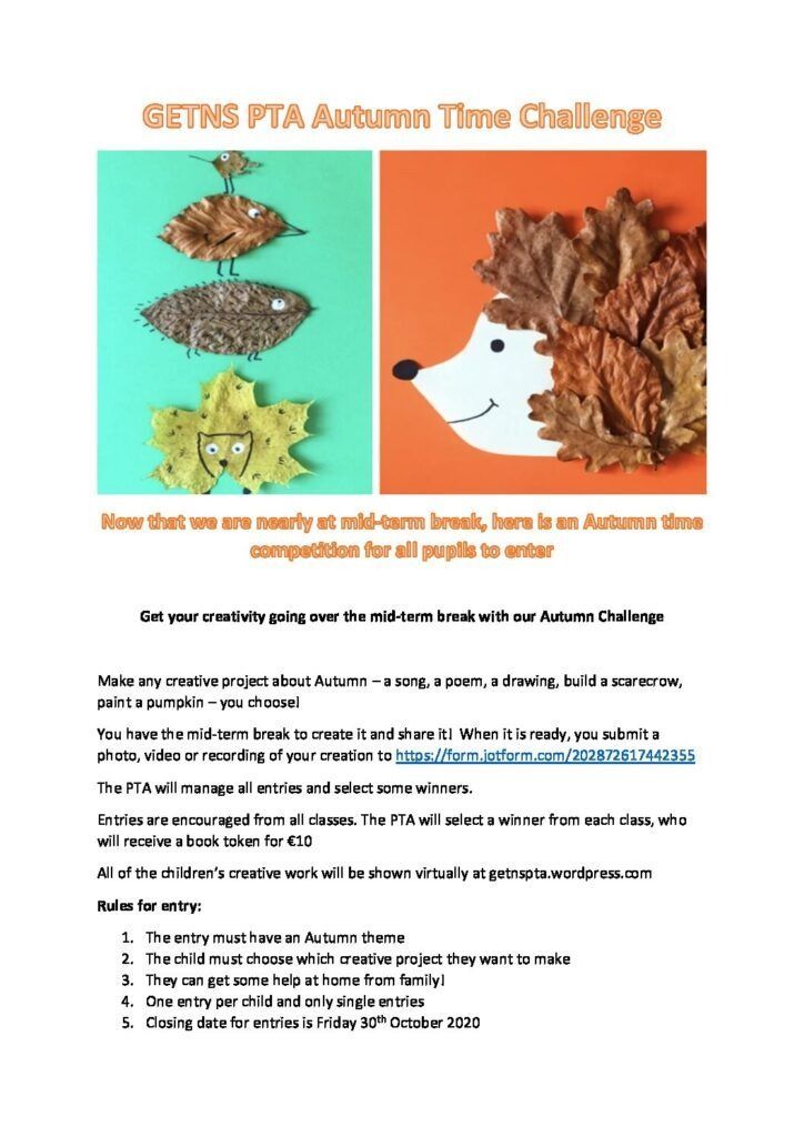 Thank you to the PTA for this lovely idea, have fun getting crafty and arty over the mid-term break, click here for more information and see across.