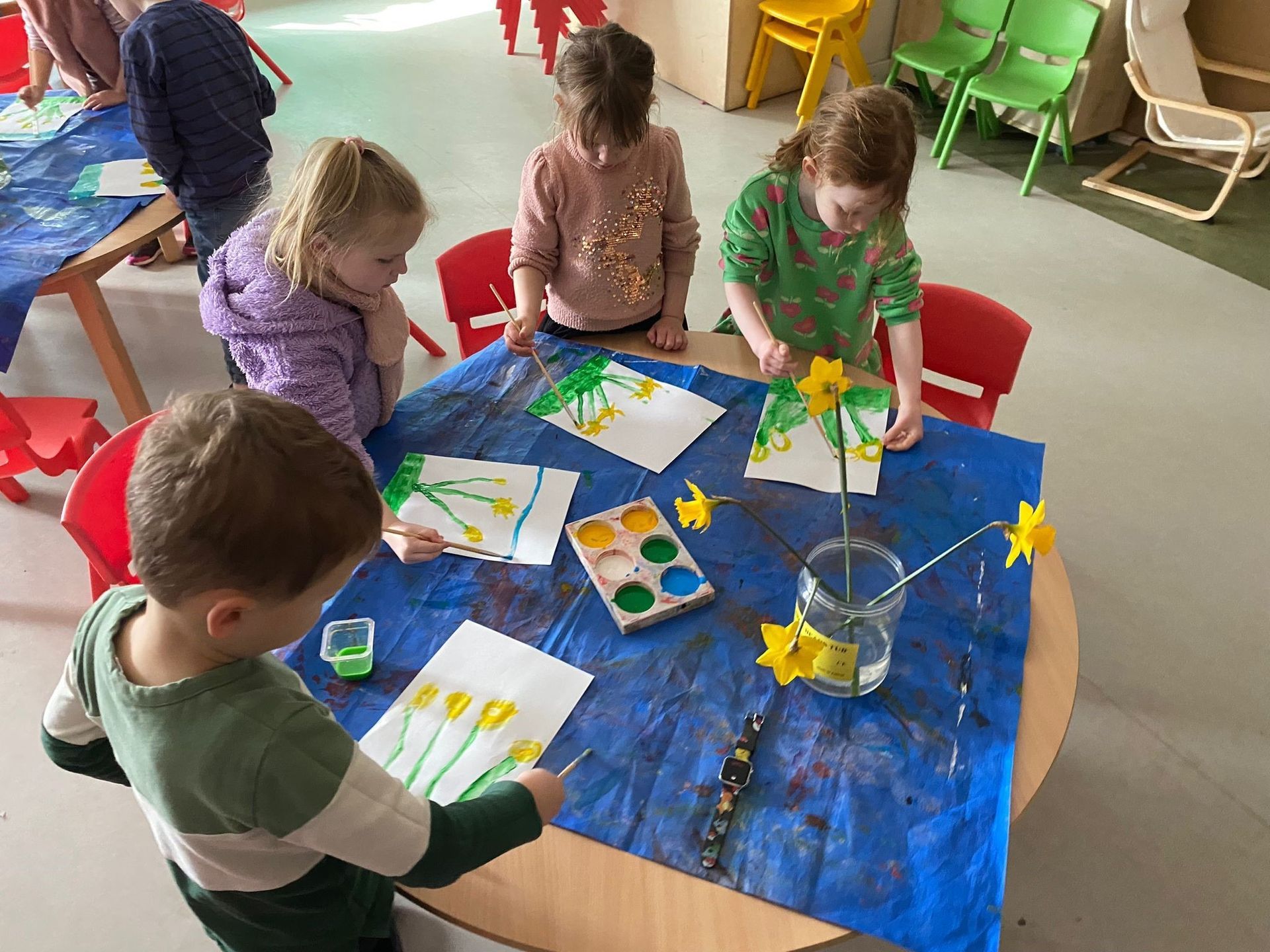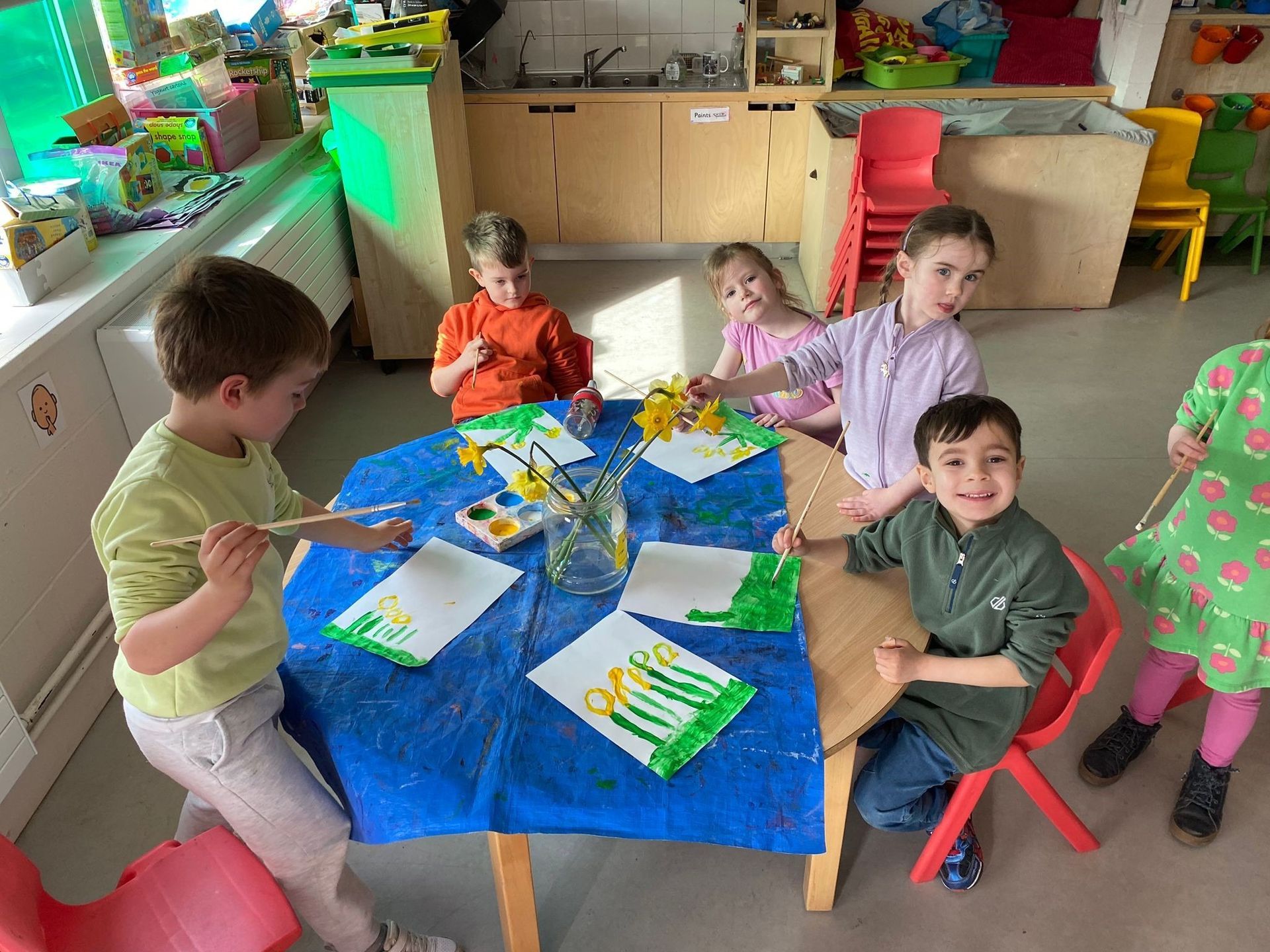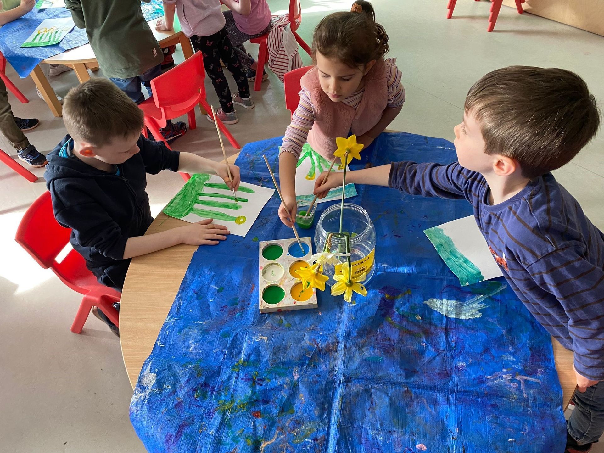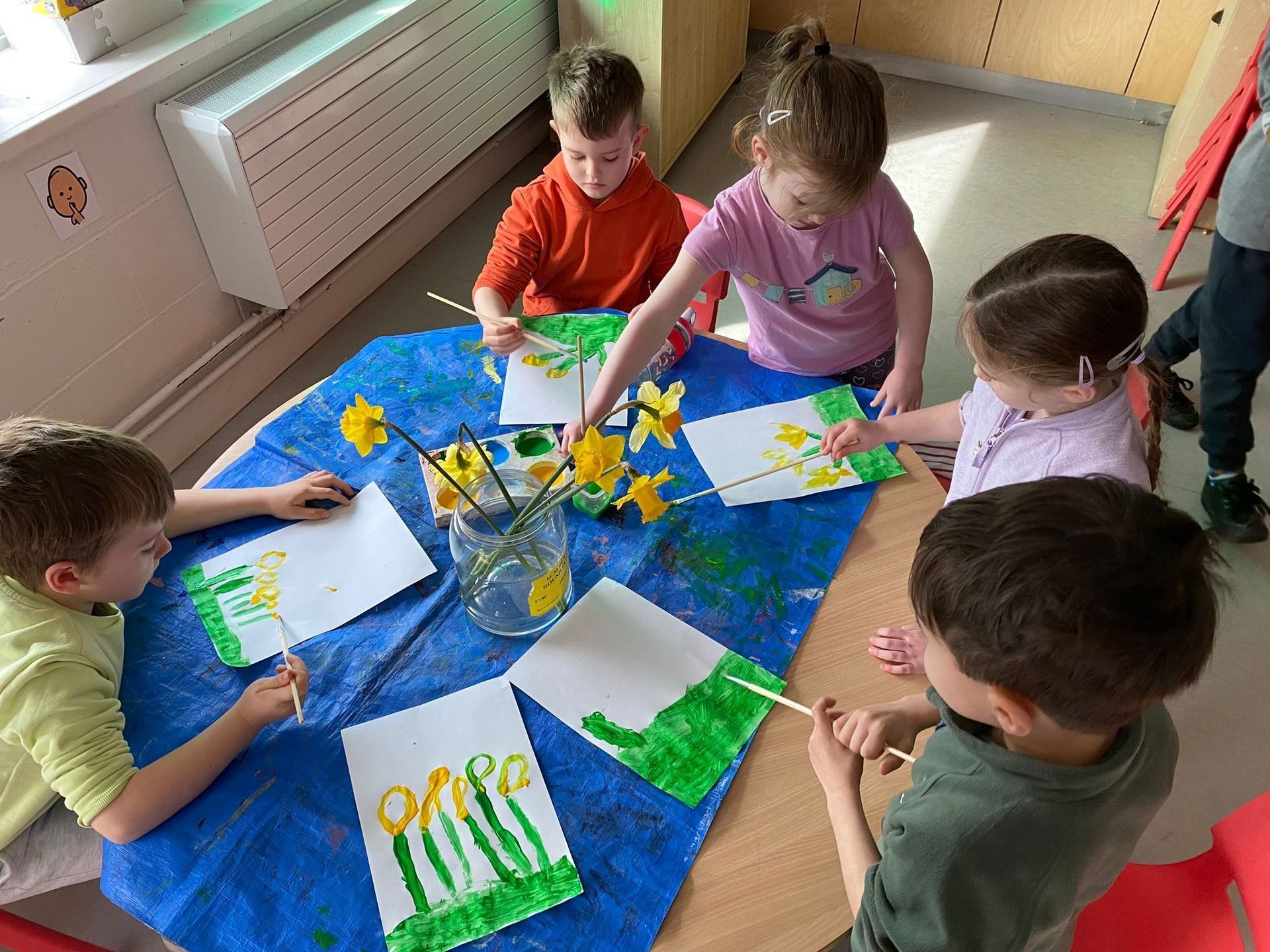 Daniel’s Junior Infants painted still lifes of Daffodils for some springtime art.