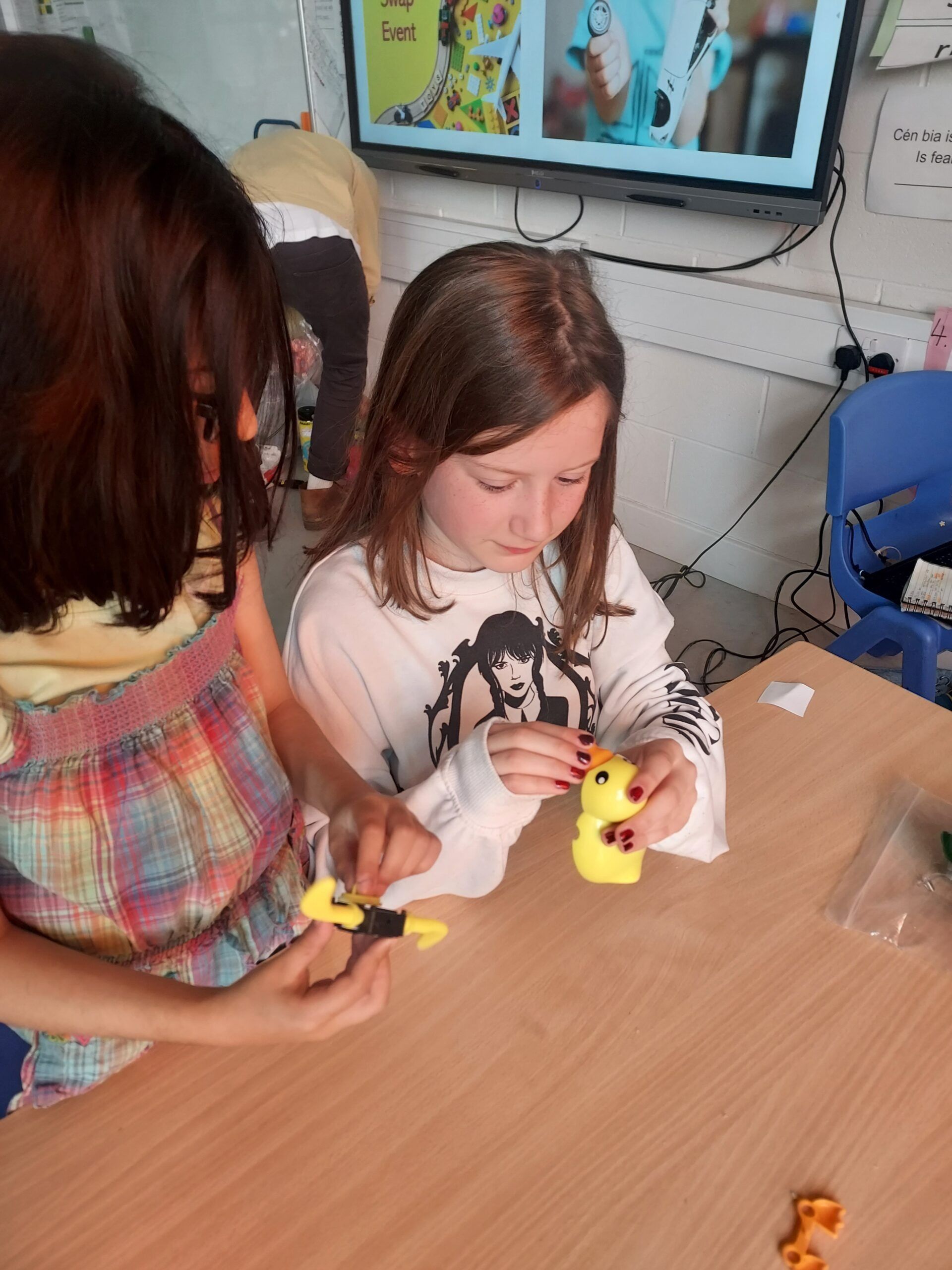 Third class took part in a Sustainable Toys workshop with Rossa from the Ballymun Rediscovery Centre. He Told us all about the advantages of the circular economy – when things are reused and have multiple ‘lives’ rather than being thrown in the bin when one person is finished with them – for us and our environment. He also advised us on how we can contribute to it by reusing toys, passing toys on to others when we are finished with them, fixing toys that are broken and buying wooden toys and toys made from bioplastics.