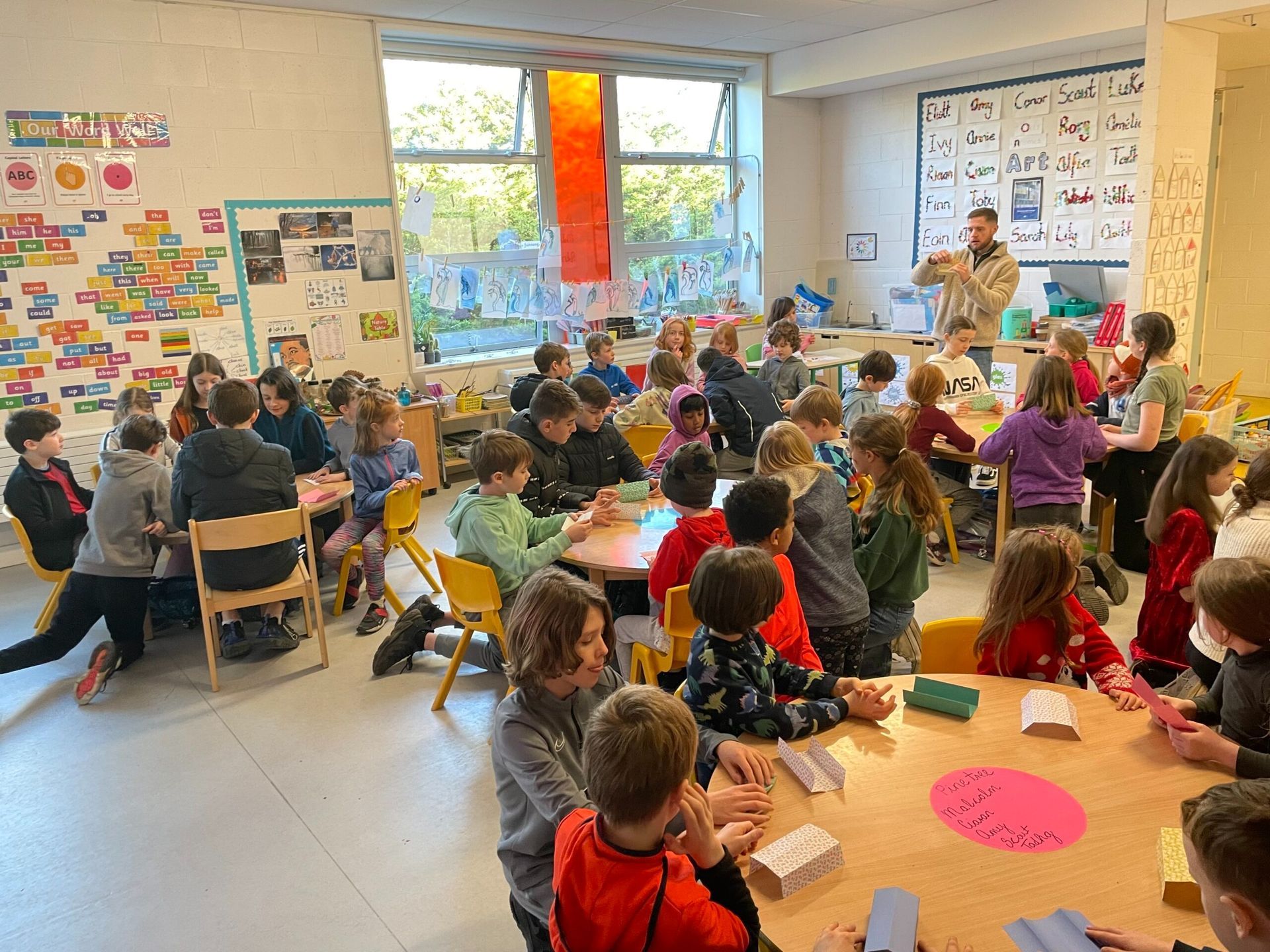 Dee’s 1st class had great fun making Origami rabbits for Lunar New Year with the help of 6th class.