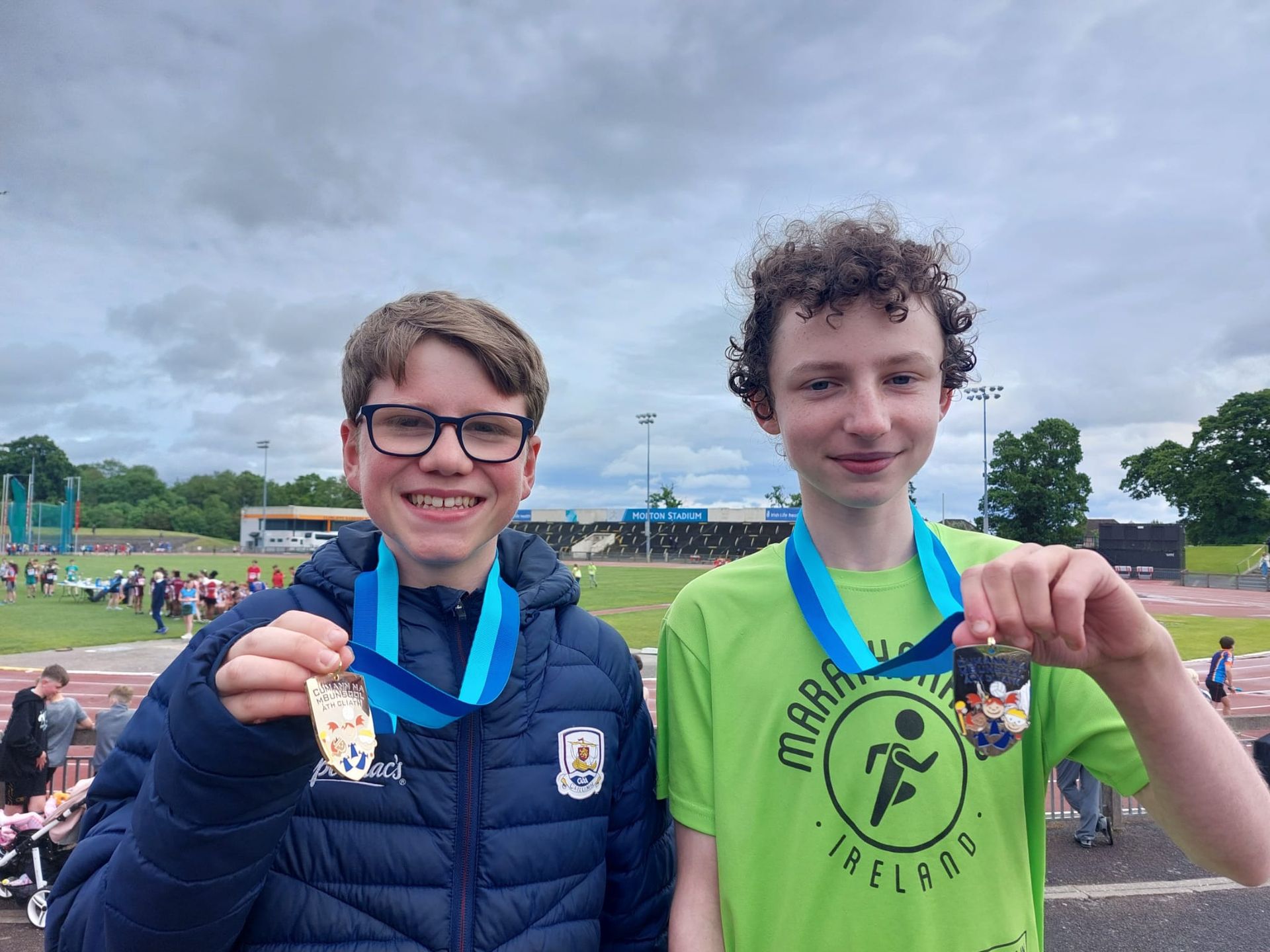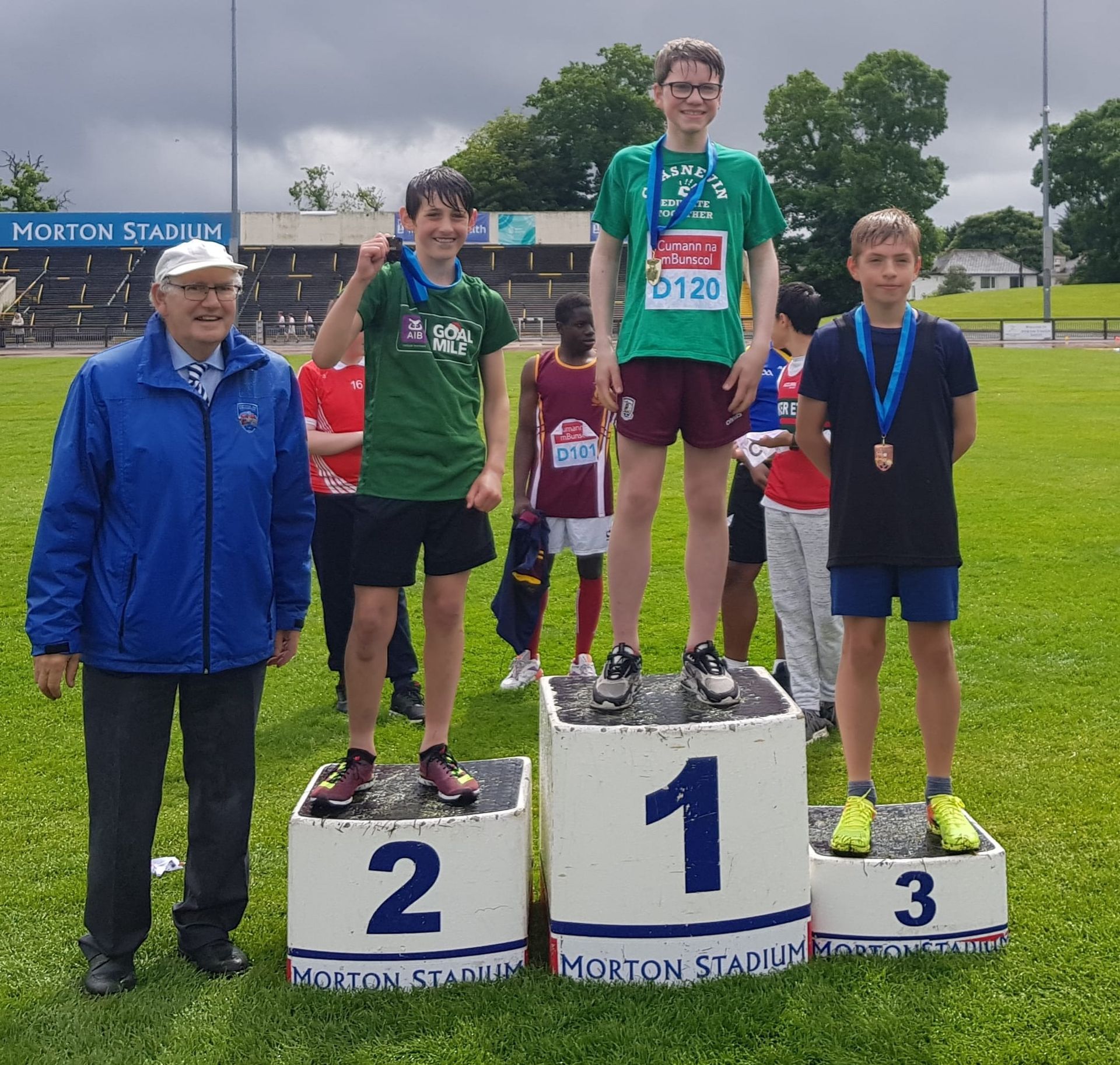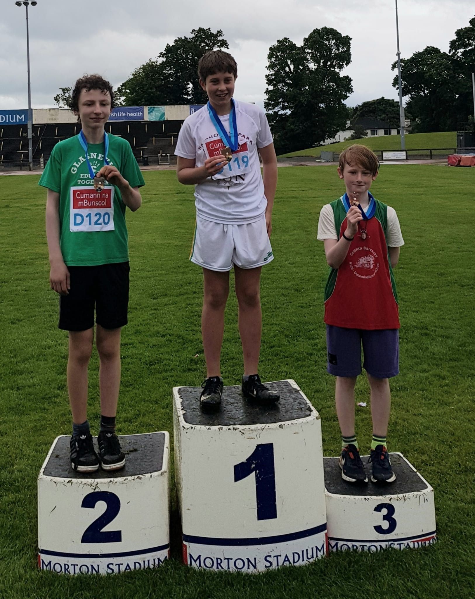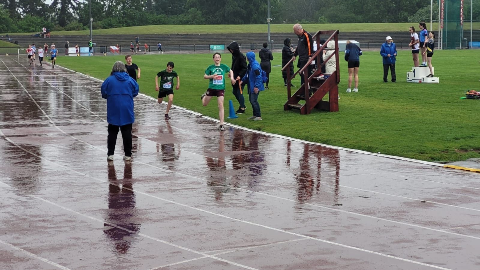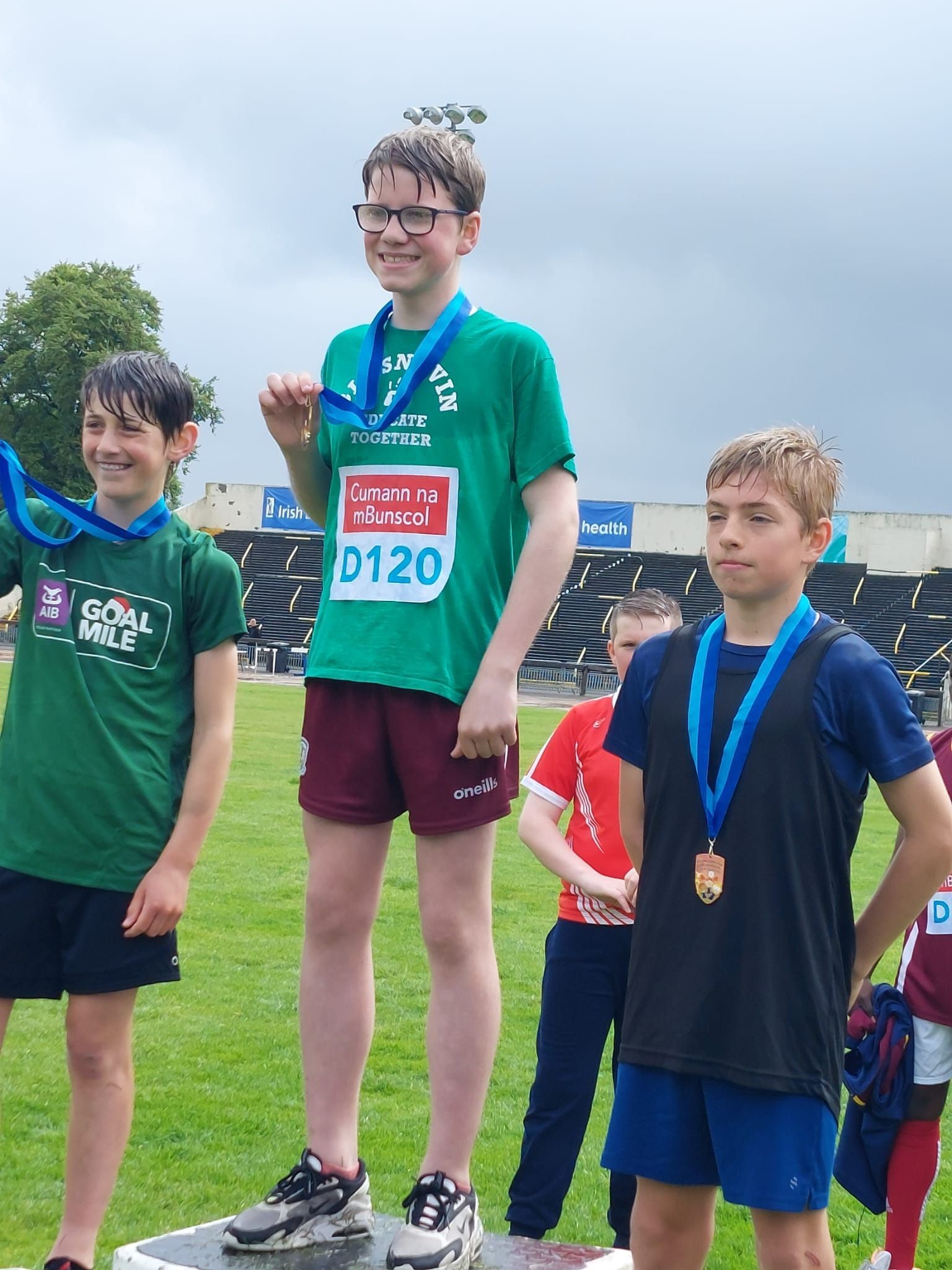 A wet start to the athletics events in Santry this morning but brightened by winners in both long-distance race, David in 6th and long jump, Harry in 6th.