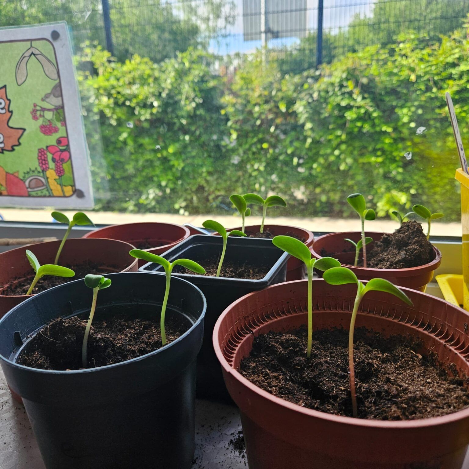We have been taking advantage of the lovely weather lately to do some gardening and learn about flowers and bees! Our Sunflowers are doing really well, so far. We can not wait for the flowers to appear. Niamh