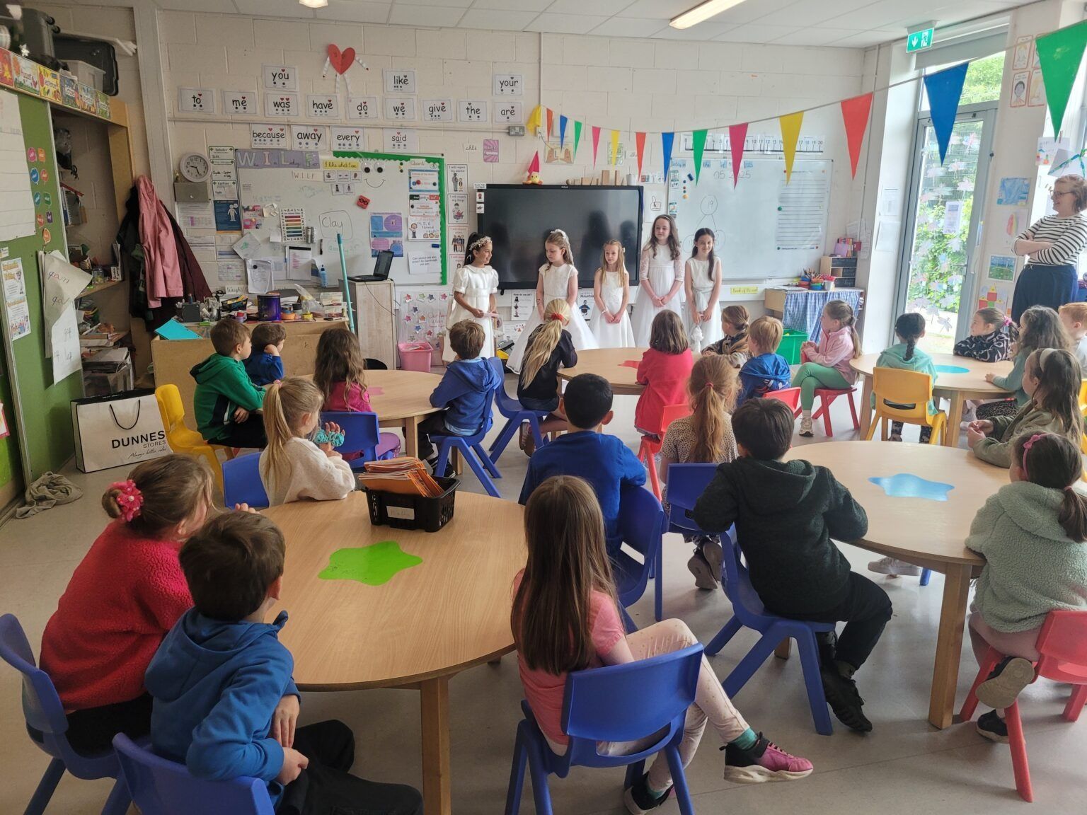 Our assembly this month was on the value of Happiness. Senior assembly was led by Oisín’s class (see video below) and Junior assembly was led by Daniel’s Junior Infant class.